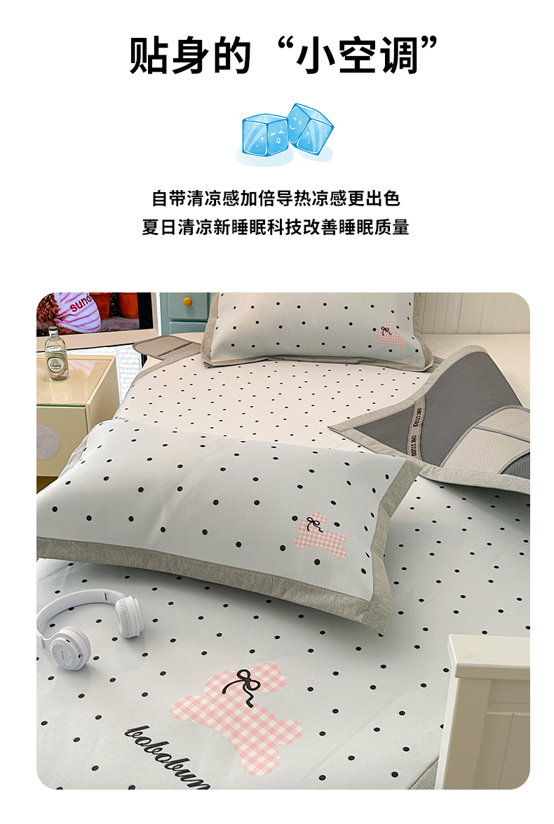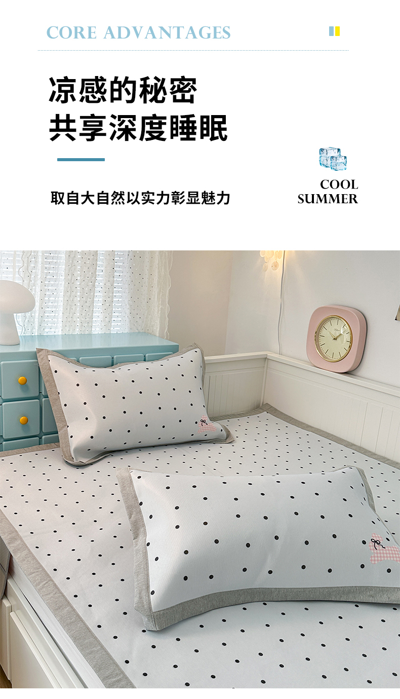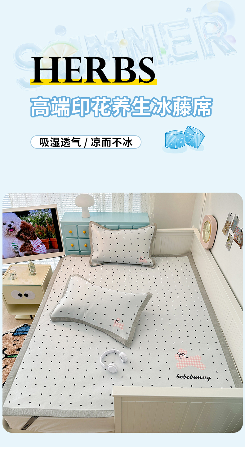昔可家纺 2024新款大版数码印花养生冰藤席 波点兔
