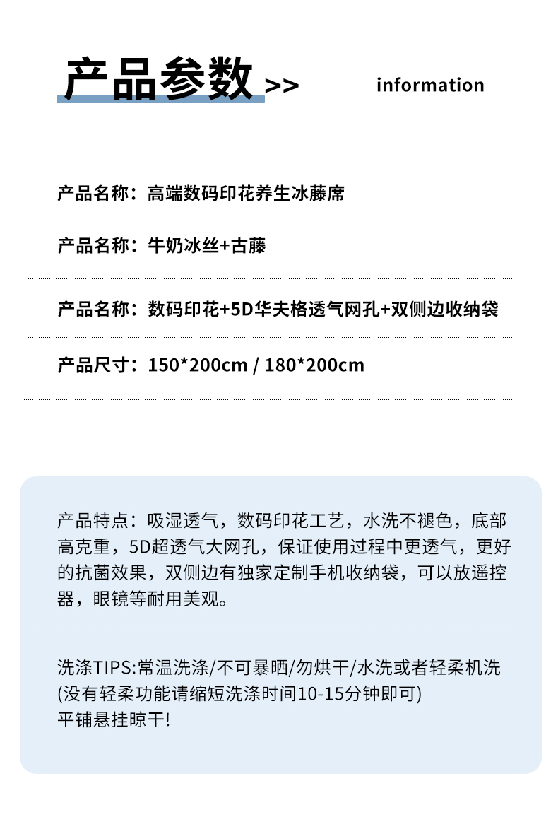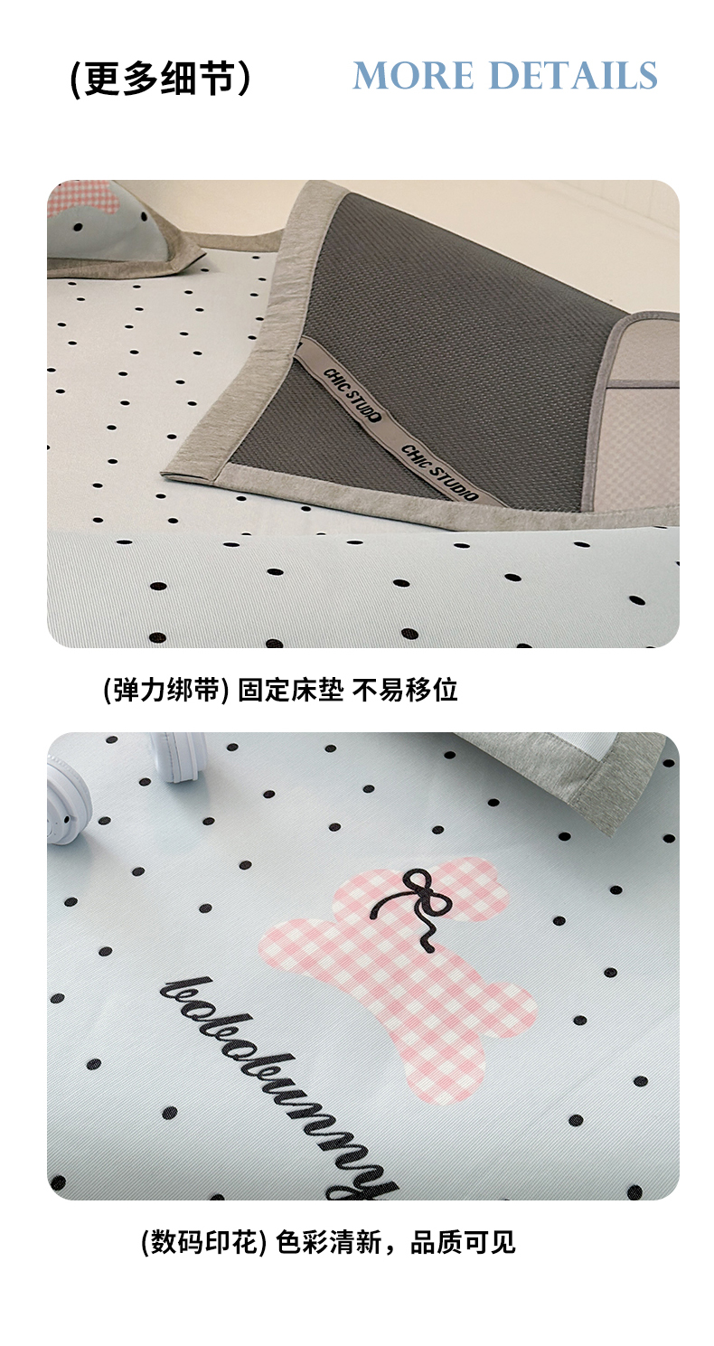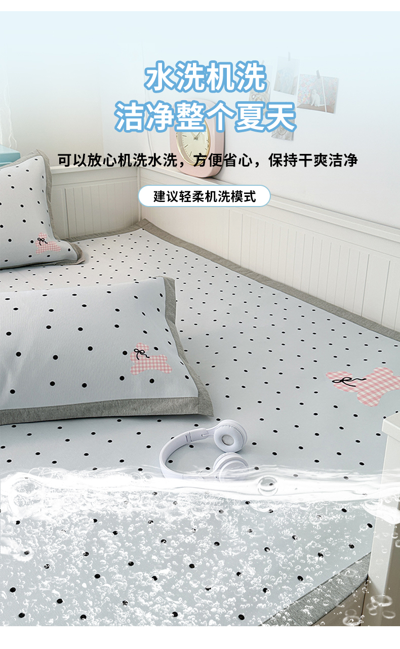 商品名称:昔可家纺 2024新款大版数码印花养生冰藤席 波点兔