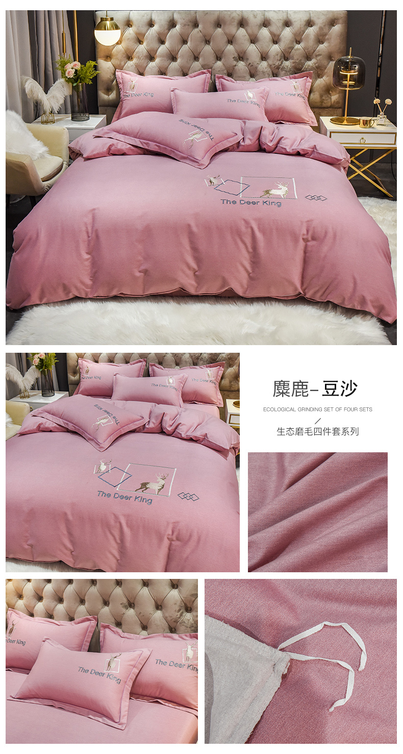 当前位置: 91家纺网 > 商品网购 > 床品套件 > 四件套 > 其它四件套 > 艾迪尚家纺 2025新款纯色生态磨毛绣花四件套 麋鹿-豆沙