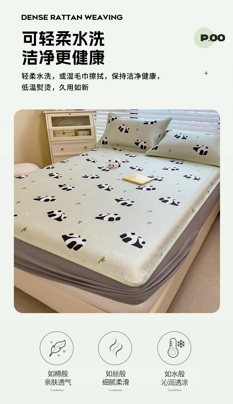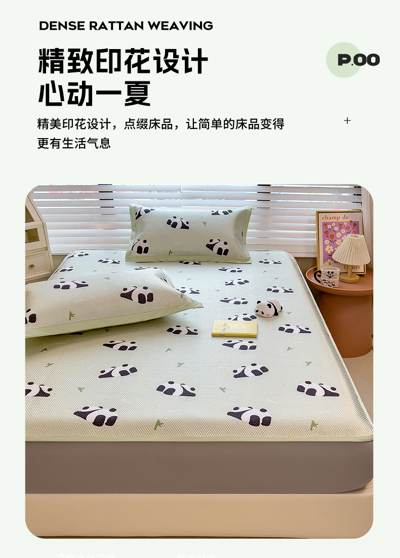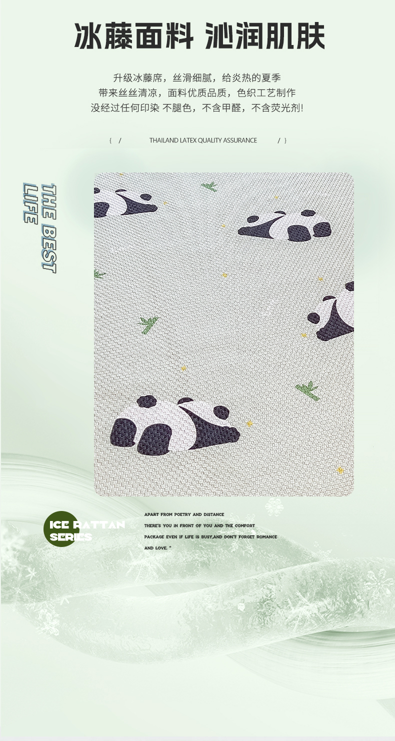 商品名称:布卢姆床垫 新款A类数码印花冰藤席夏凉席--床笠款 熊猫乐乐