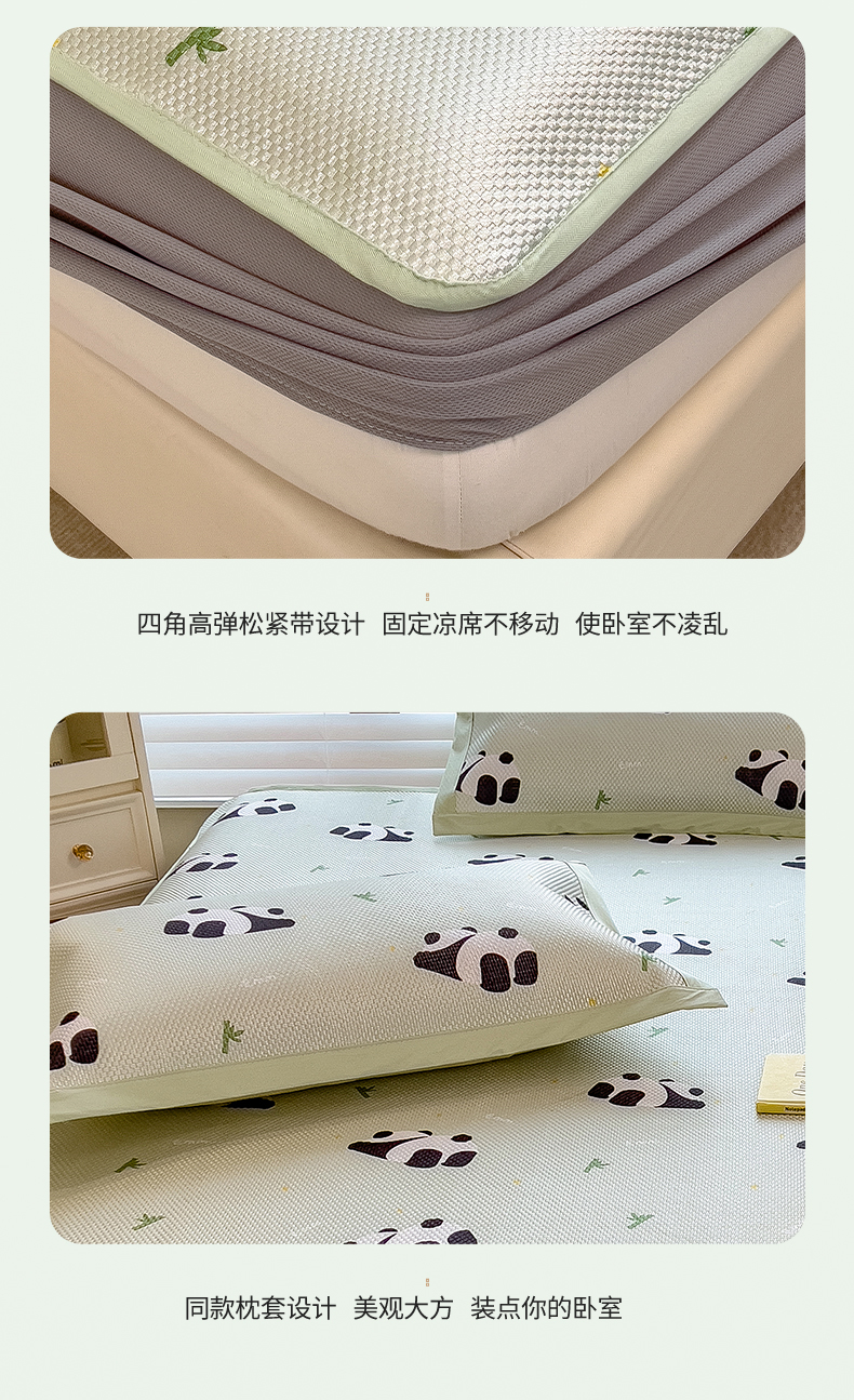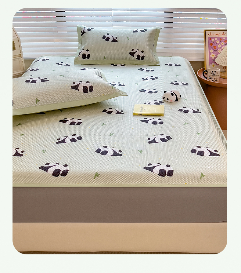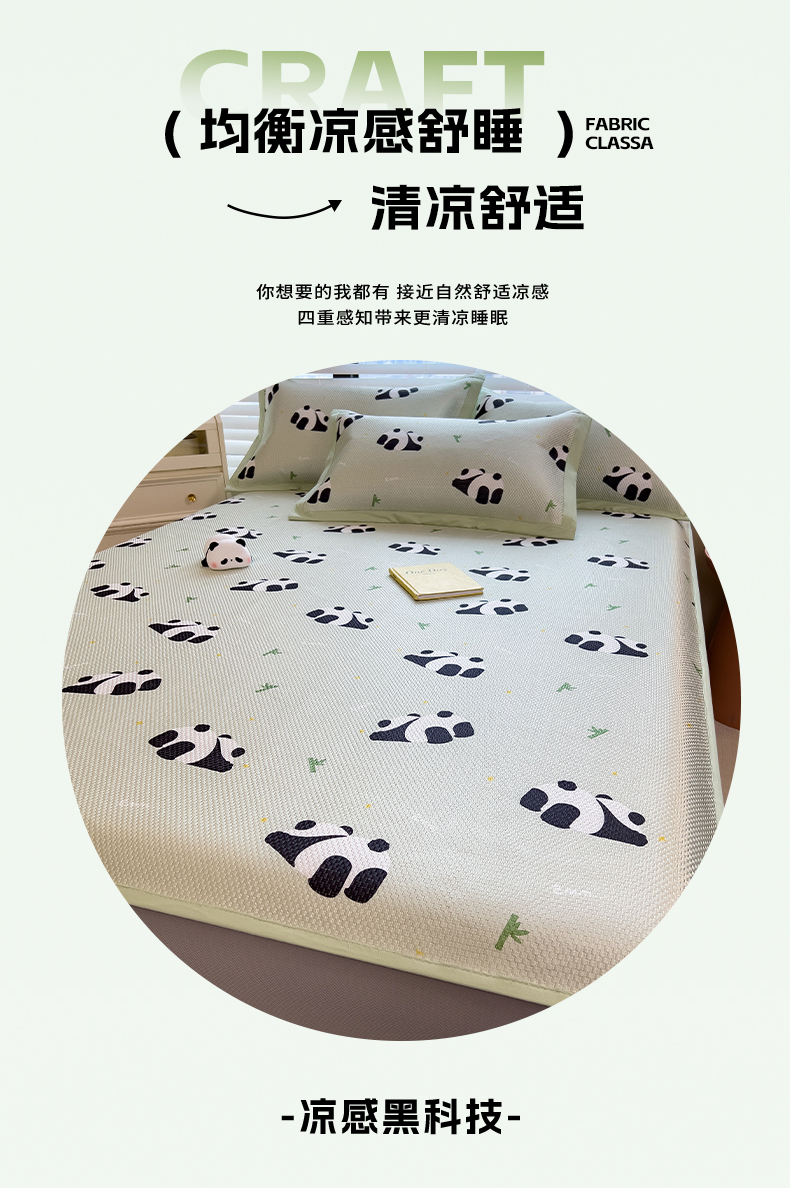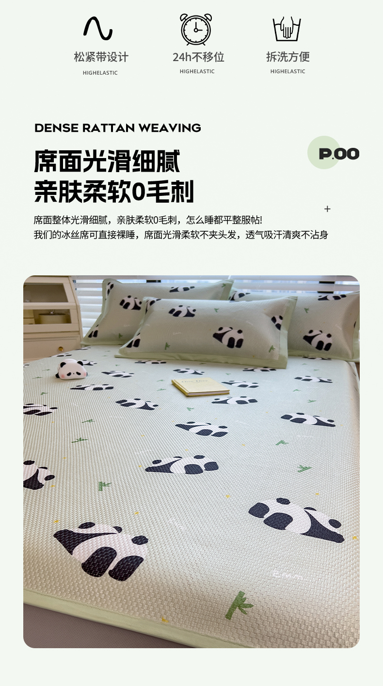 商品名称:布卢姆床垫 新款A类数码印花冰藤席夏凉席--床笠款 熊猫乐乐