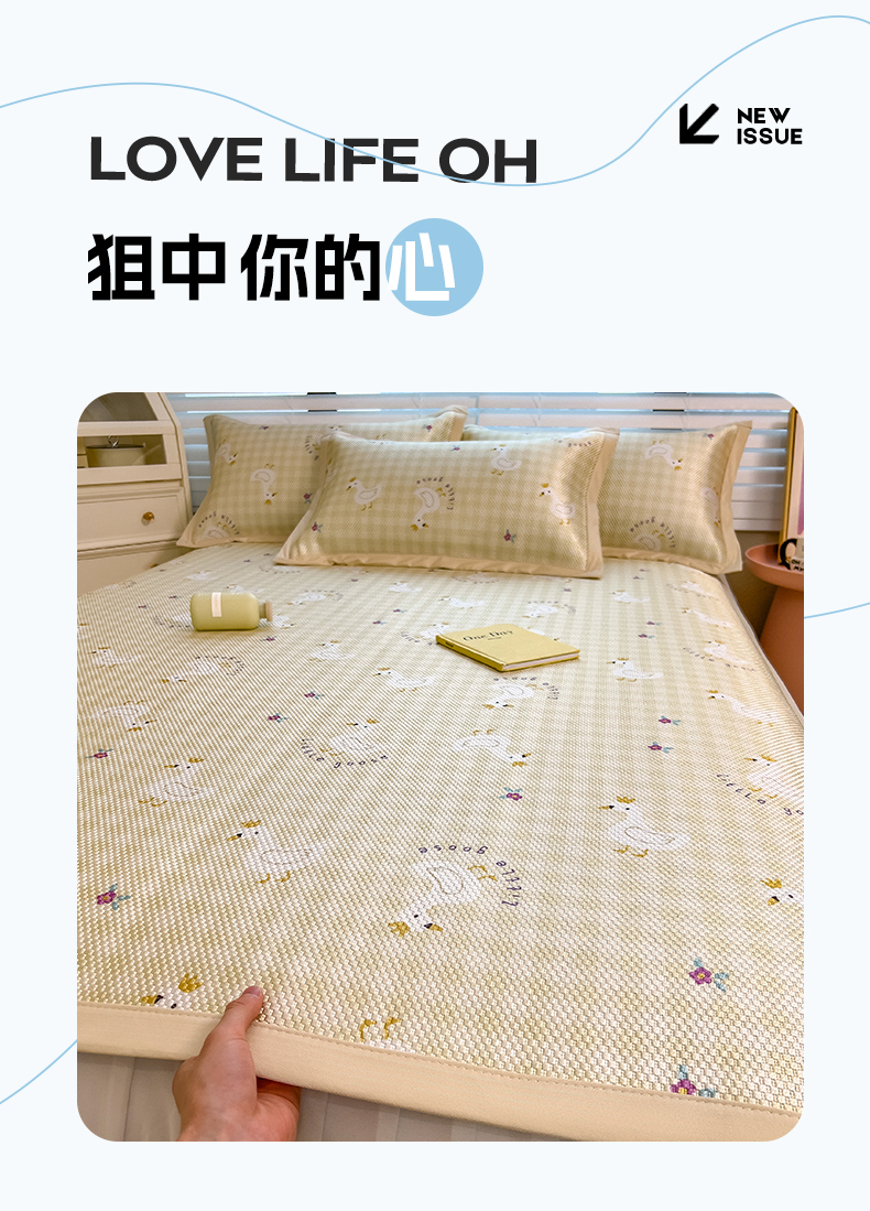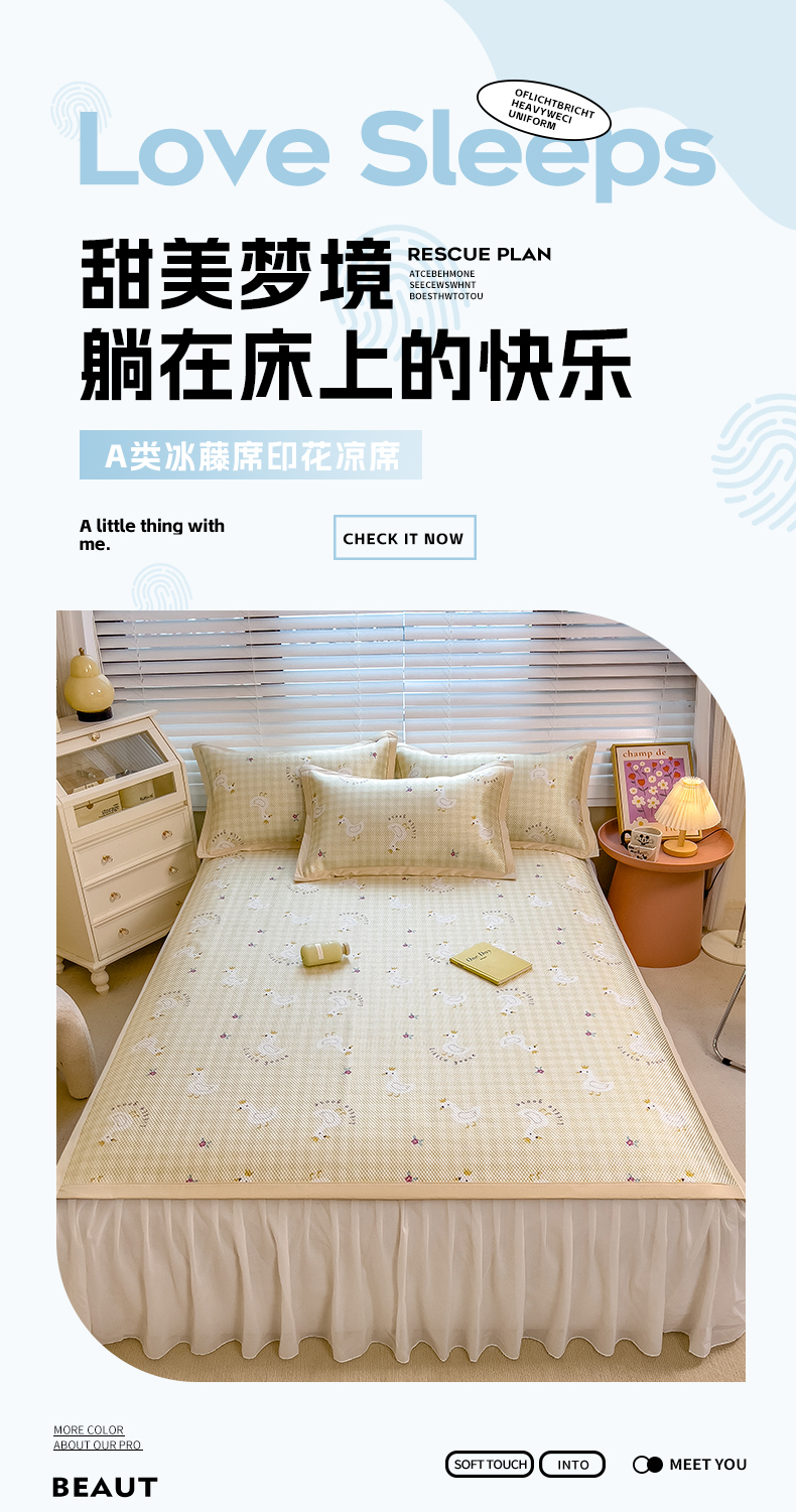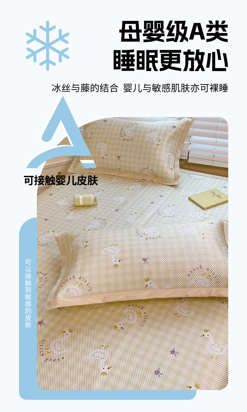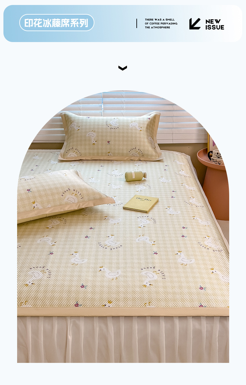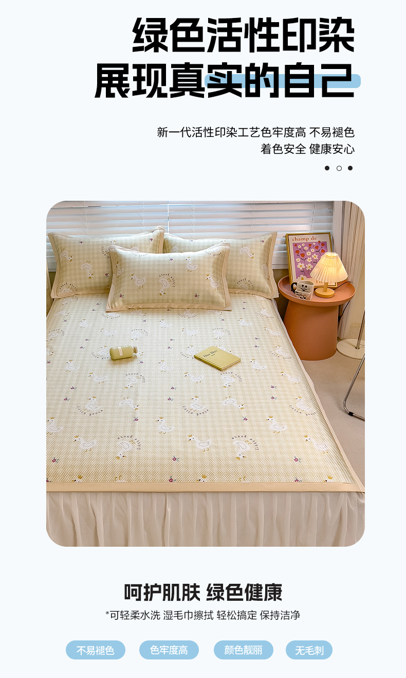 商品名称:布卢姆床垫 新款A类数码印花冰藤席夏凉席--床席款 皇冠鸭