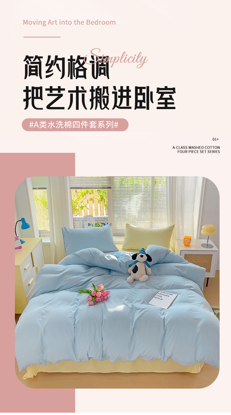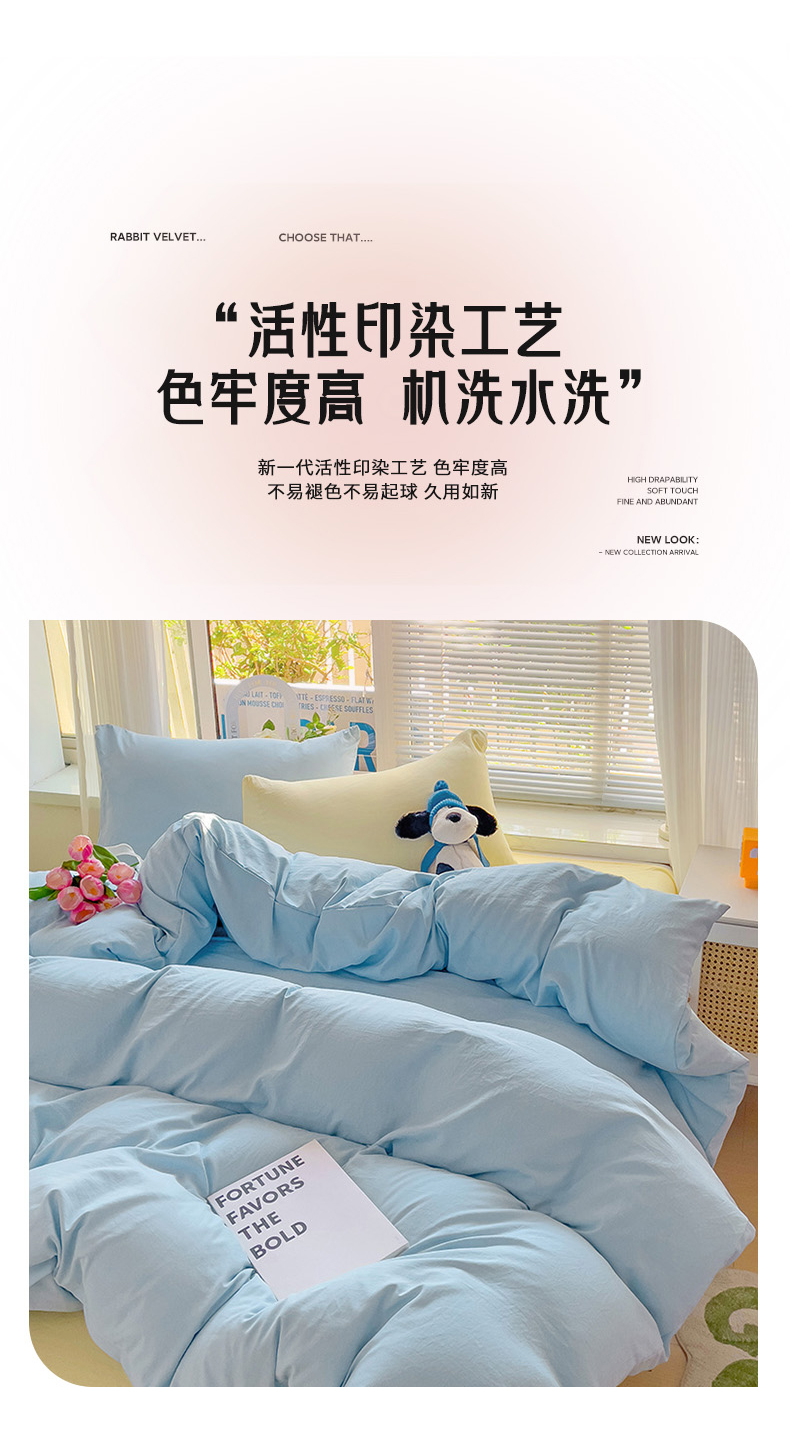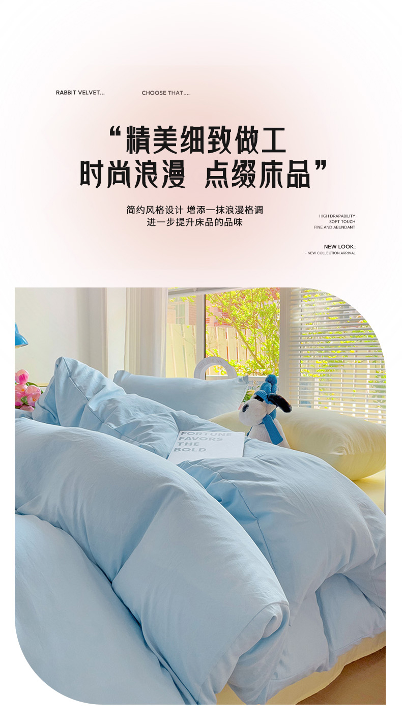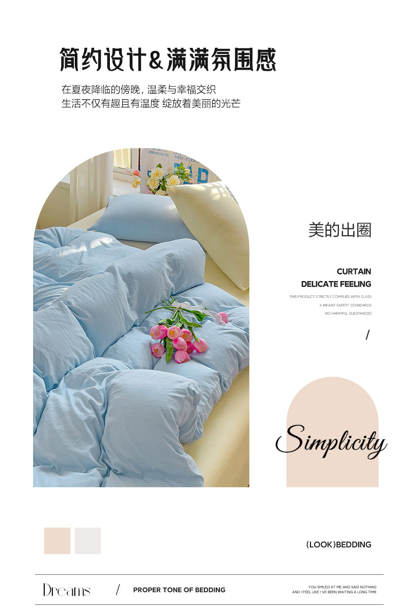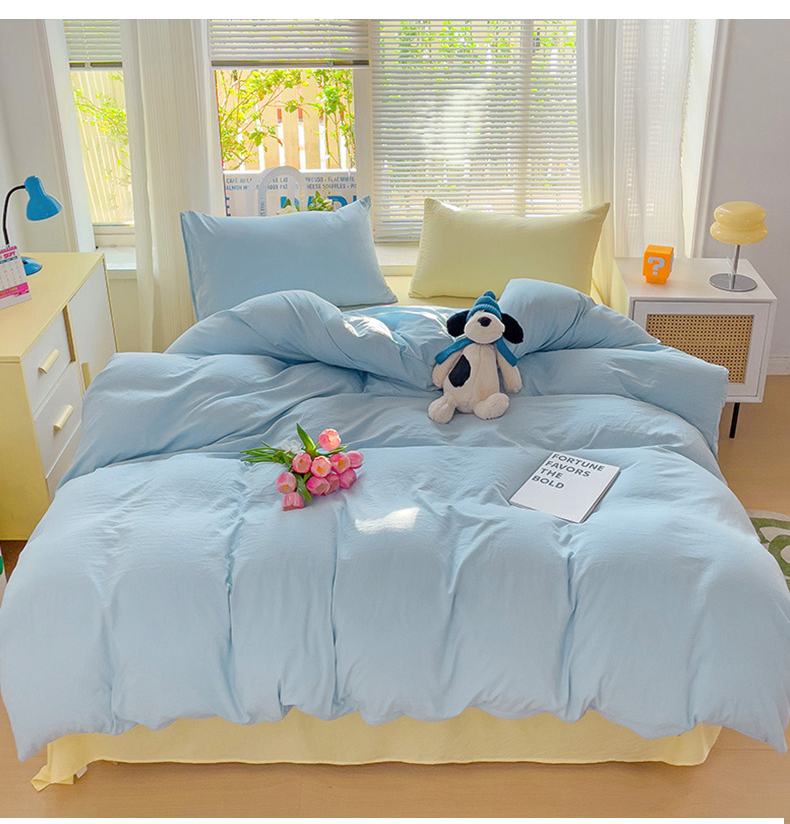 商品名称:森璐家纺 2024新款1水洗棉被套纯色被套单被套素色被套 混搭-浅蓝黄