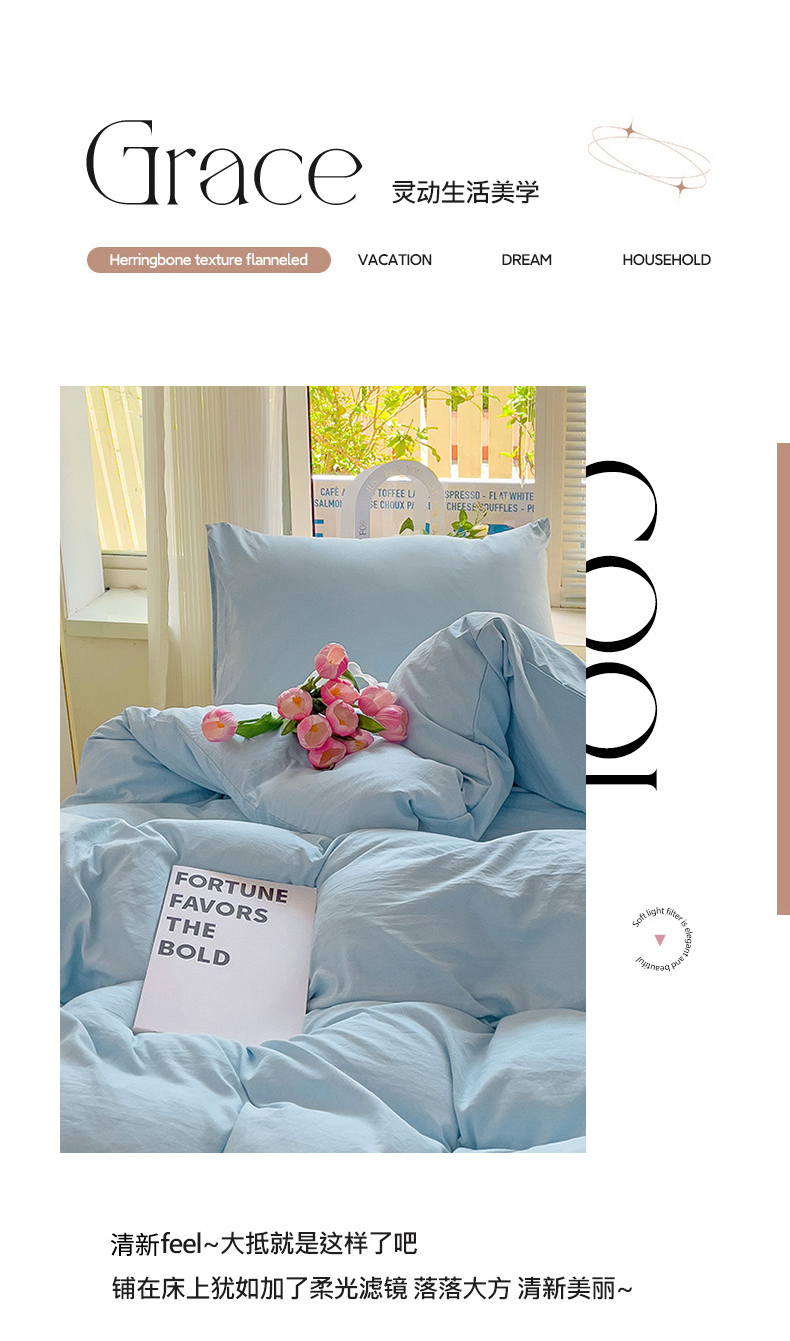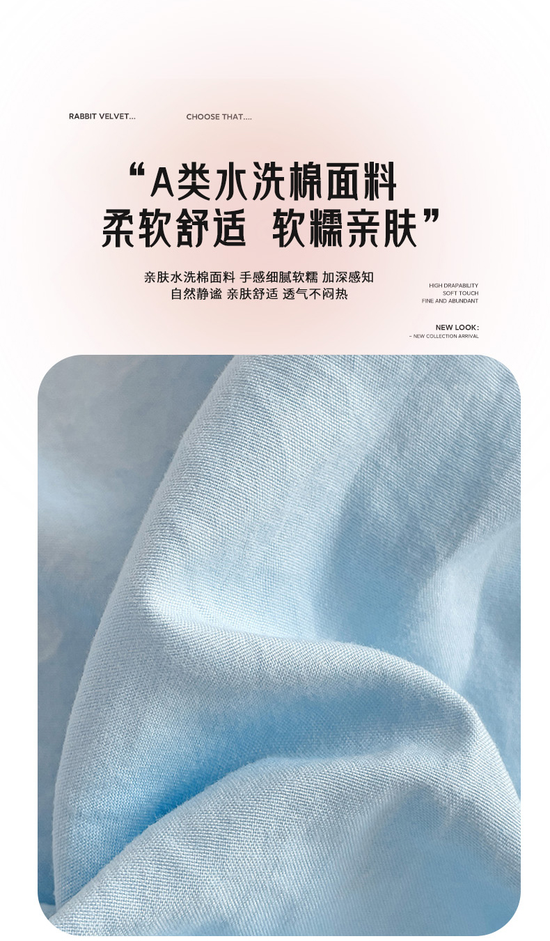 森璐家纺 2024新款1水洗棉被套纯色被套单被套素色被套 混搭-浅蓝黄