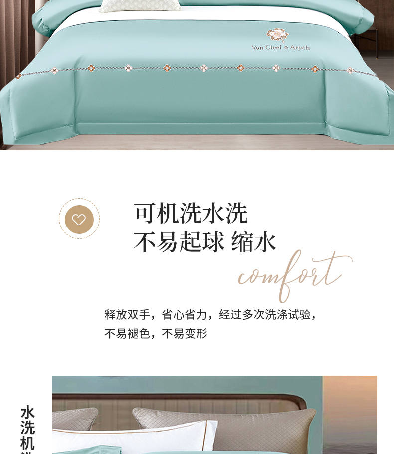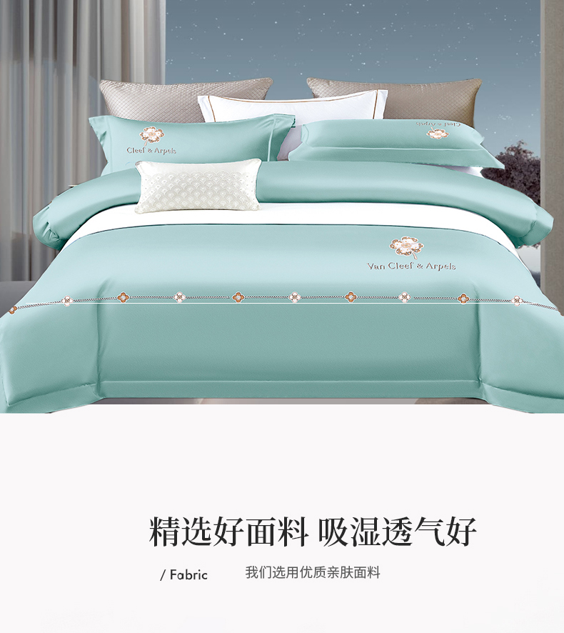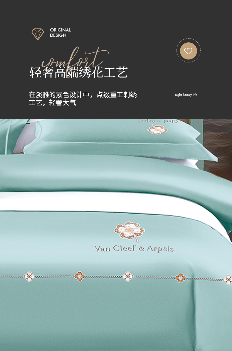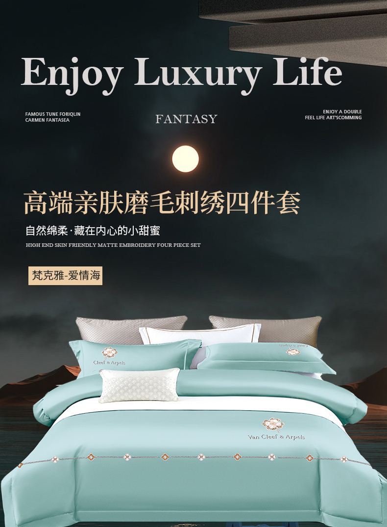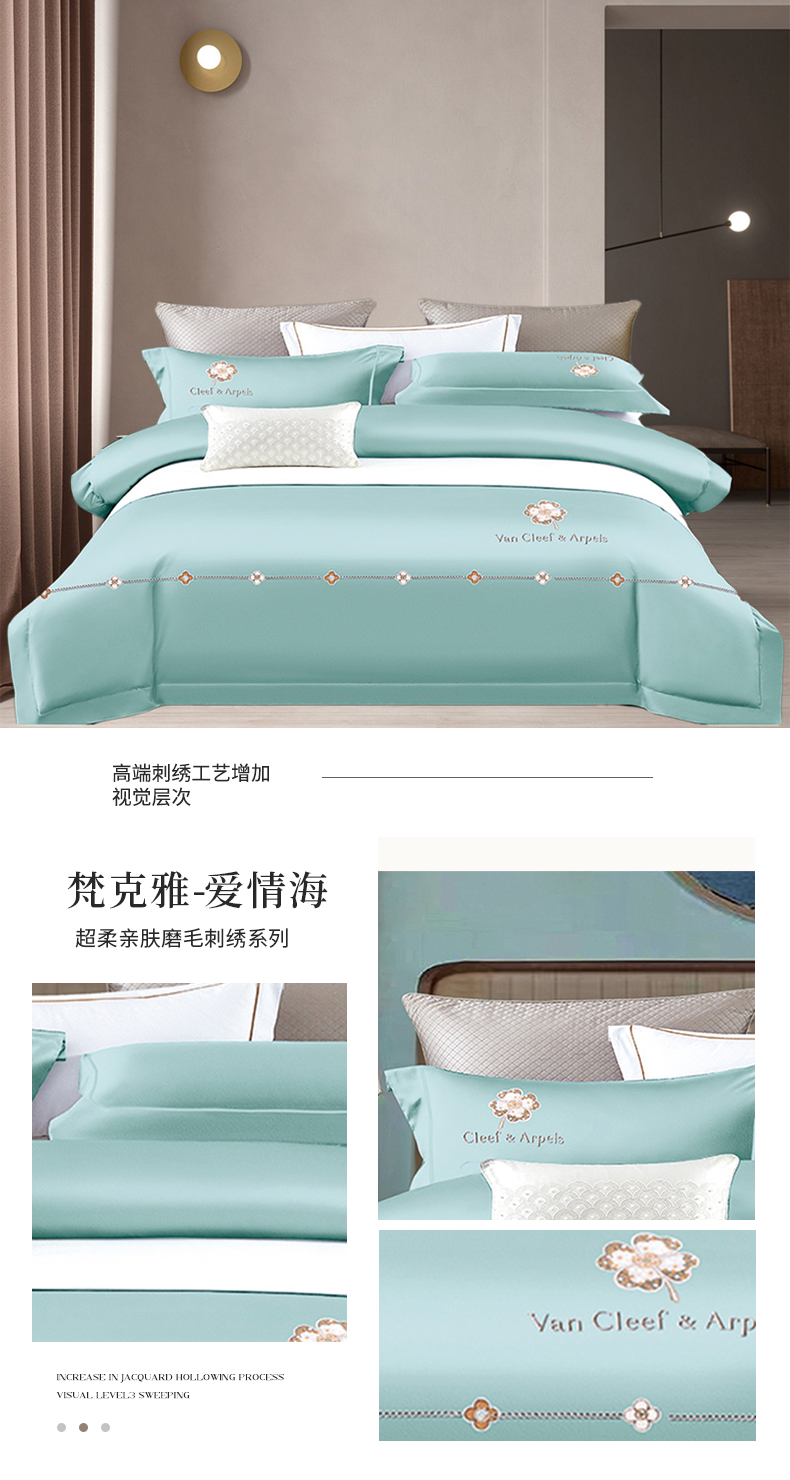 浩情国际 2026四季款斜纹木棉绣花梵客雅系列四件套 梵克雅-爱情海