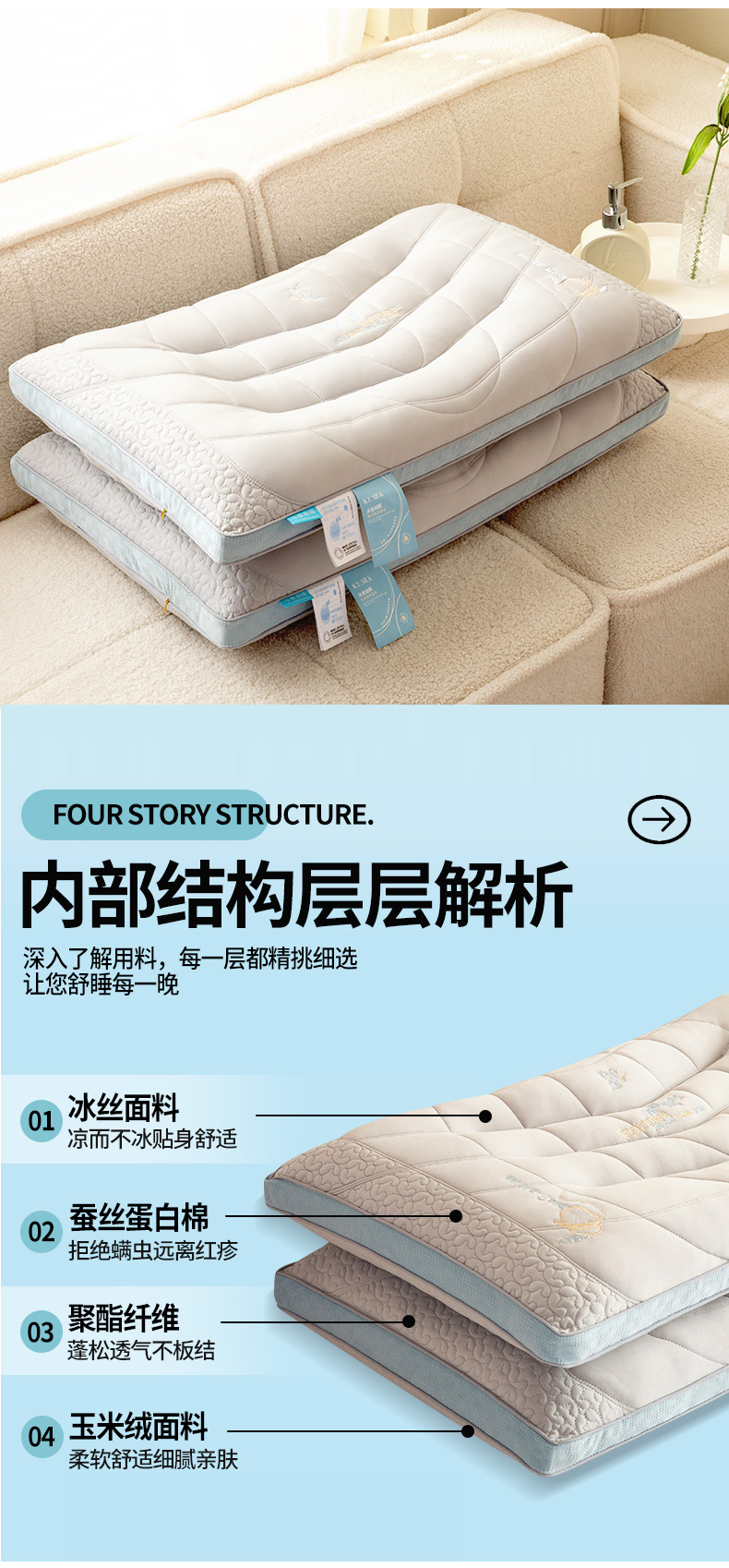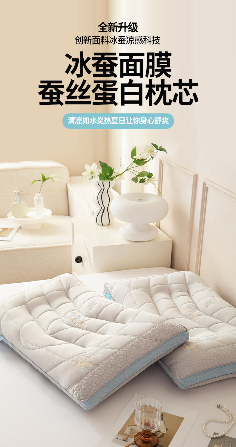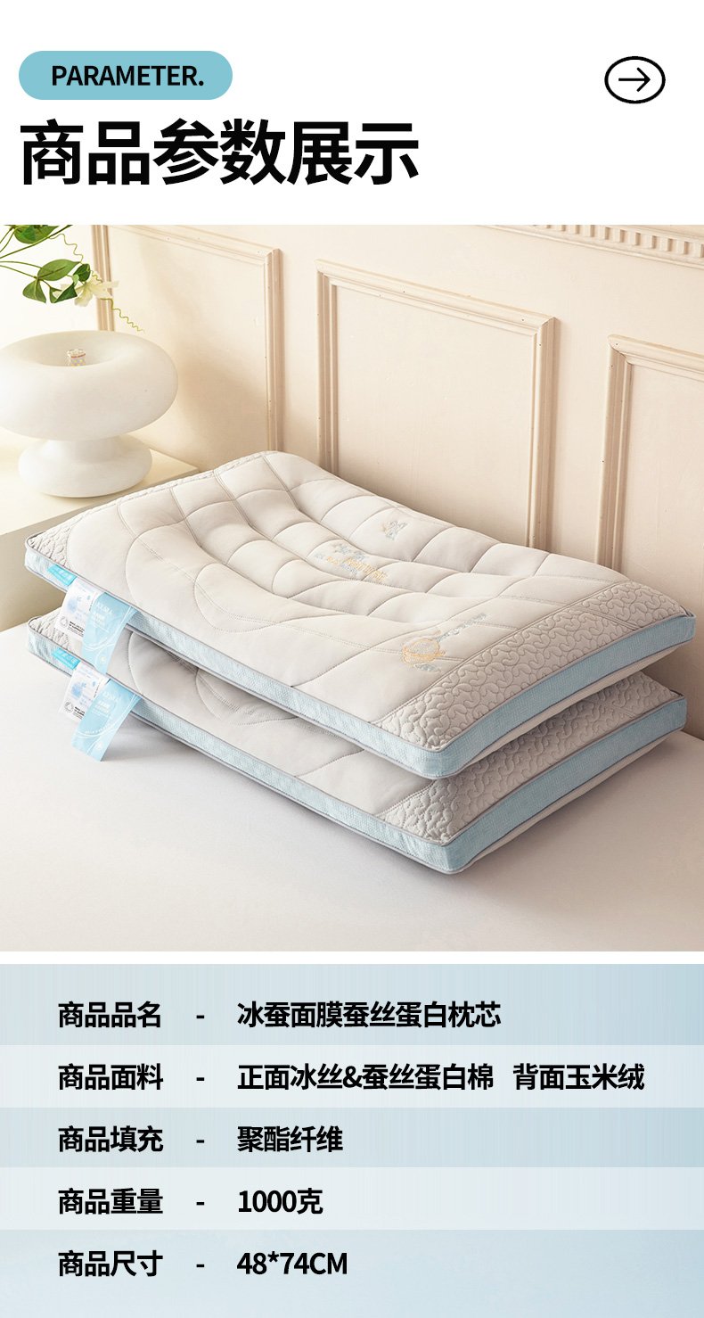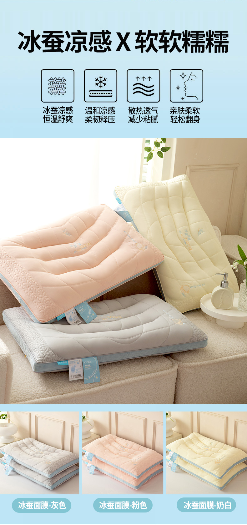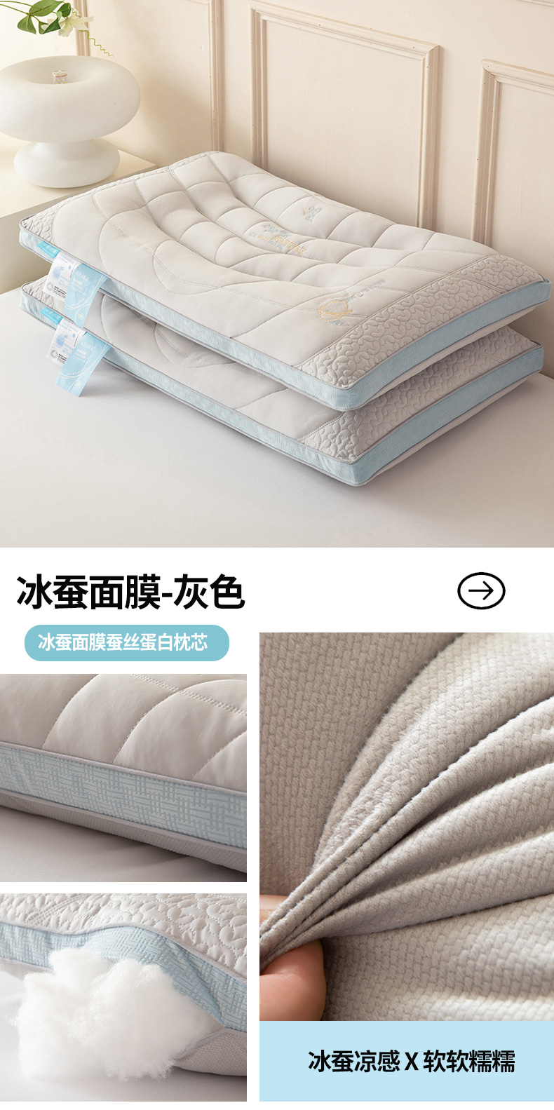 当前位置: 91家纺网 > 商品网购 > 枕头/枕芯/保健枕/颈椎枕 > 普通枕芯 > 梦叶草 2024新款冰蚕面膜蚕丝蛋白枕芯A版凉感丝B版玉米绒四季两用枕头 冰蚕面膜-灰色