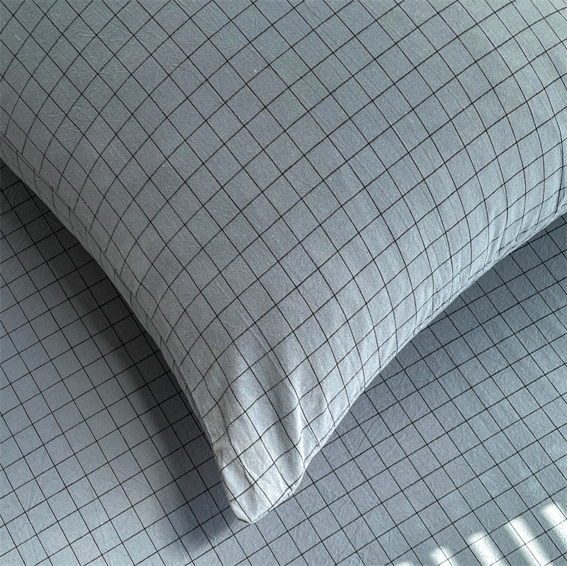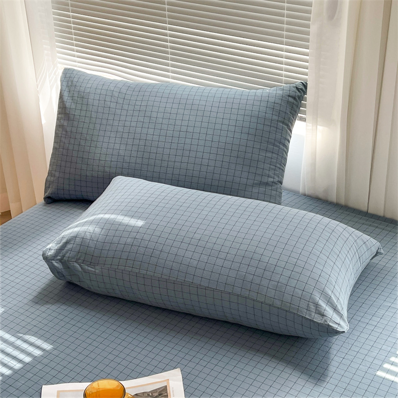 恋人优选 2024新款纯棉色织水洗枕套 小蓝格
