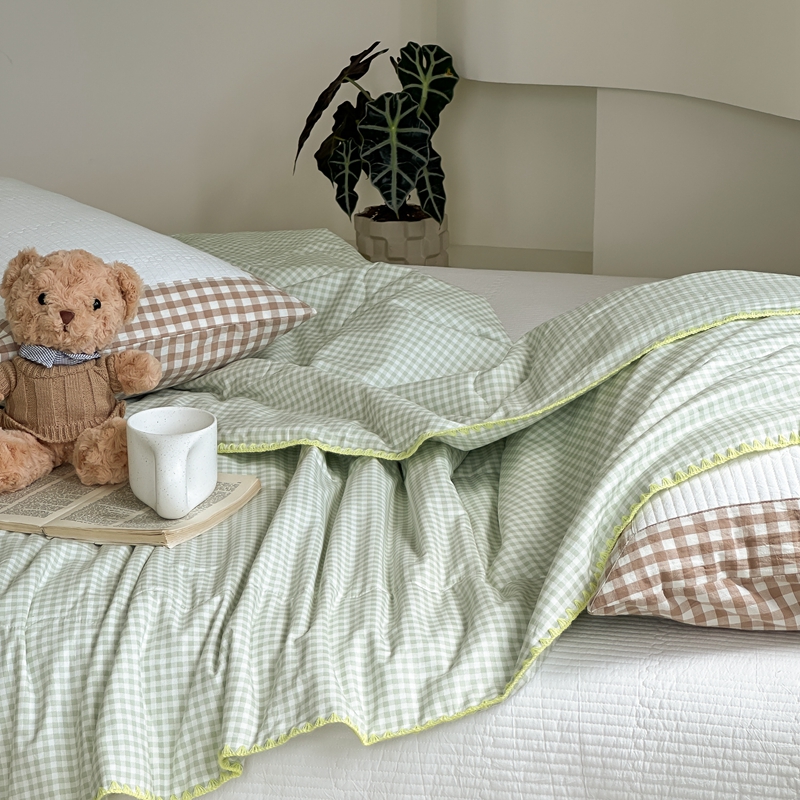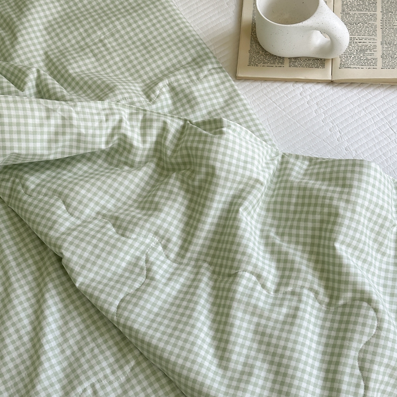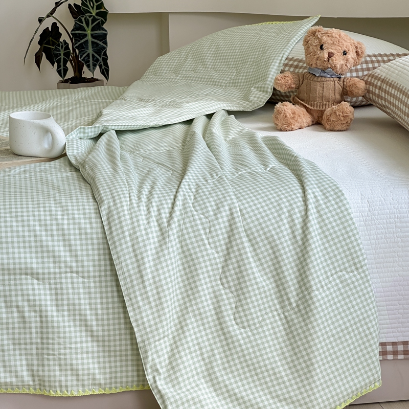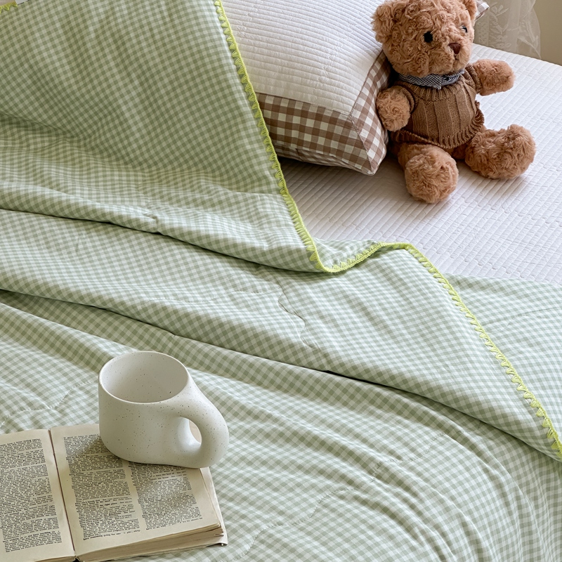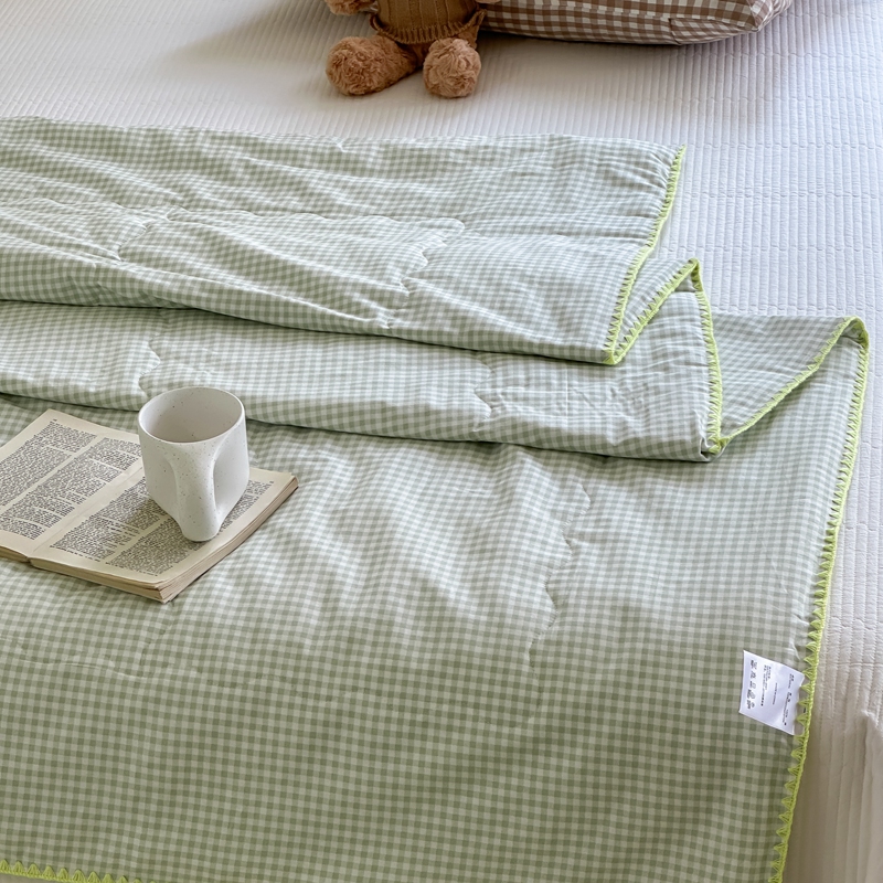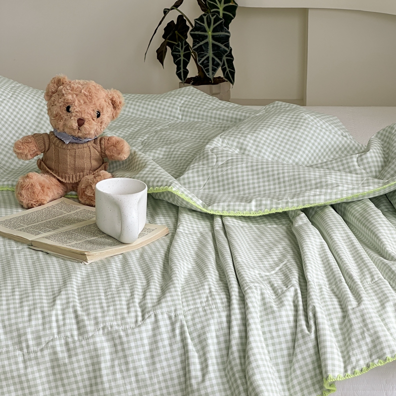 商品名称:洋铭区 2024新款贝壳边全棉印花夏被 绿小格