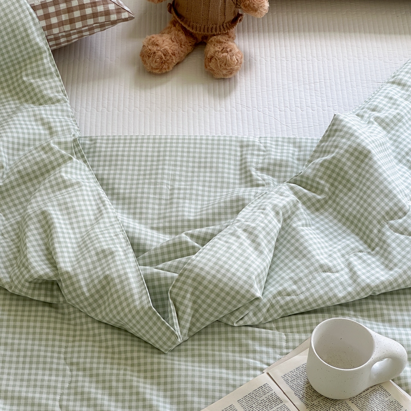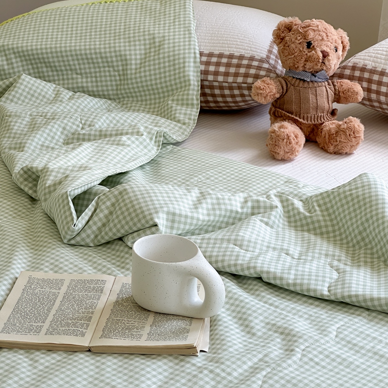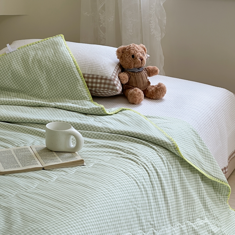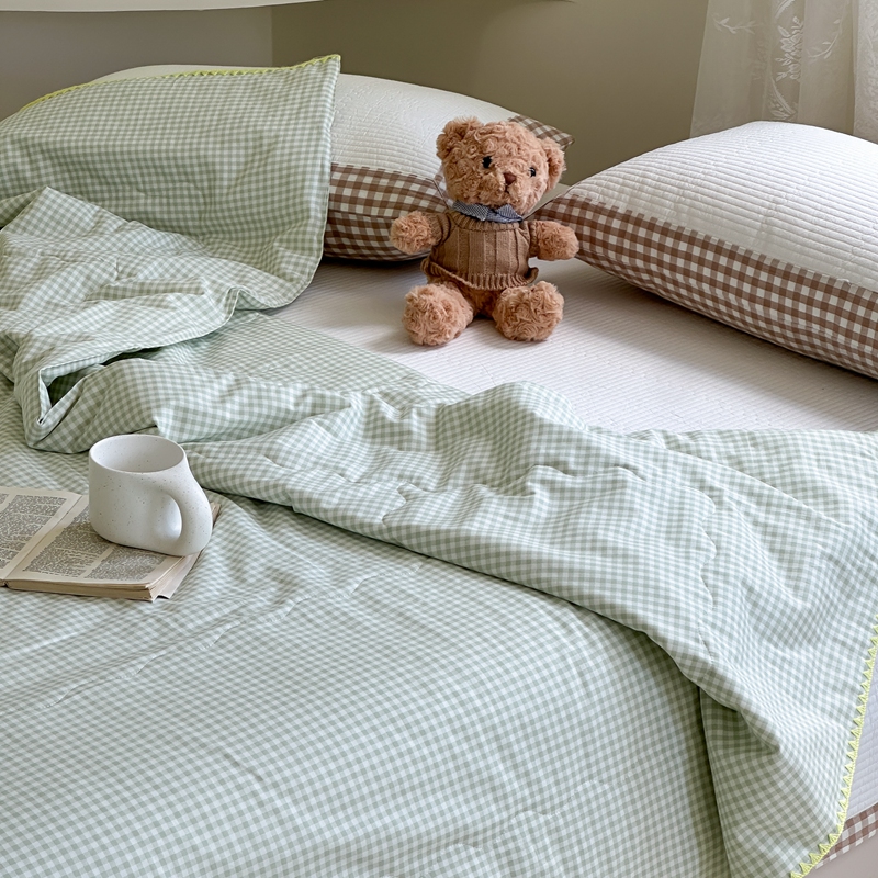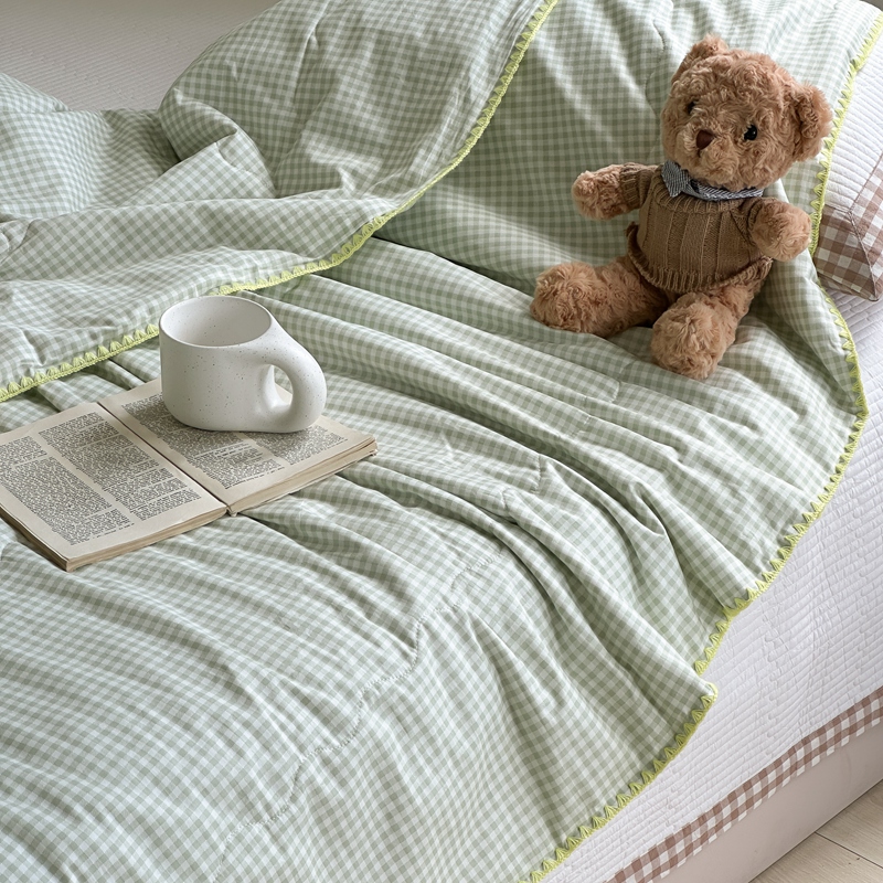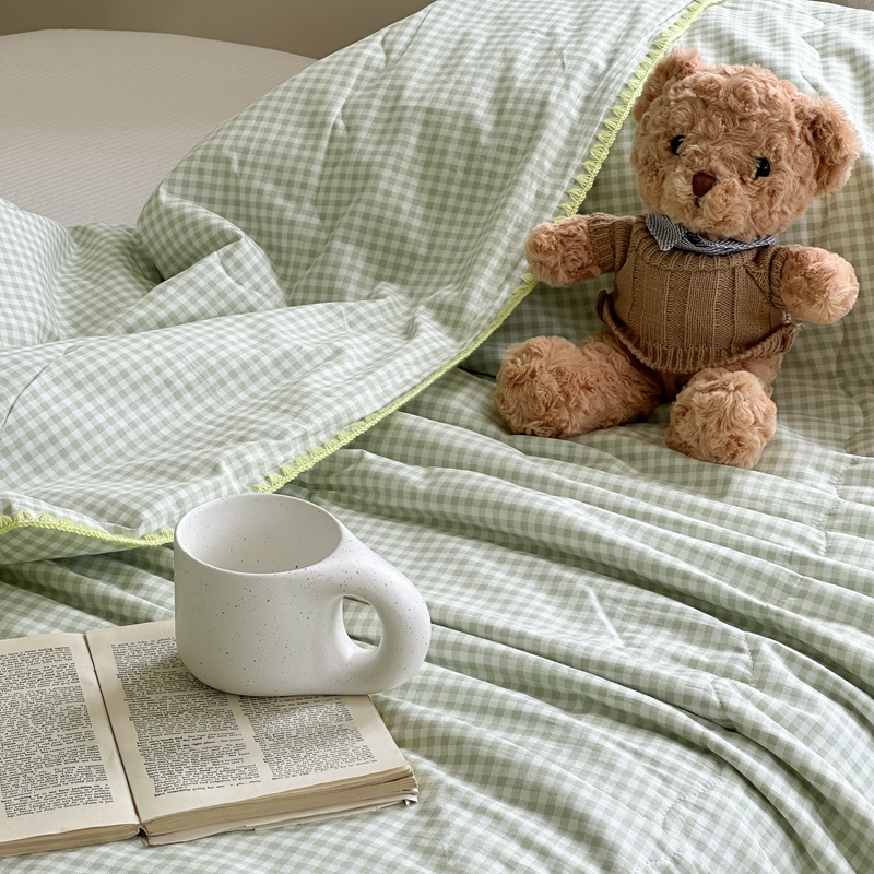 商品名称:洋铭区 2024新款贝壳边全棉印花夏被 绿小格