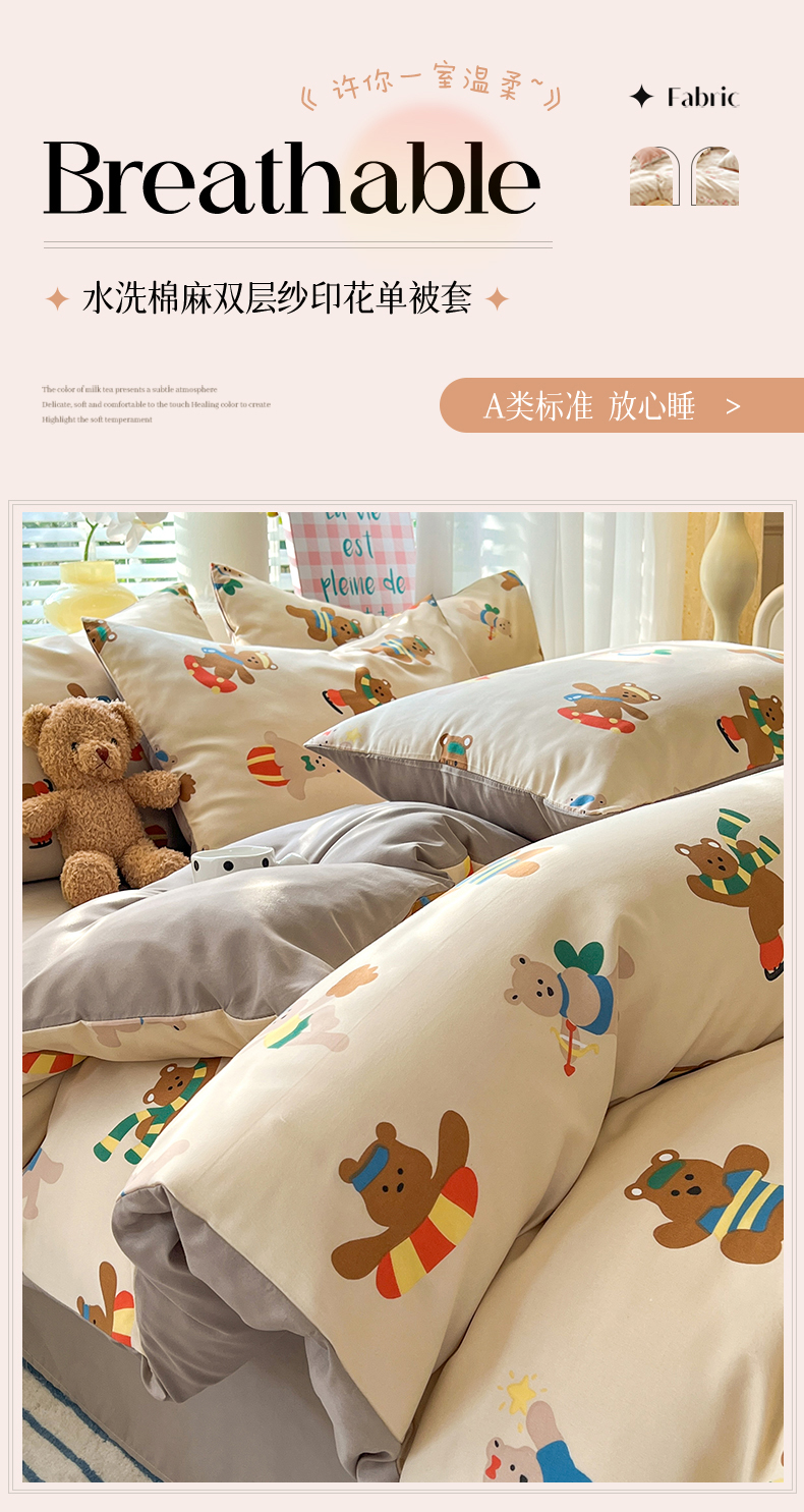 商品名称:多品家纺 2024新款水洗棉麻单被套 欢乐世界
