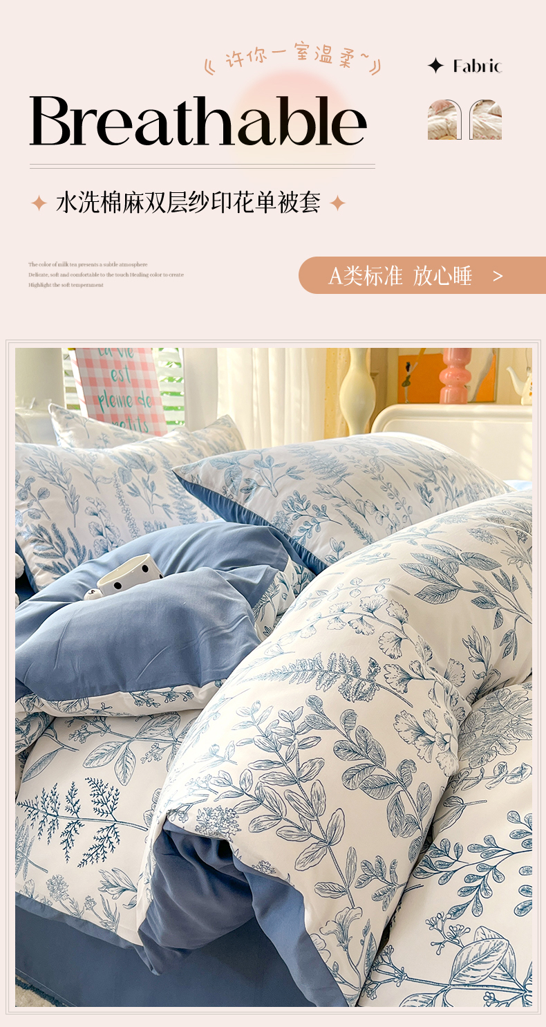 商品名称:多品家纺 2024新款水洗棉麻单被套 幽兰
