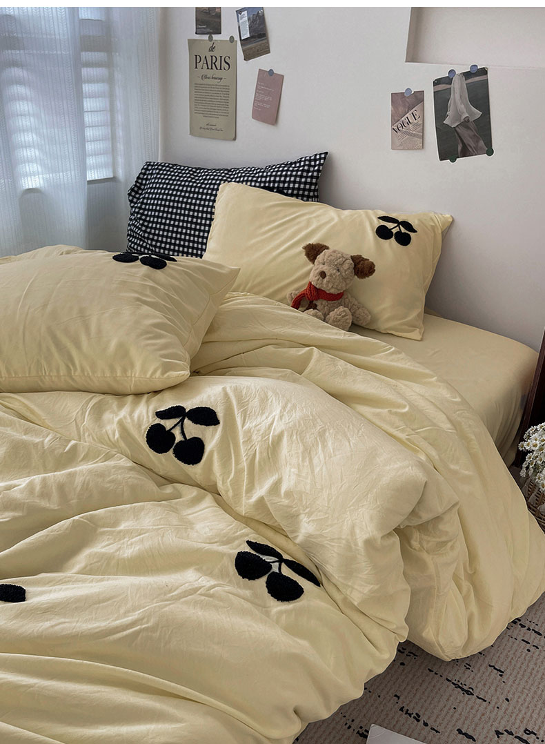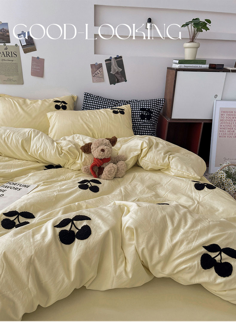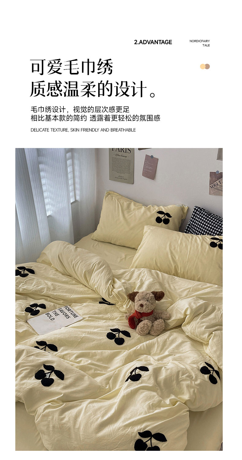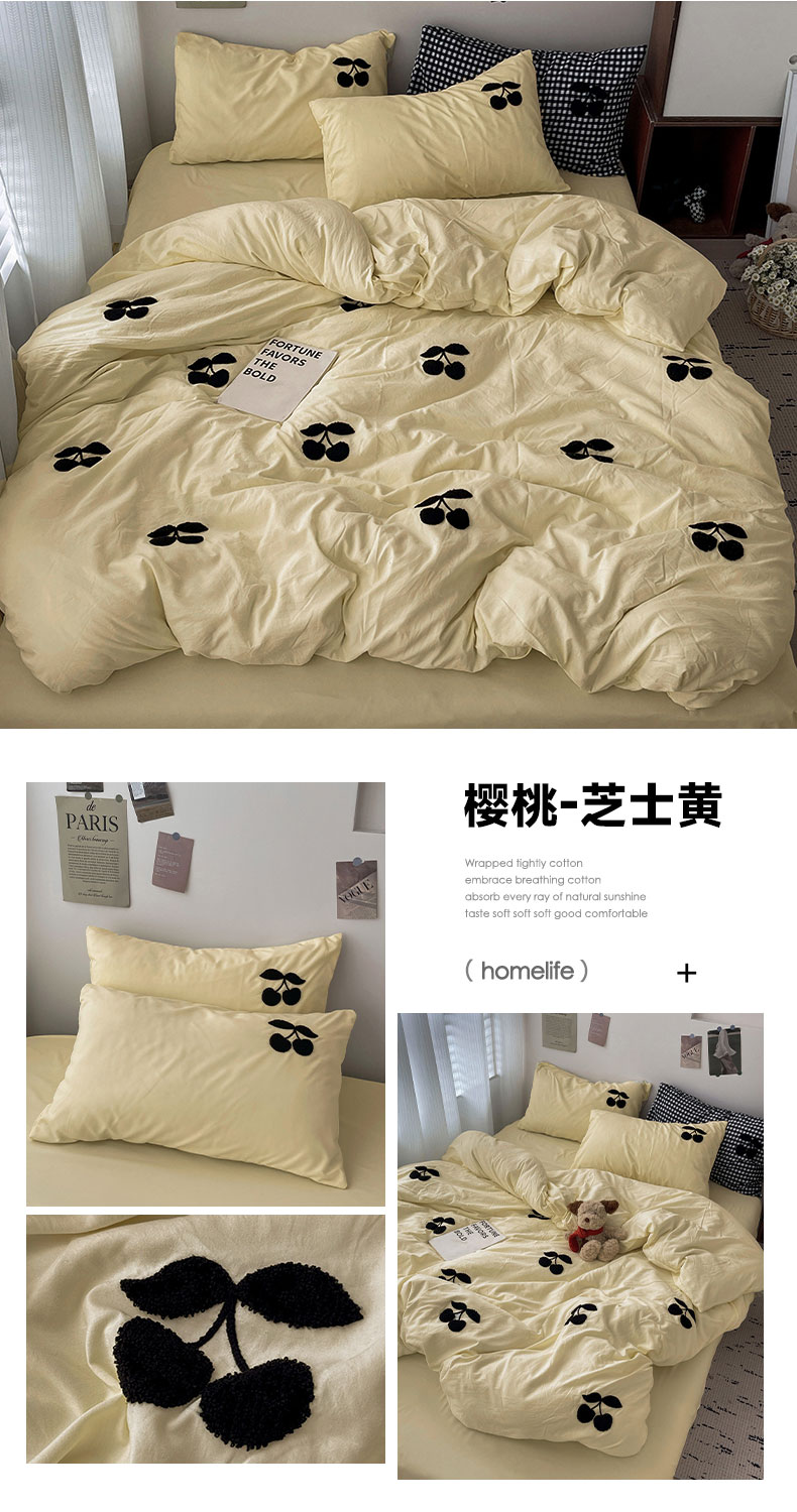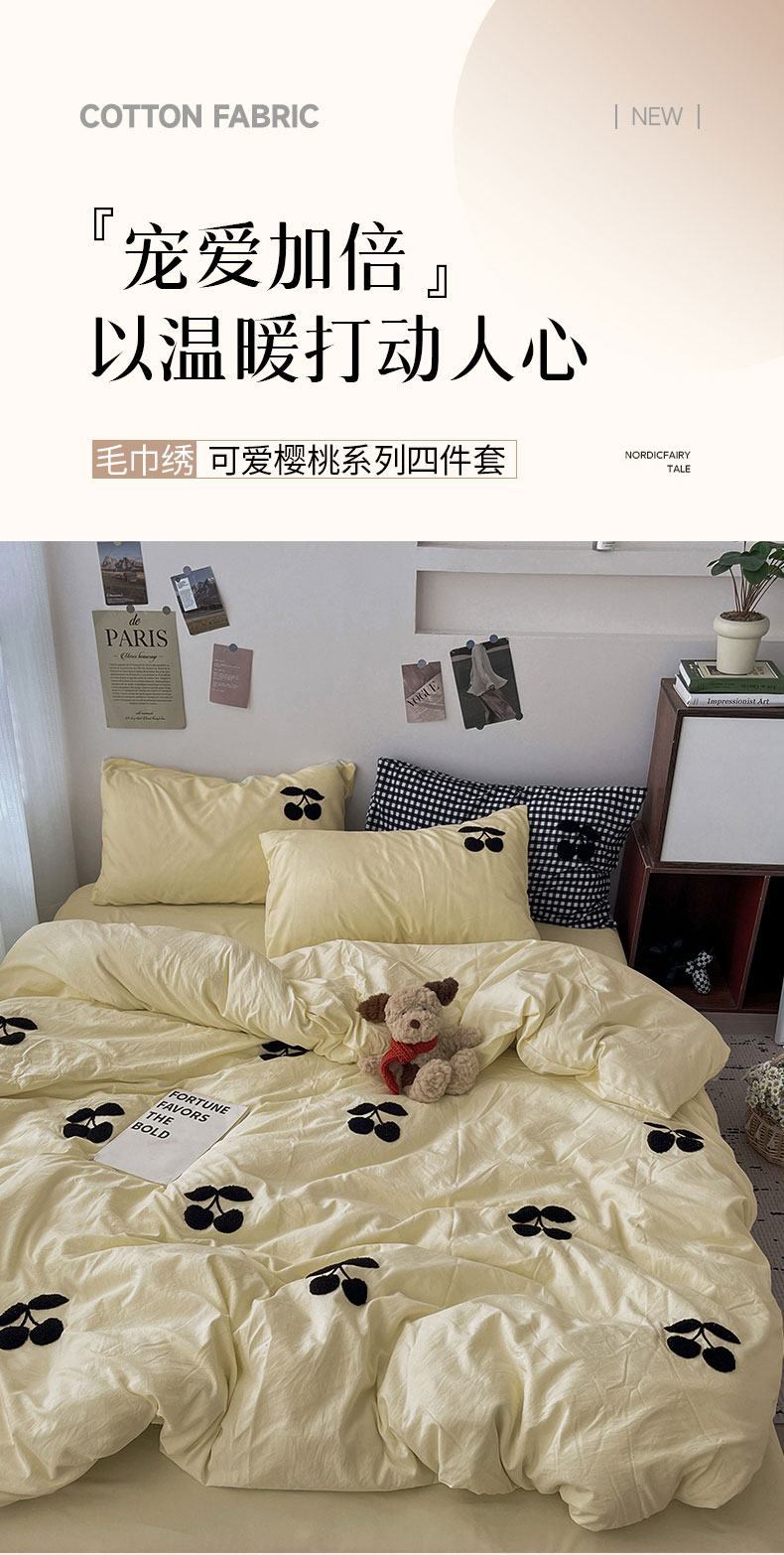 当前位置: 91家纺网 > 商品网购 > 床品套件 > 四件套 > 水洗棉四件套 > 尤米 2024新款可爱樱桃系列水洗棉毛巾绣四件套 樱桃-芝士黄
