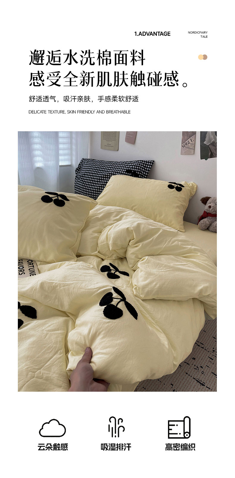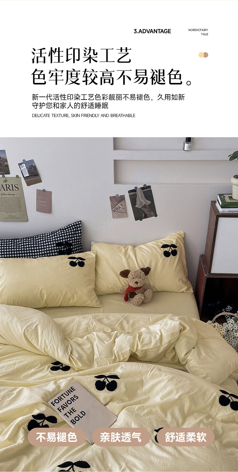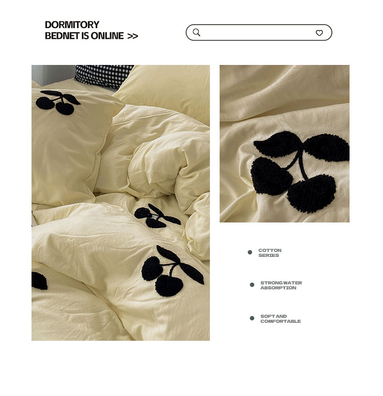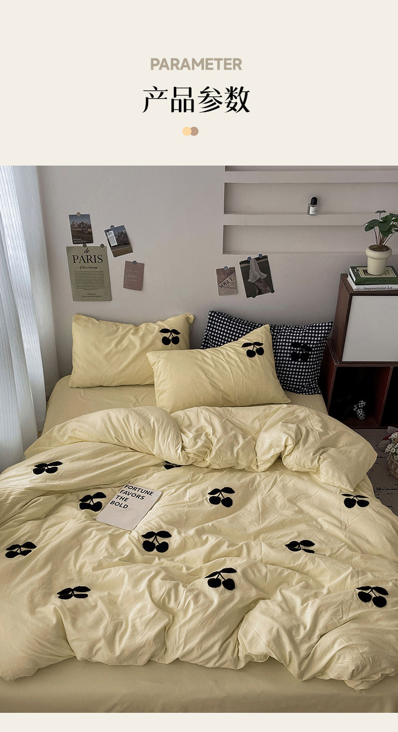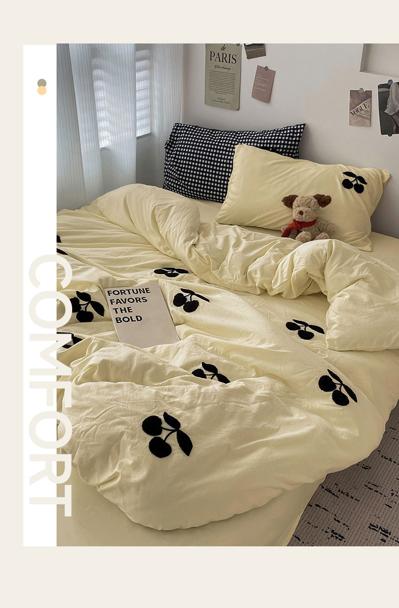 当前位置: 91家纺网 > 商品网购 > 床品套件 > 四件套 > 水洗棉四件套 > 尤米 2024新款可爱樱桃系列水洗棉毛巾绣四件套 樱桃-芝士黄