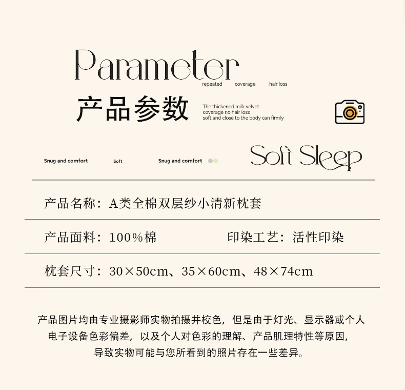 商品名称:(总)时光里 2024新款A类全棉双层纱单枕套
