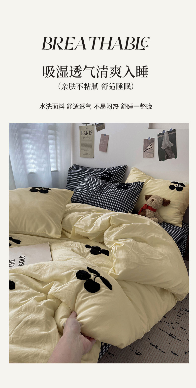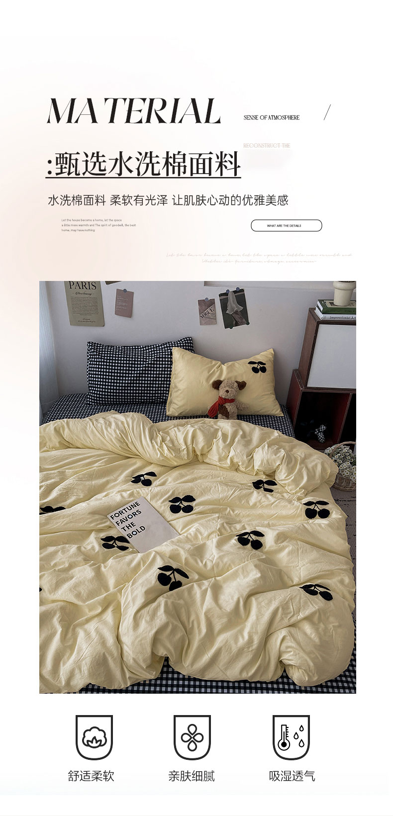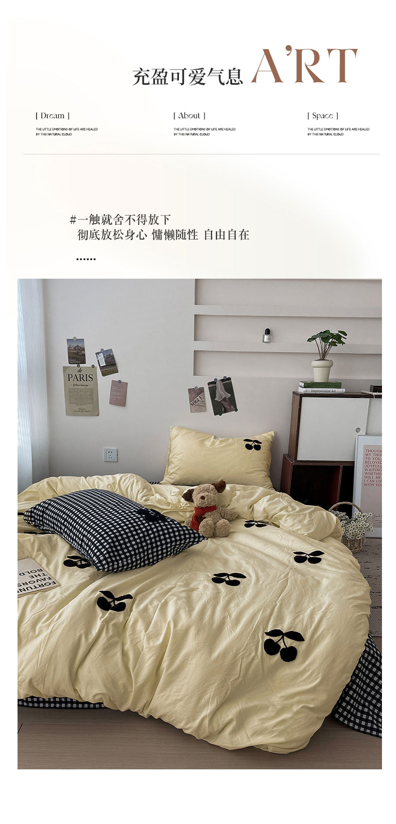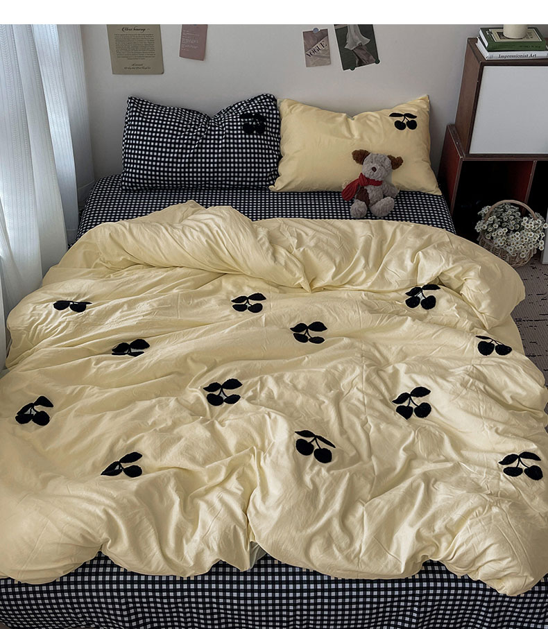 商品名称:尤米 2024新款可爱樱桃系列水洗棉毛巾绣单被套 樱桃-黄格