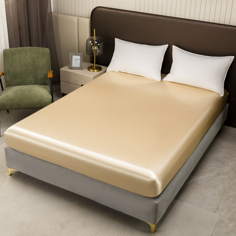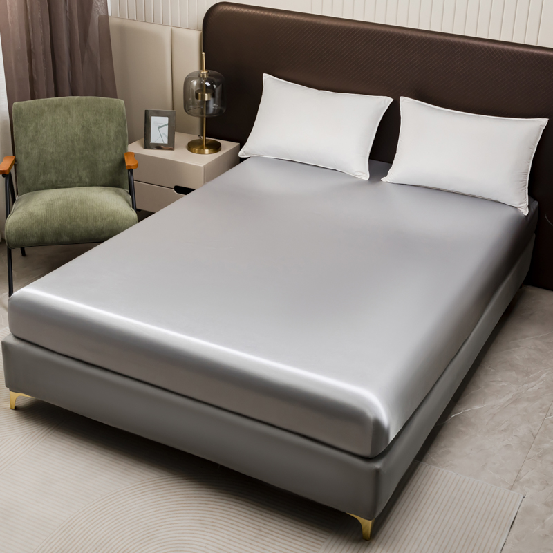 商品名称:2025款仿真丝色丁床笠单件 跨境外贸纯色床笠爆款单件床上用品可定制 银灰