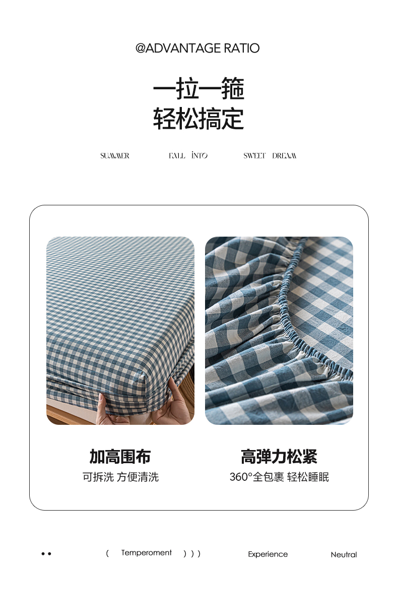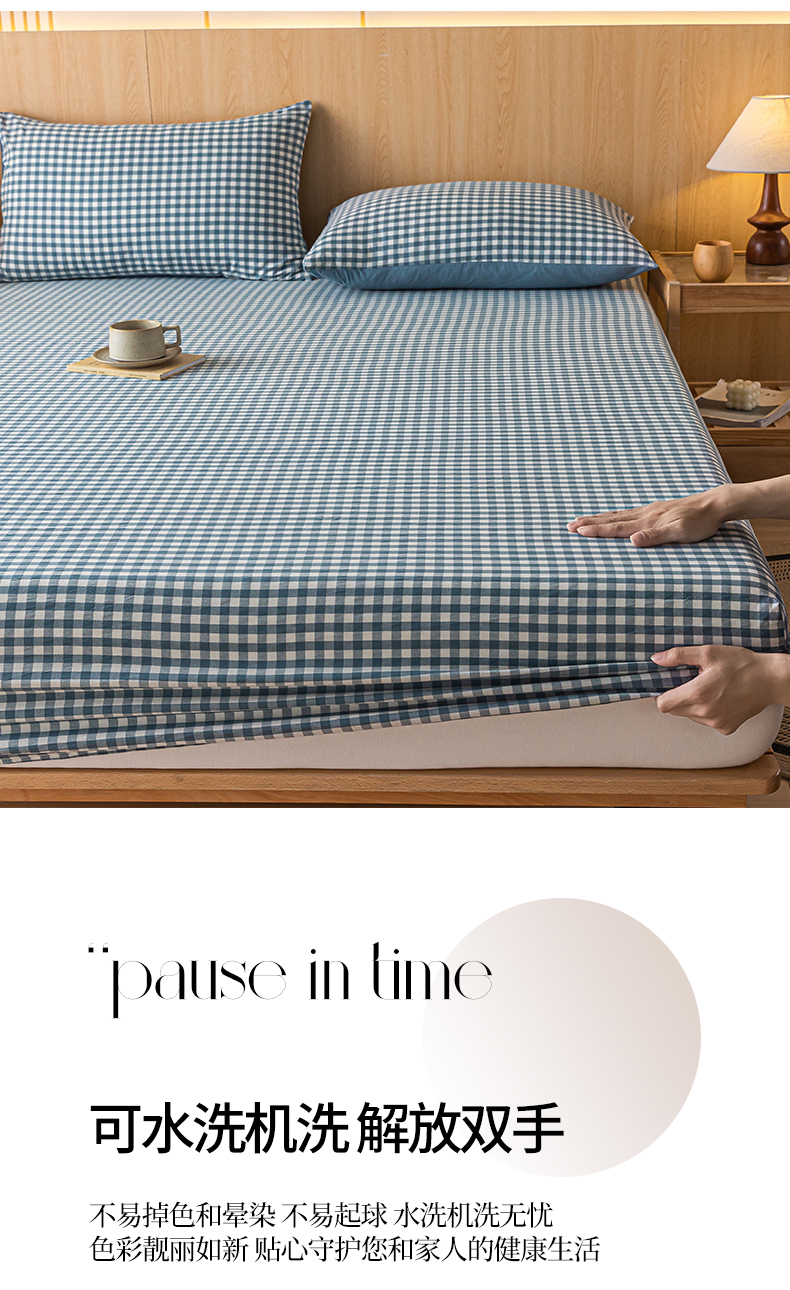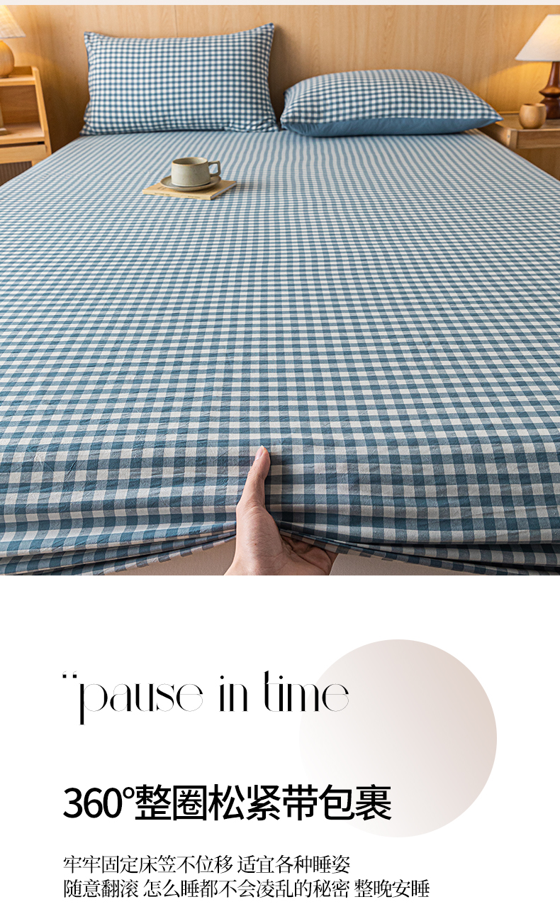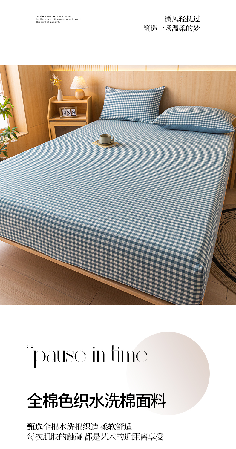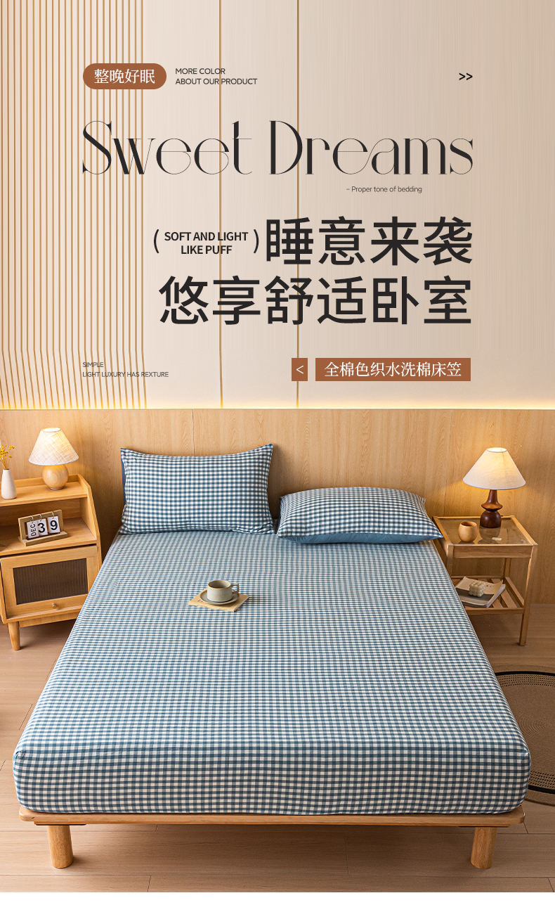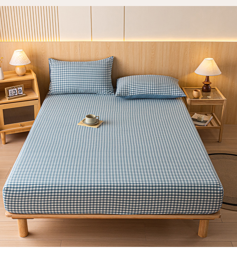 雅居纺家纺 2024新款全棉色织水洗棉床笠 床笠-蓝小格