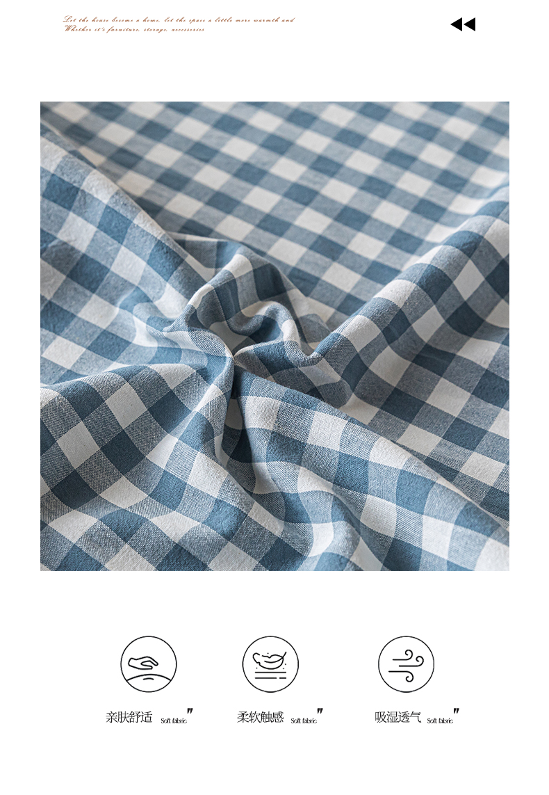 商品名称:雅居纺家纺 2024新款全棉色织水洗棉床笠 床笠-蓝小格