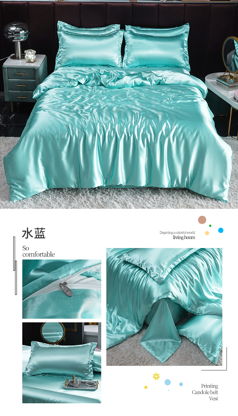 当前位置: 91家纺网 > 商品网购 > 床品套件 > 四件套 > 化纤活性四件套 > 莱越家纺 纯色网红款双面冰丝四件套夏季凉感丝真丝被套床单三件套床上用品 水蓝