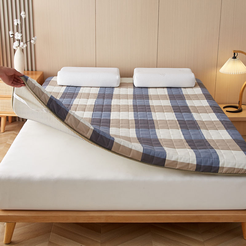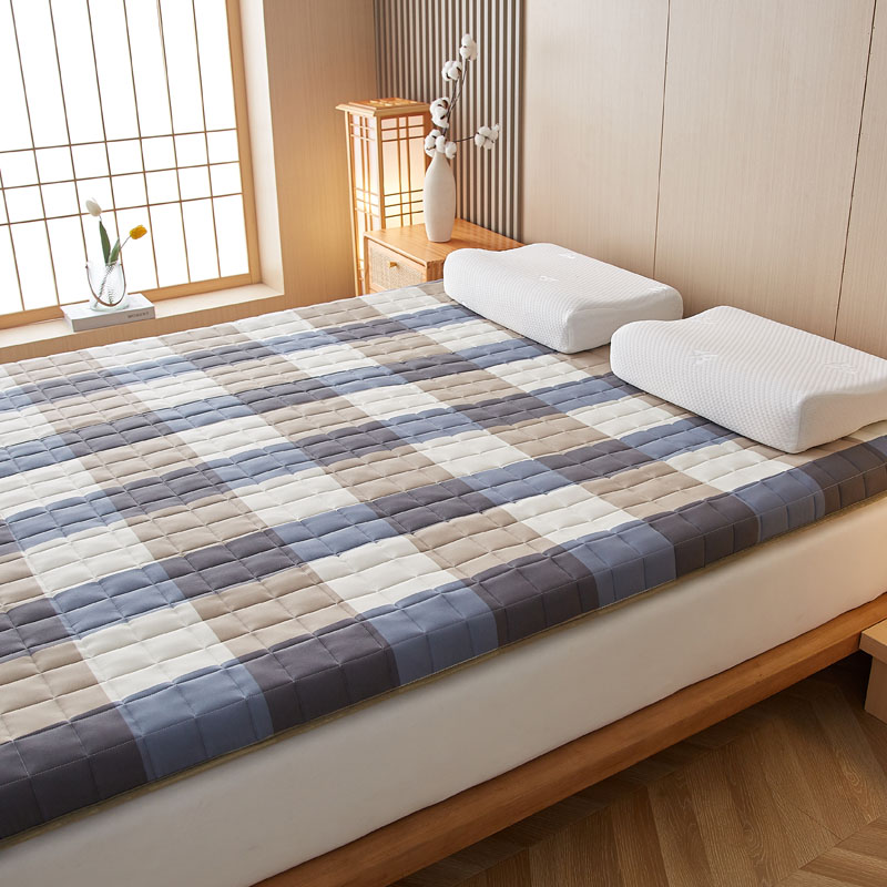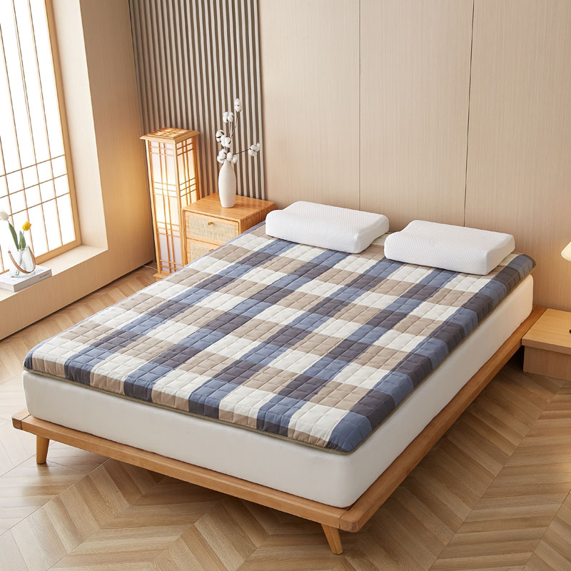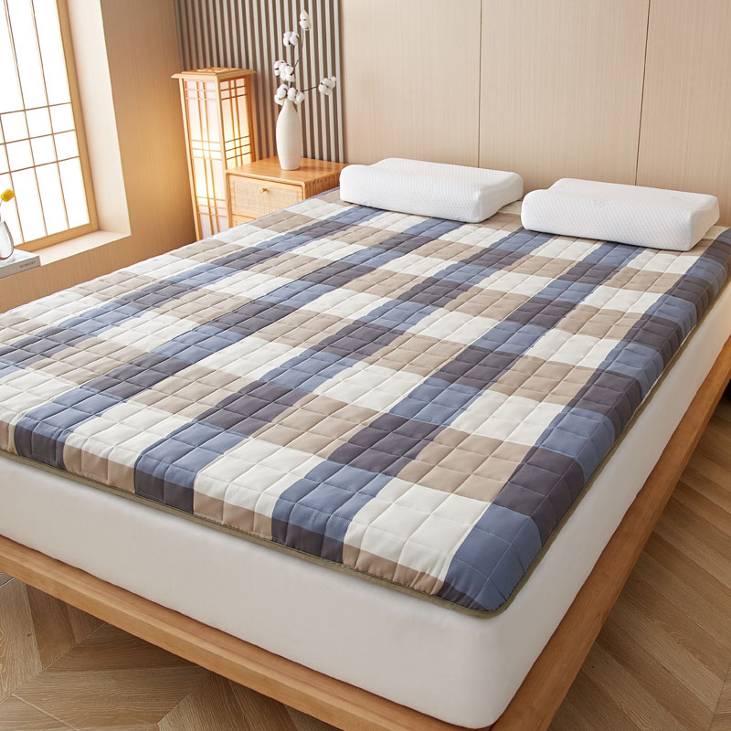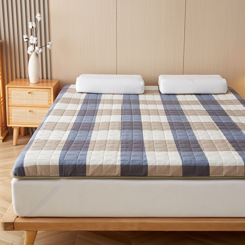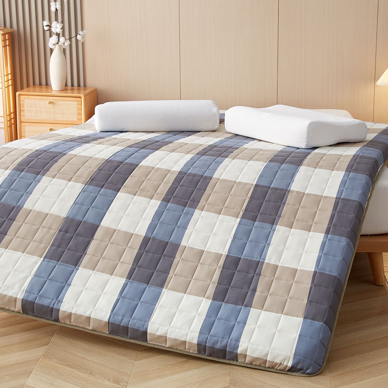 商品名称:暖季家纺 2025新款A类全棉无印风棉花床垫系列成人款 蓝大格