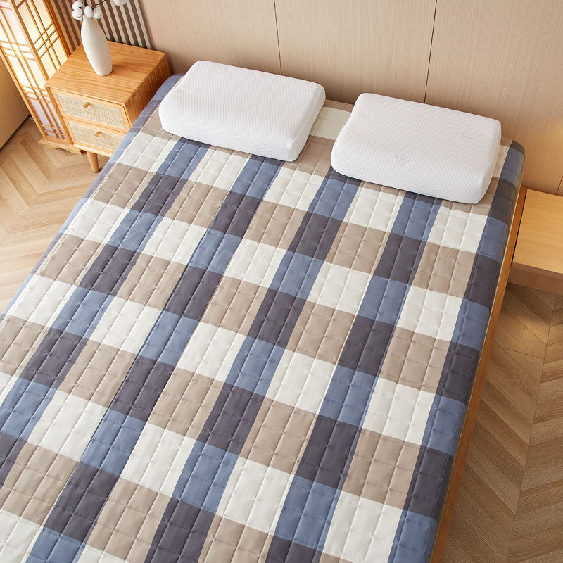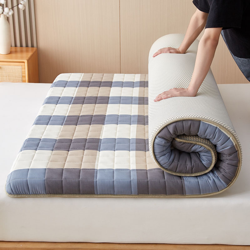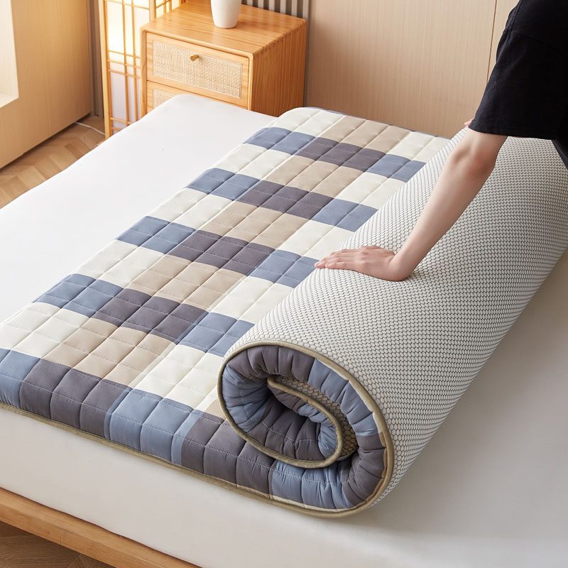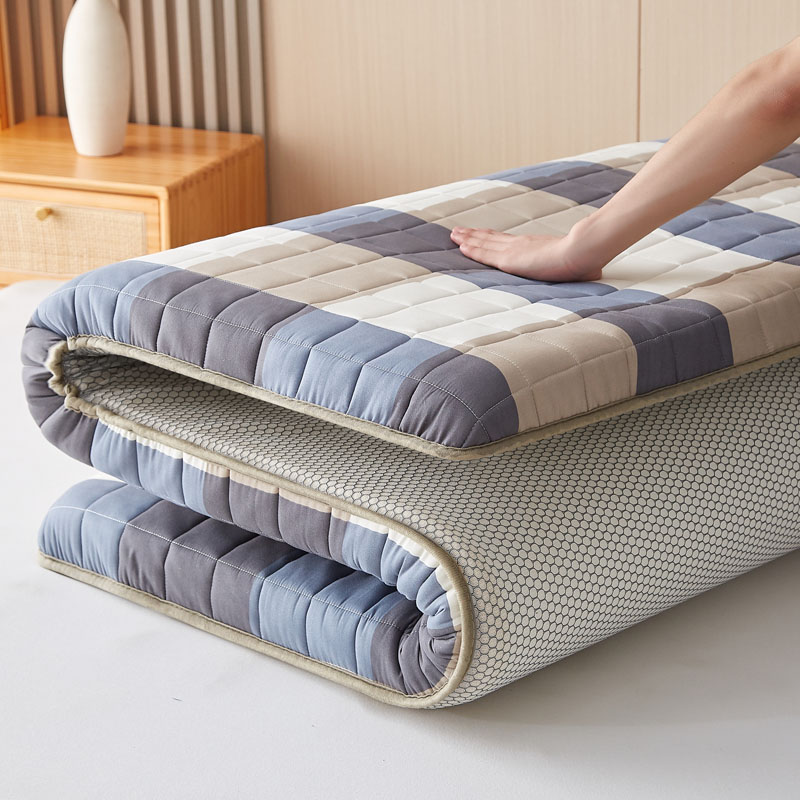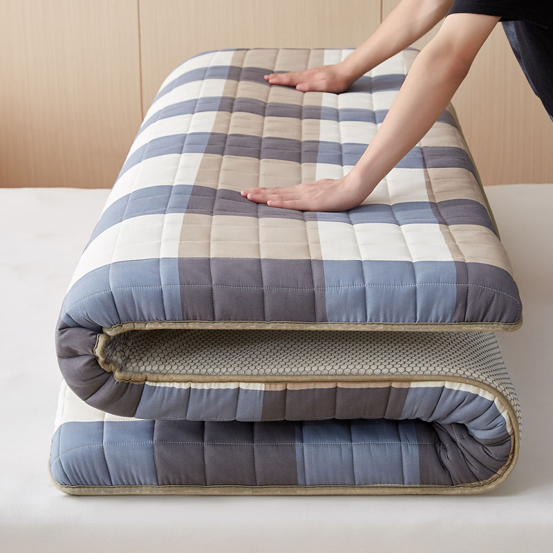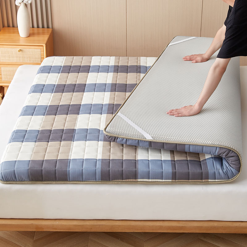 商品名称:暖季家纺 2025新款A类全棉无印风棉花床垫系列成人款 蓝大格