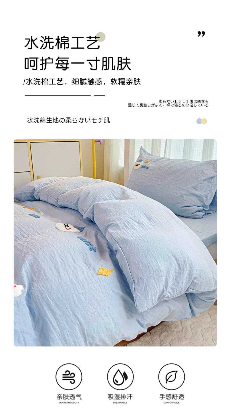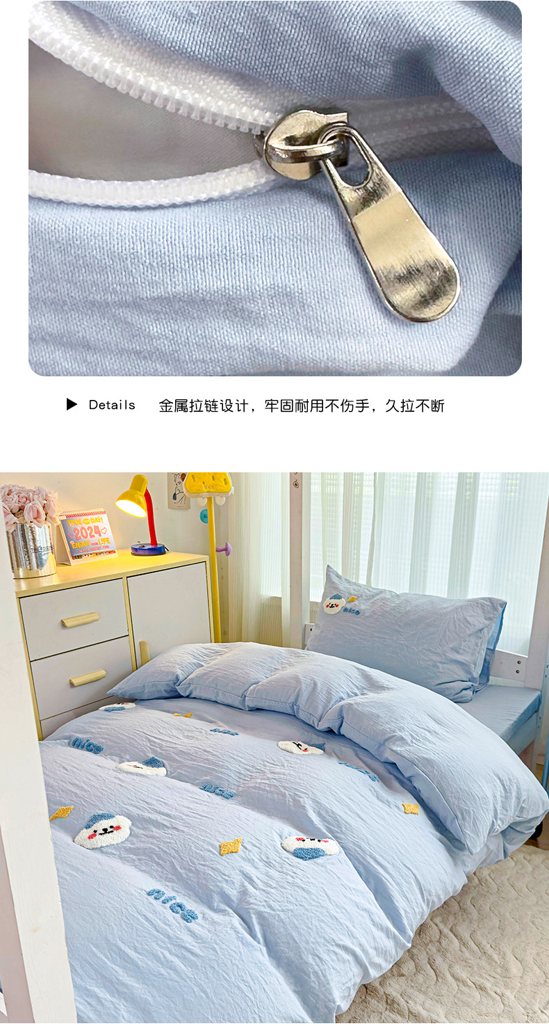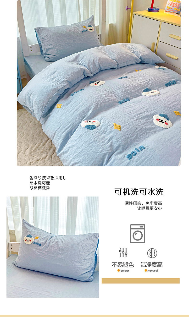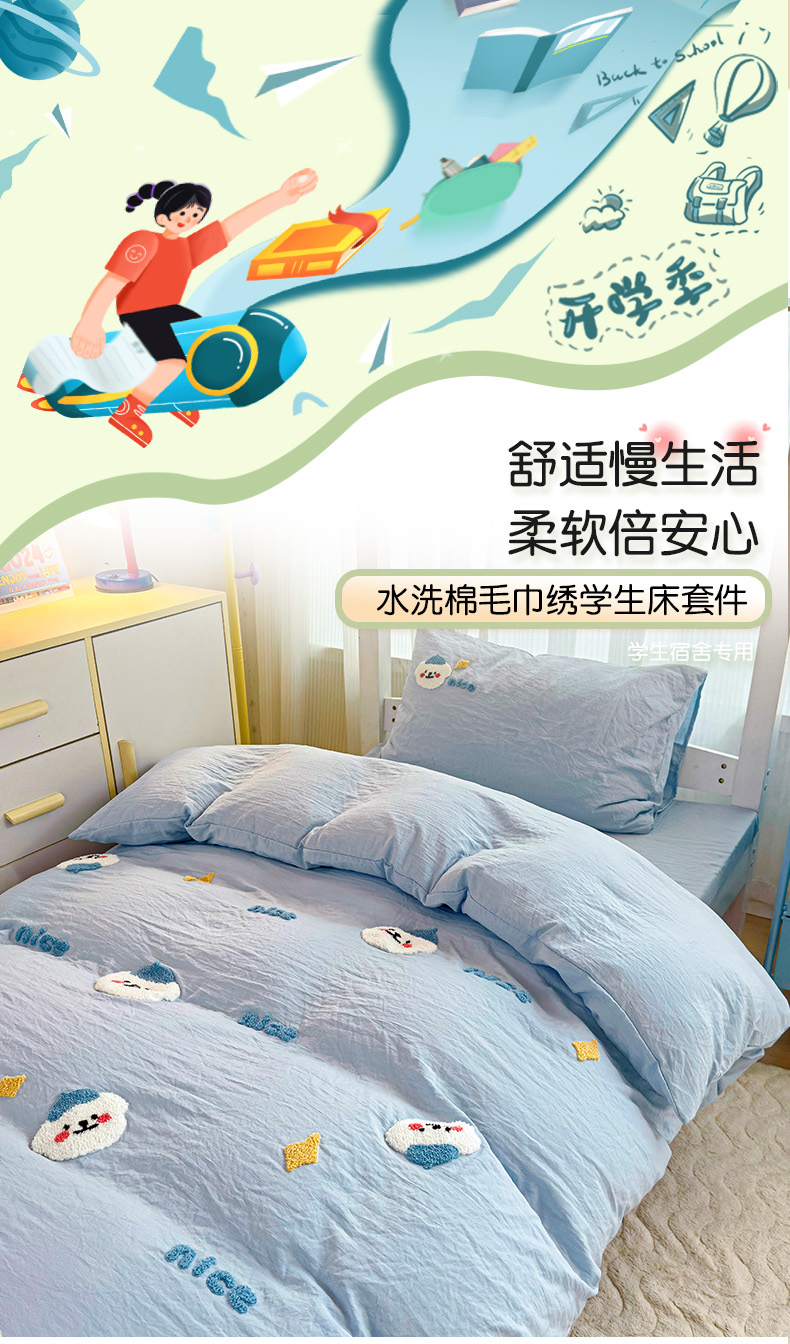当前位置: 91家纺网 > 商品网购 > 床品套件 > 三件套 > 韩巢家纺 2024新款学生宿舍寝室上下铺超柔水洗棉床单被套三件套-哈哈狗(提供卖家秀) 哈哈狗浅蓝