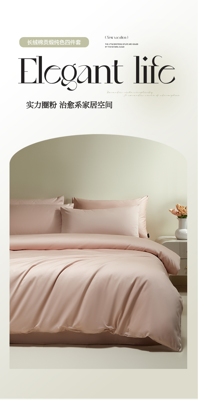 安莱生活 2024新款100s全棉贡缎四件套 虾粉