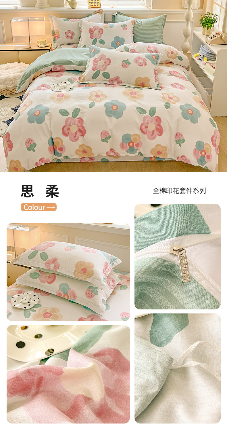 绵庭家纺 2024新款全棉印花套件系列四件套 思柔