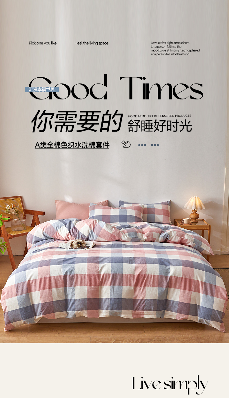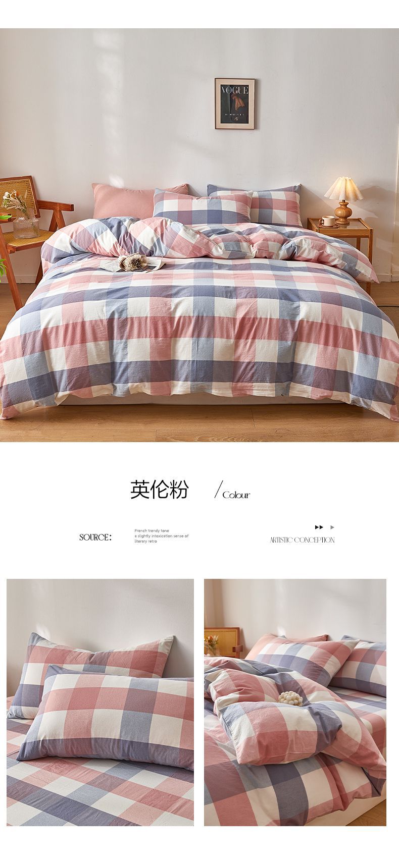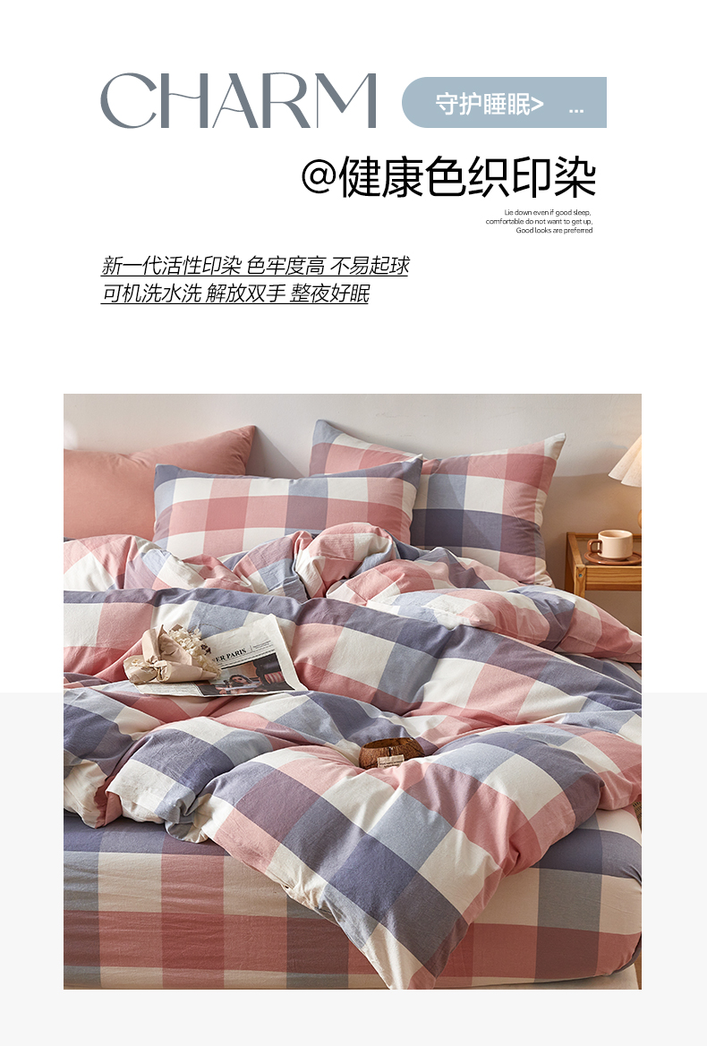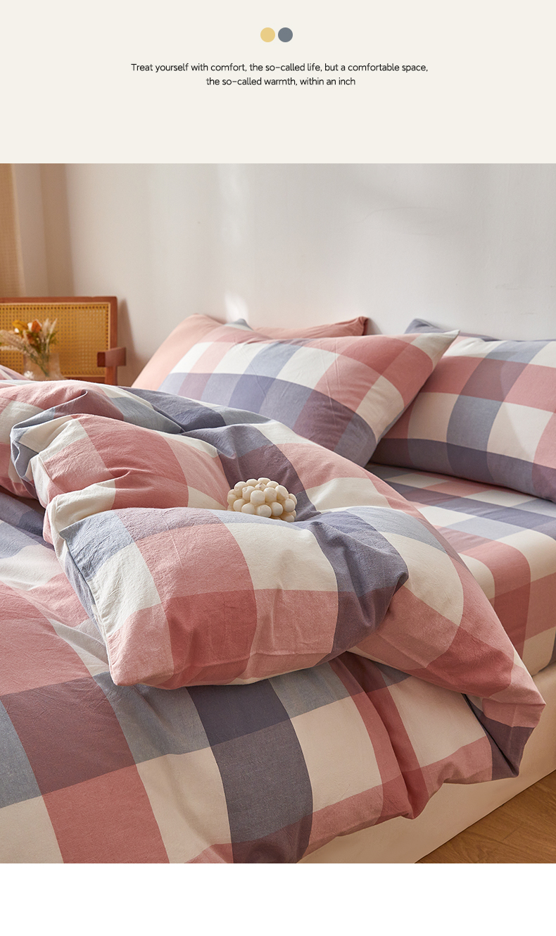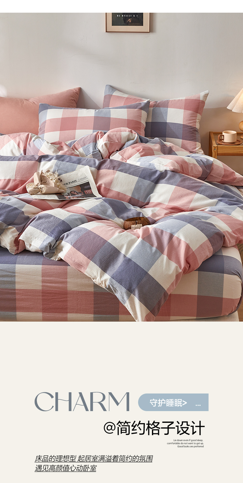 当前位置: 91家纺网 > 商品网购 > 床品套件 > 四件套 > 全棉普通四件套 > 2025新款全棉色织水洗棉四件套被套三件套系列 英伦粉