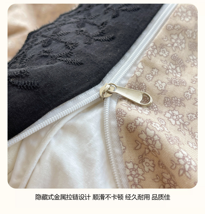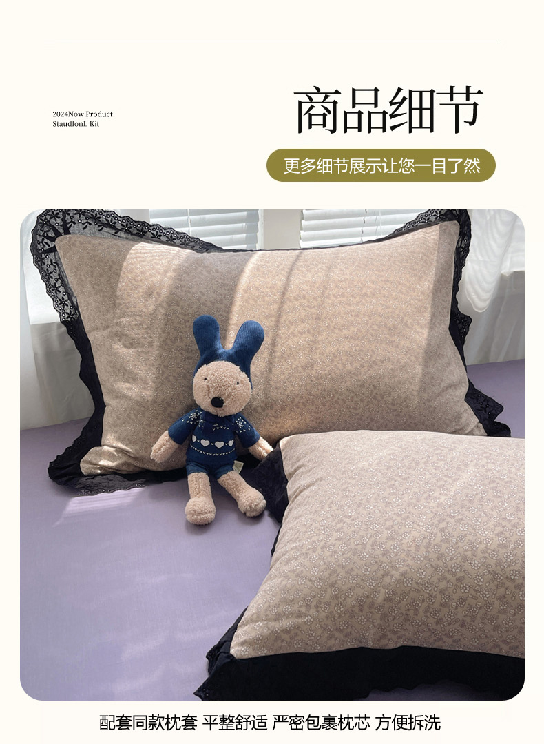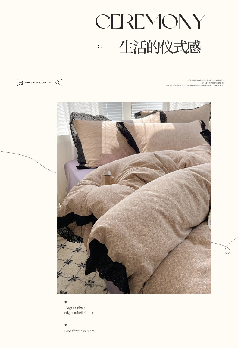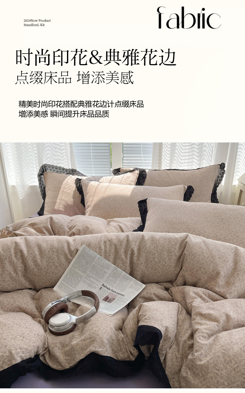 商品名称:2025新款全棉黑边双层纱花边款四件套 花边款-花卉