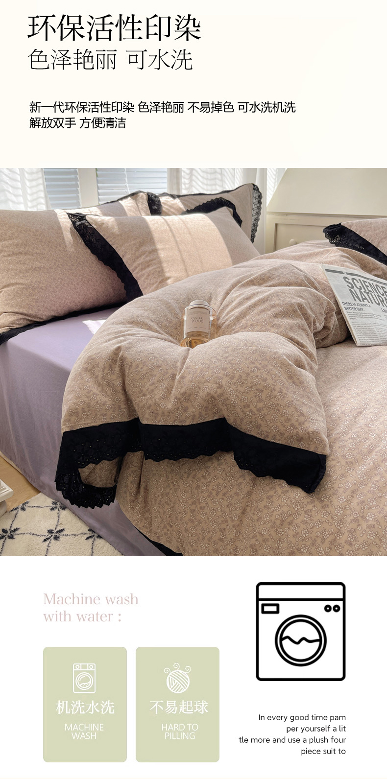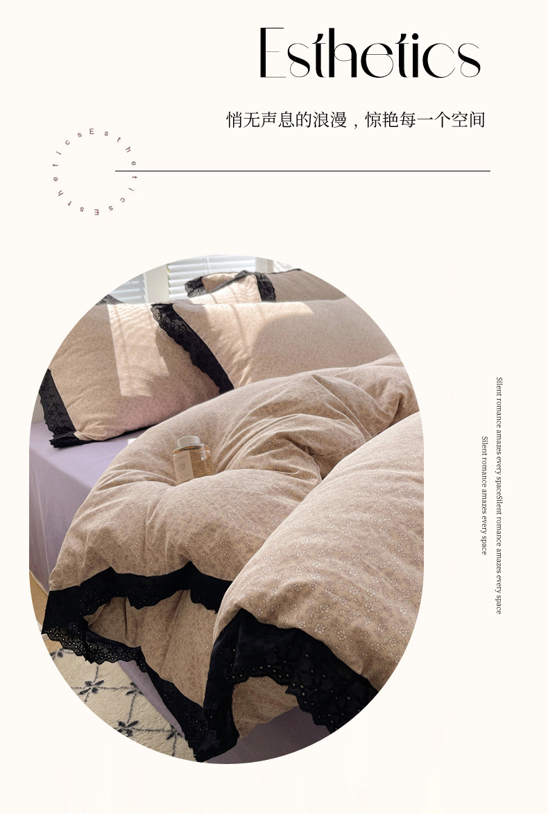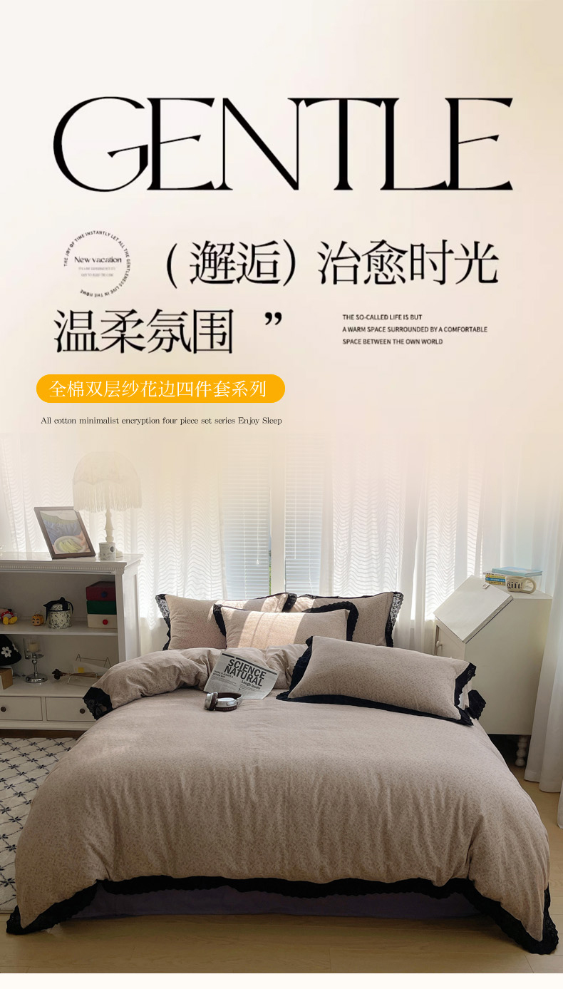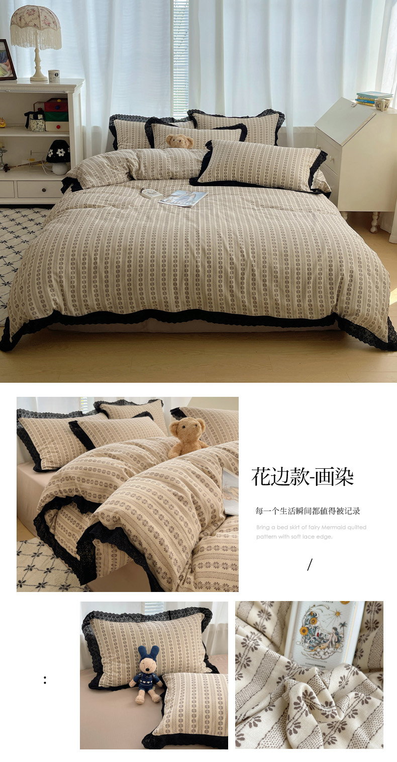 2025新款全棉黑边双层纱花边款四件套 花边款-花卉