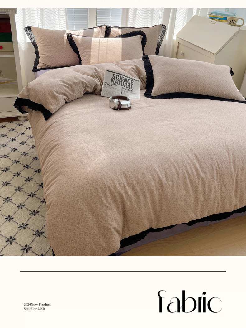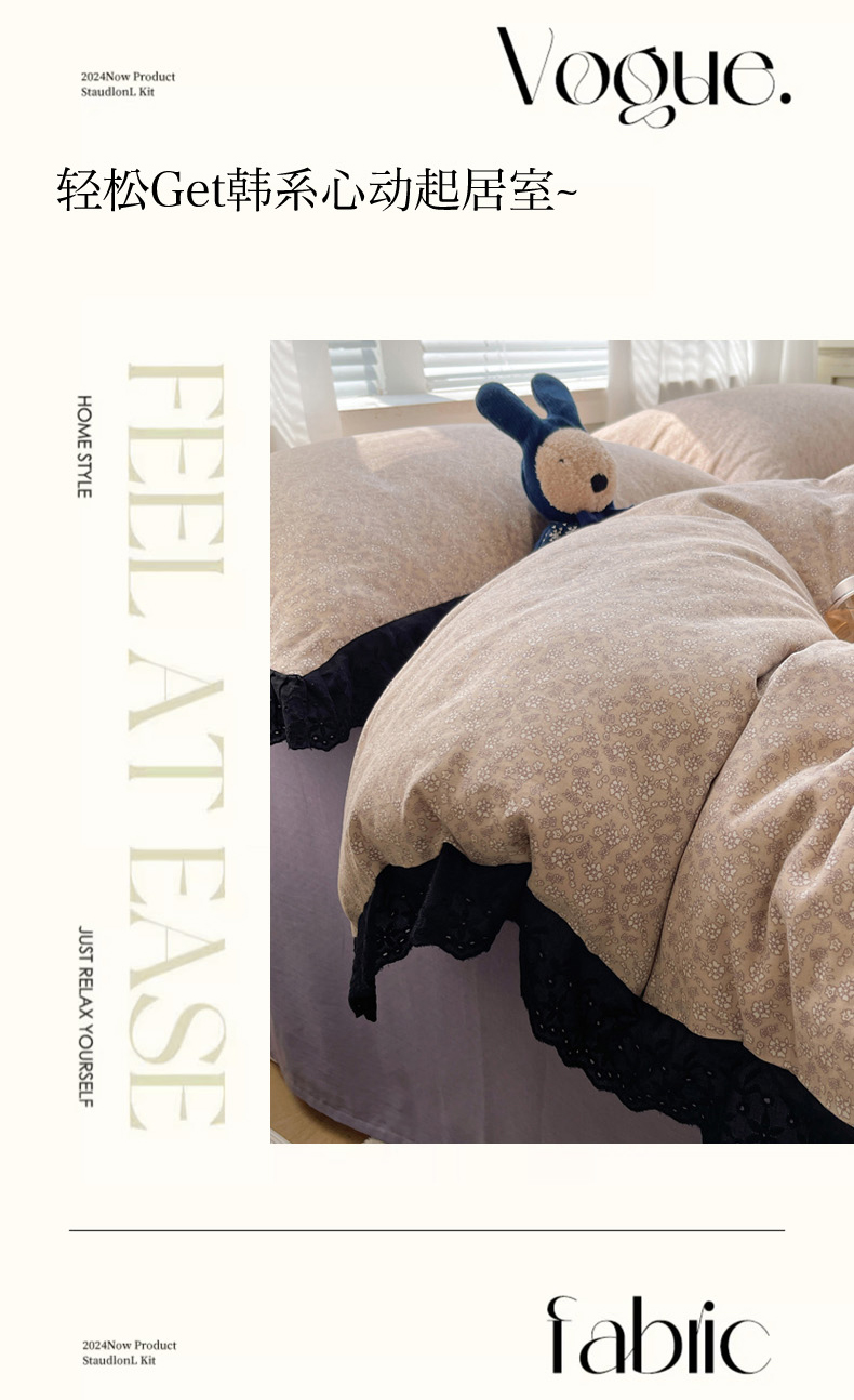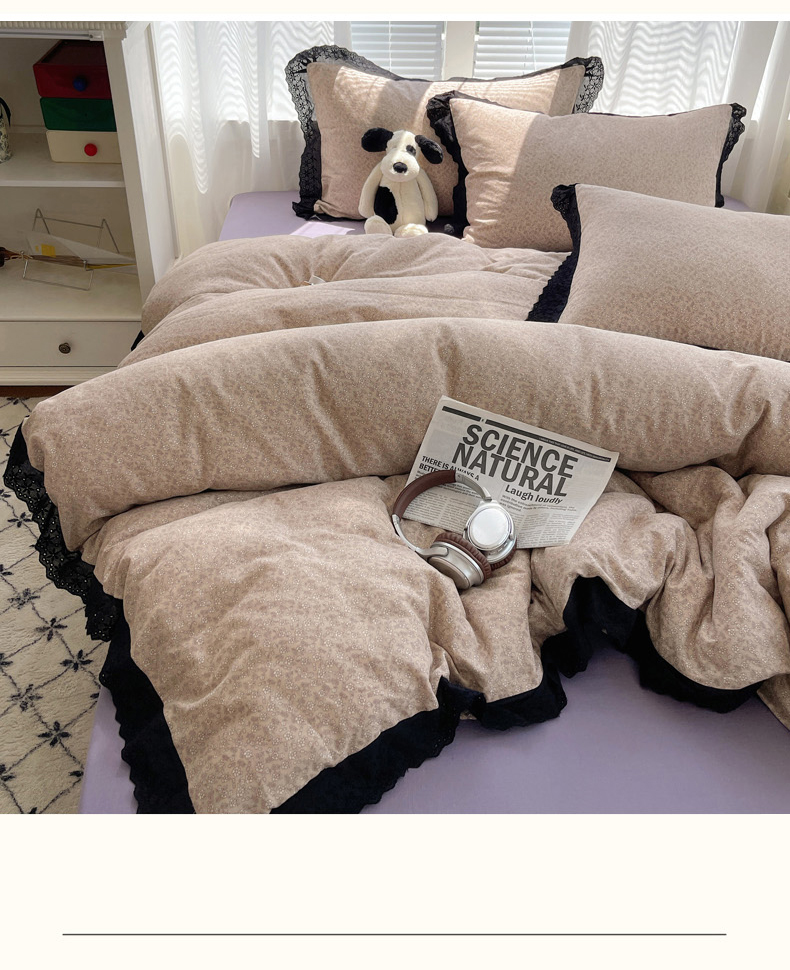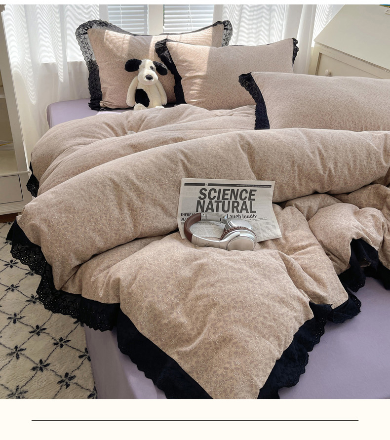 2025新款全棉黑边双层纱花边款四件套 花边款-花卉