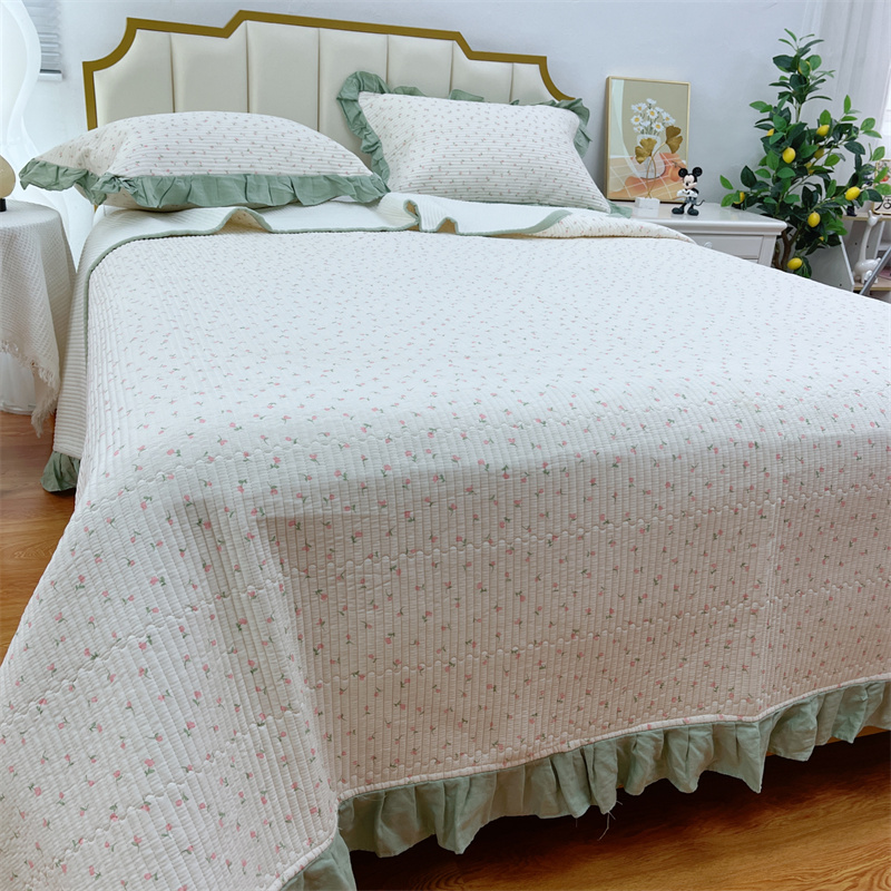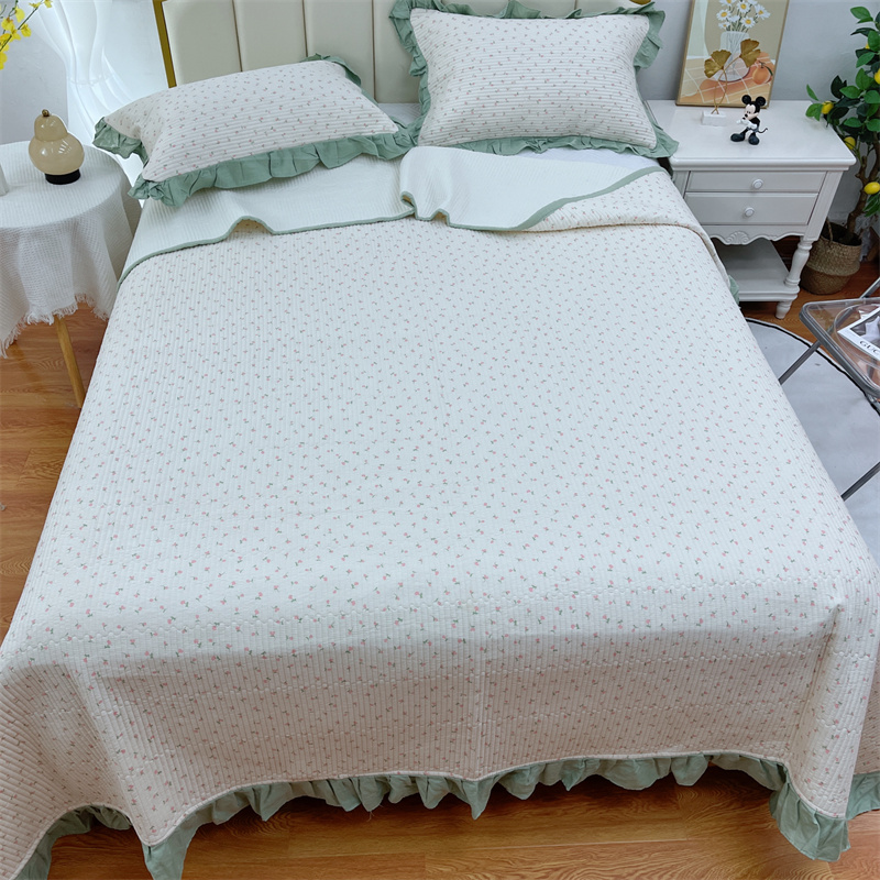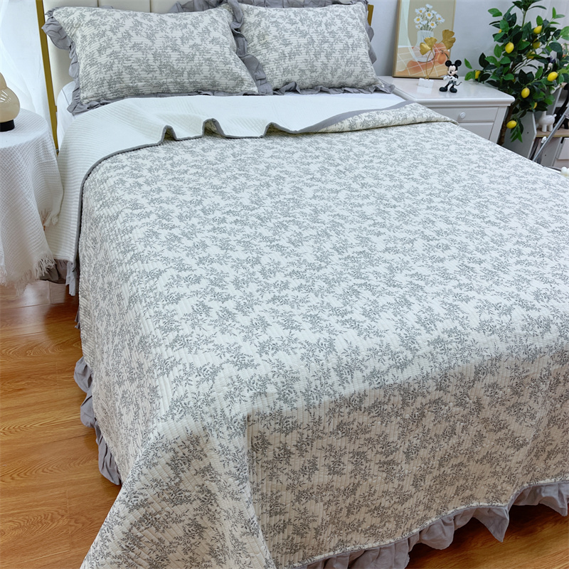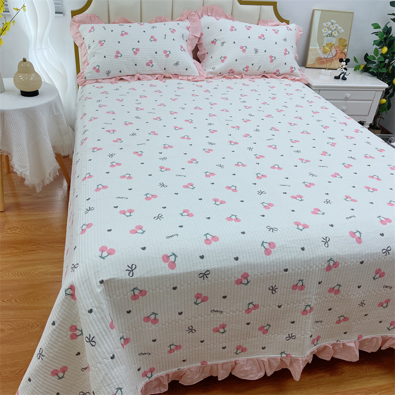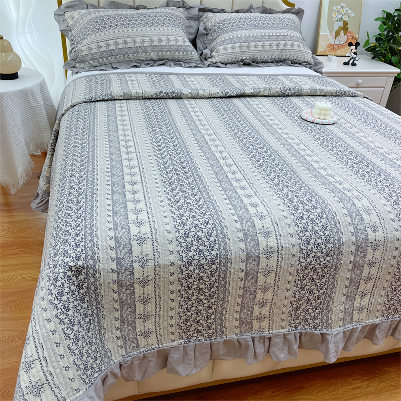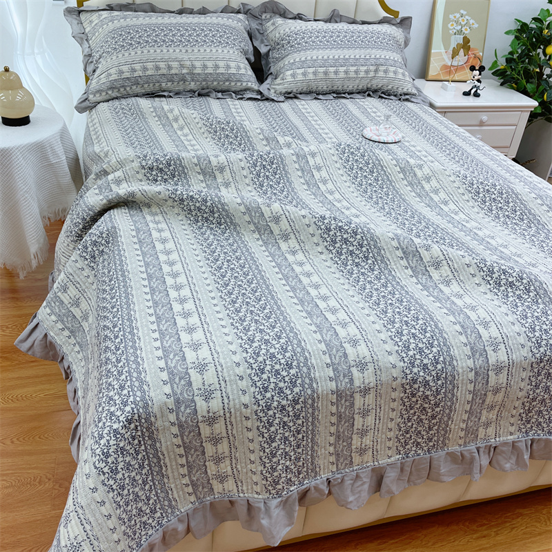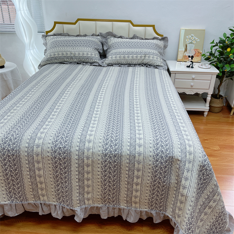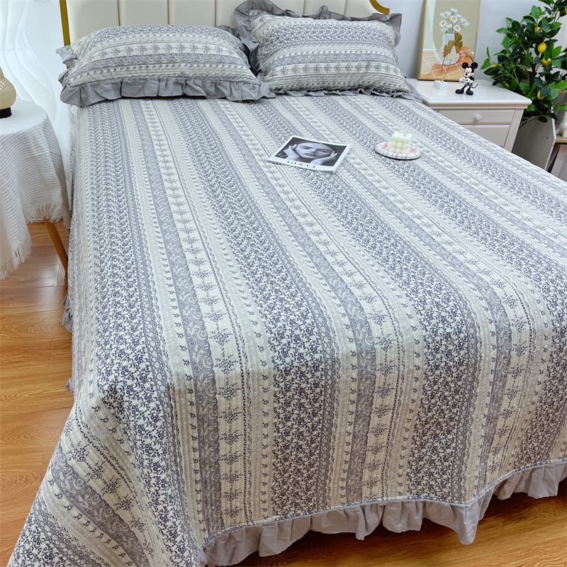 (总)暖居 2024新款A类双层纱全棉床盖三件套防滑不跑床绗缝加厚纯棉床单