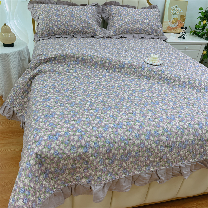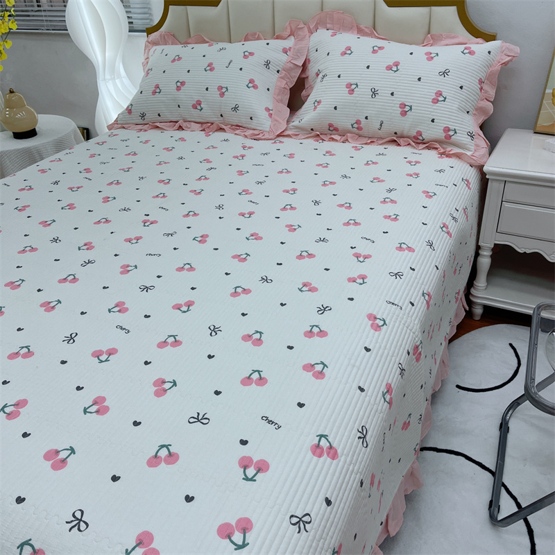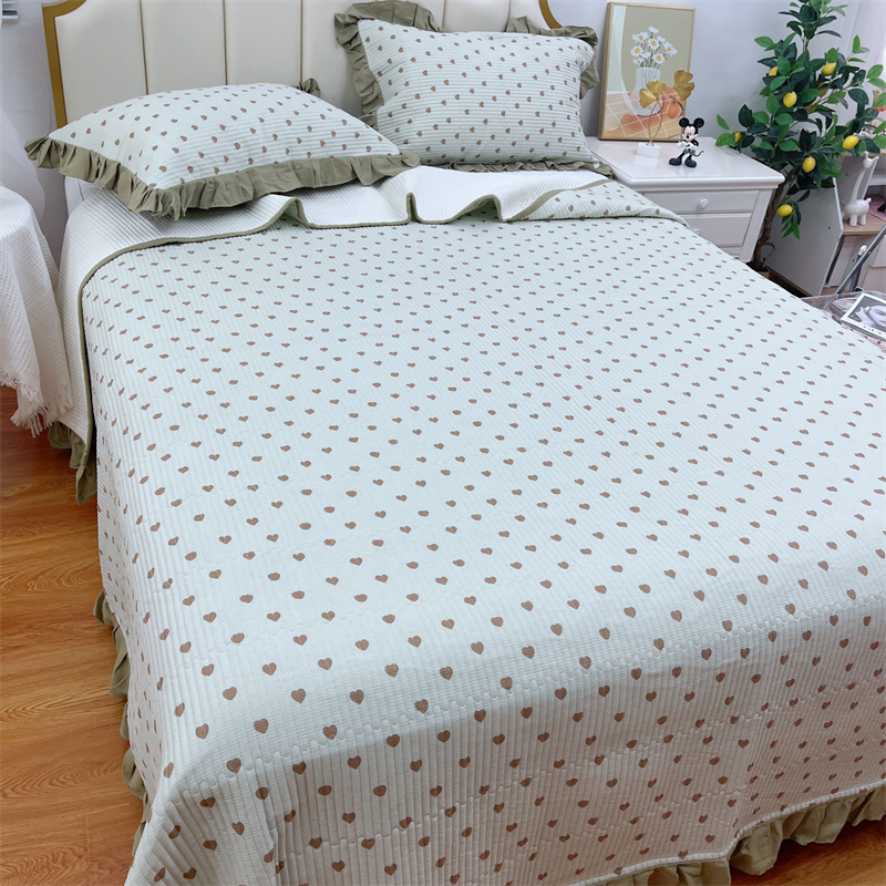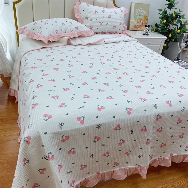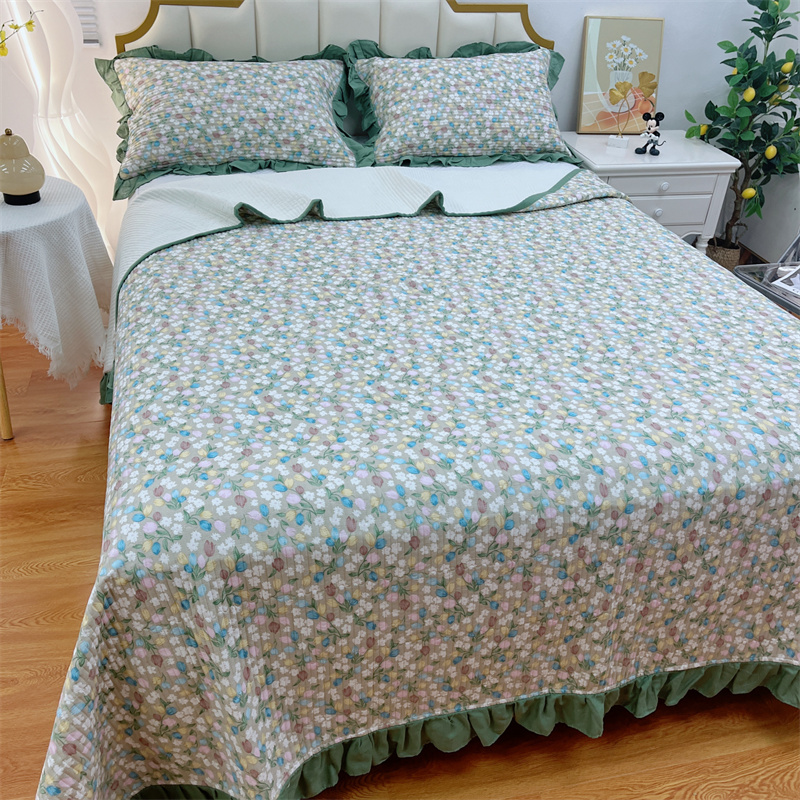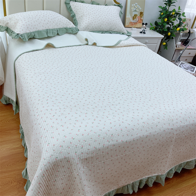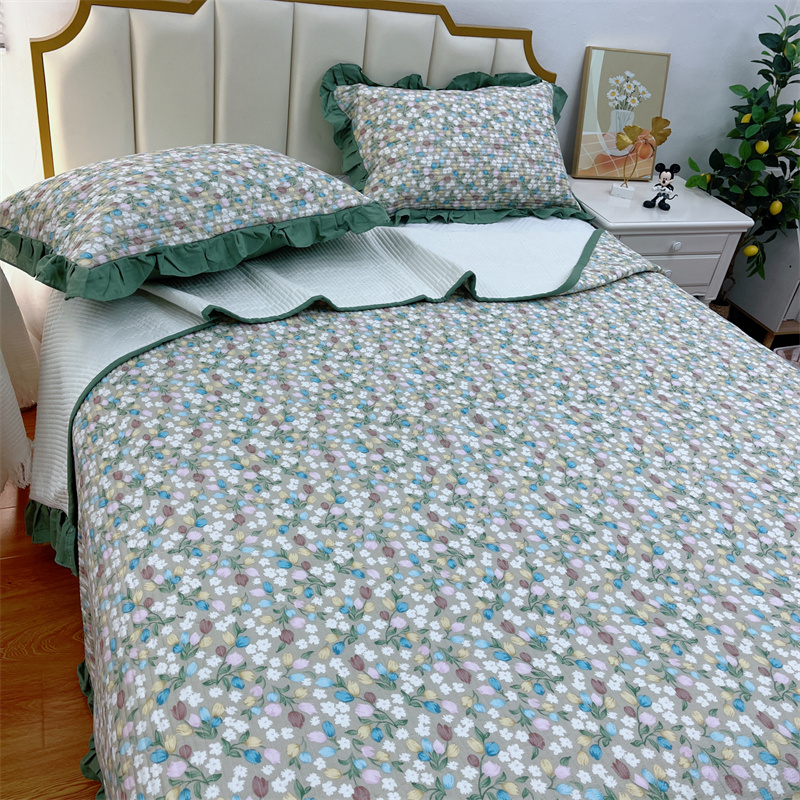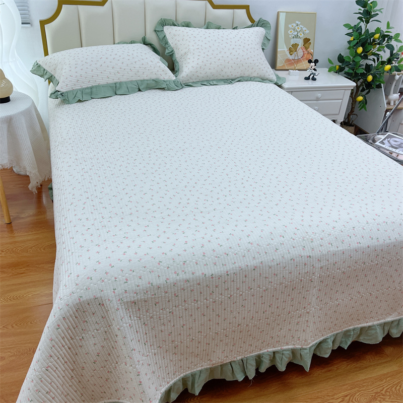 (总)暖居 2024新款A类双层纱全棉床盖三件套防滑不跑床绗缝加厚纯棉床单