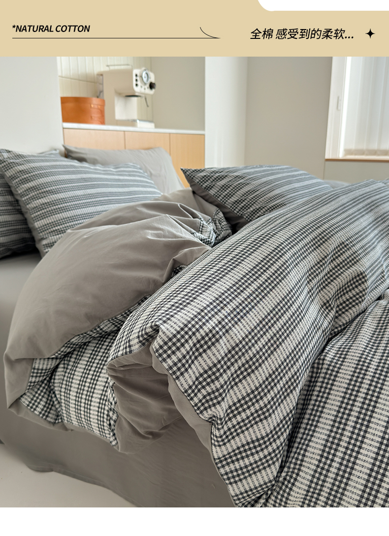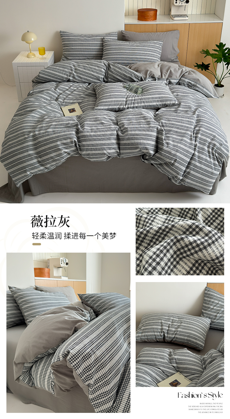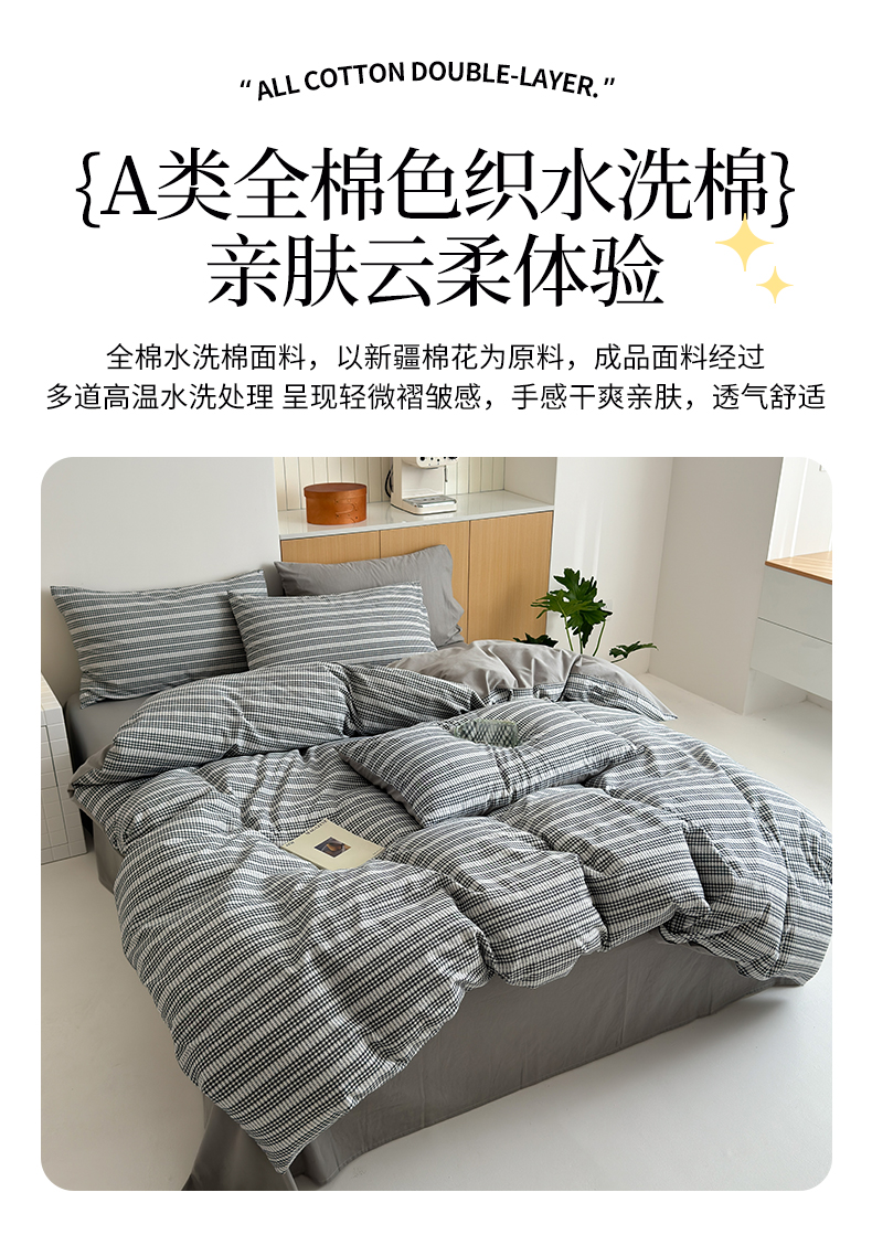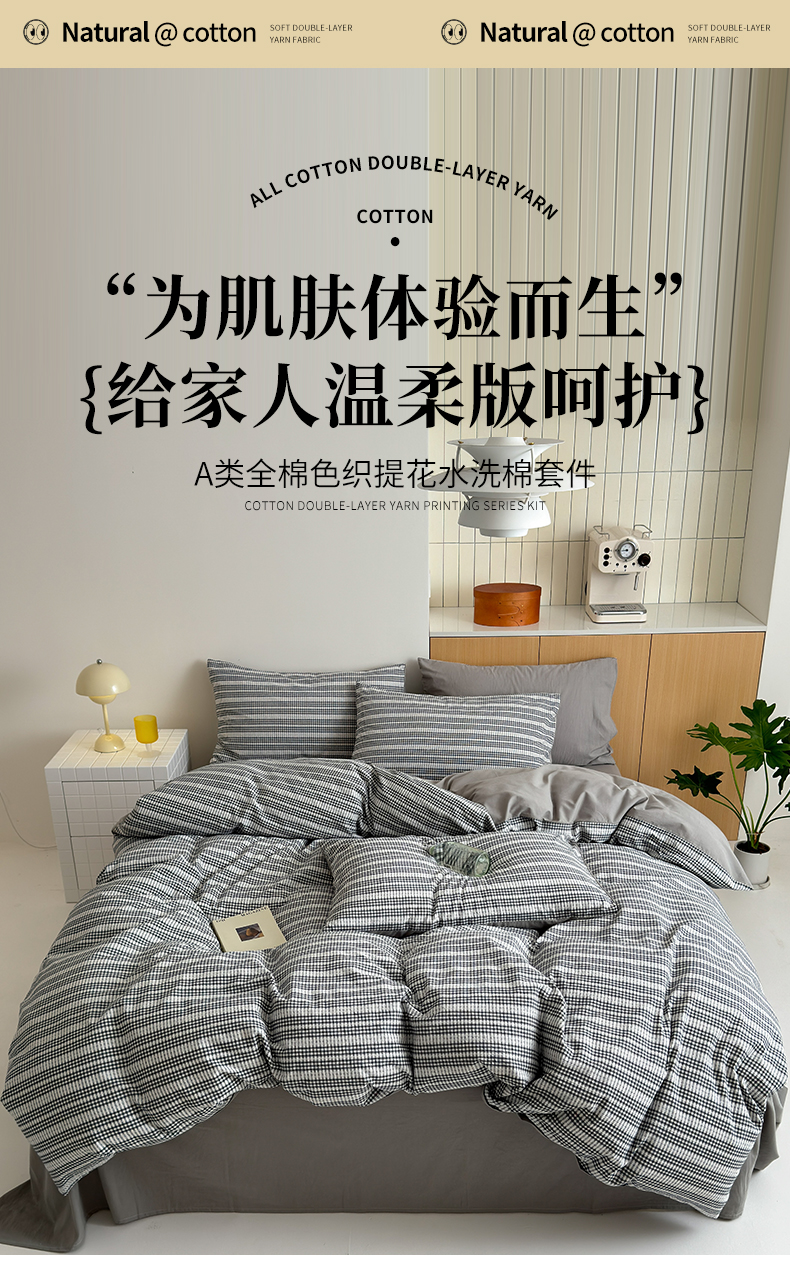 优彩 2025新款A类全棉色织提花水洗棉四件套-薇拉 薇拉灰