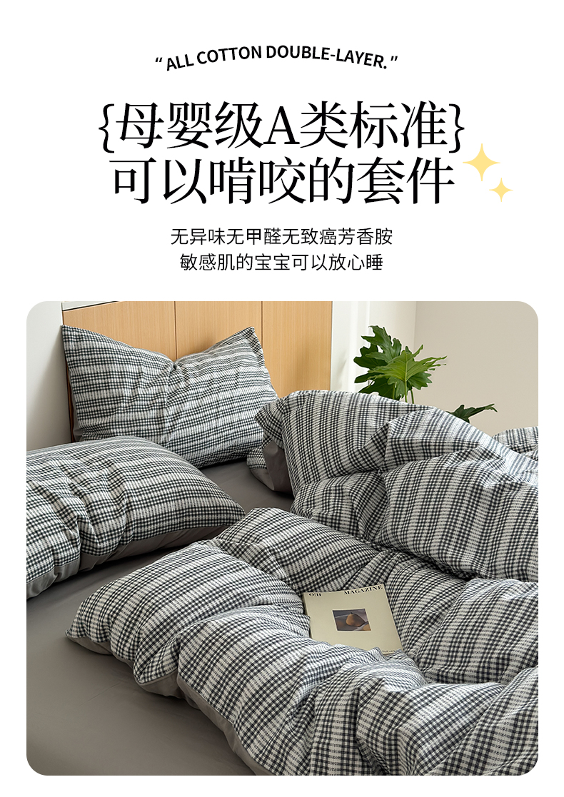 (总)优彩 2025新款全棉双层纱四件套,春岚,豆蔻,花花小狗,花信风,六町目,糯米团子,染香,星星蝴蝶,枕边花,花栖,萝蔓