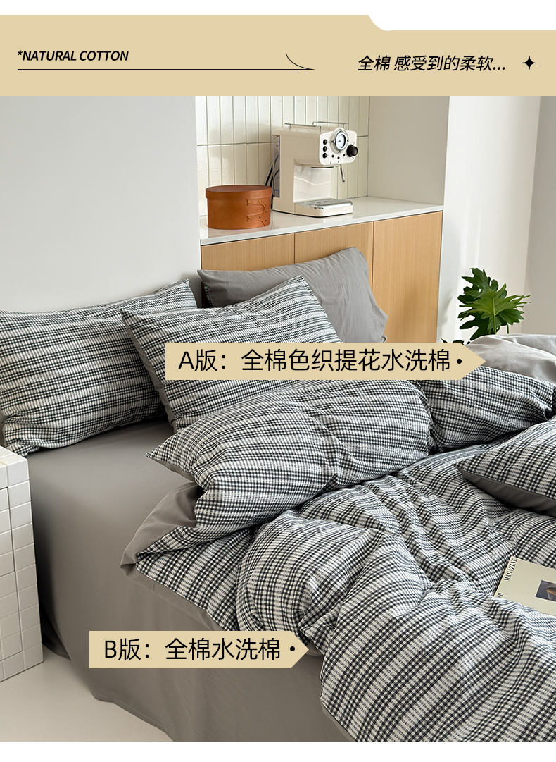 商品名称:优彩 2025新款A类全棉色织提花水洗棉四件套-薇拉 薇拉灰