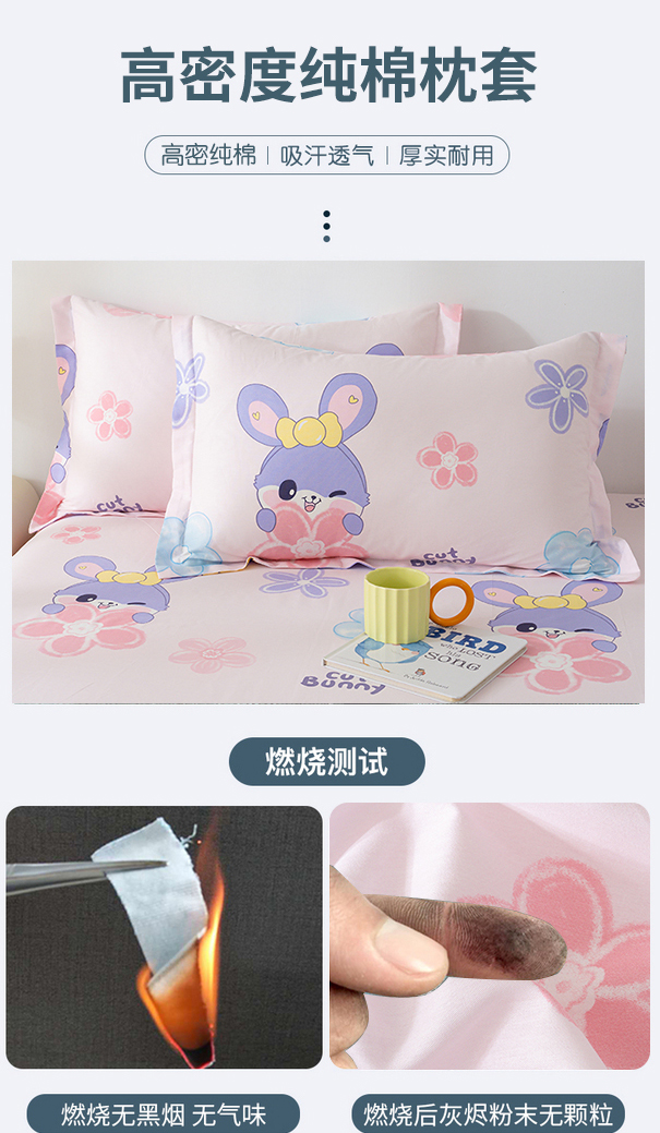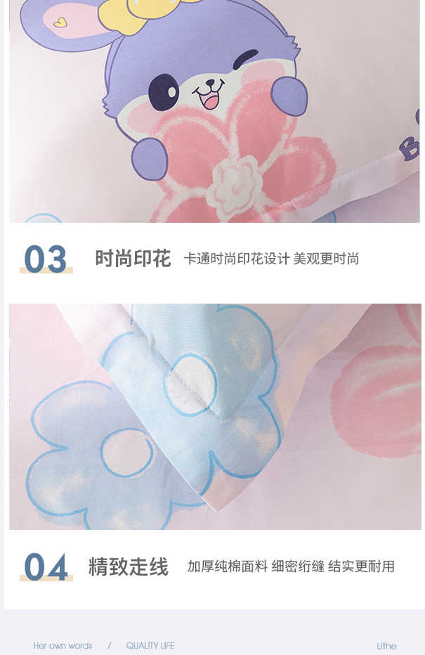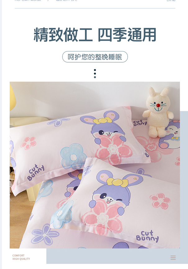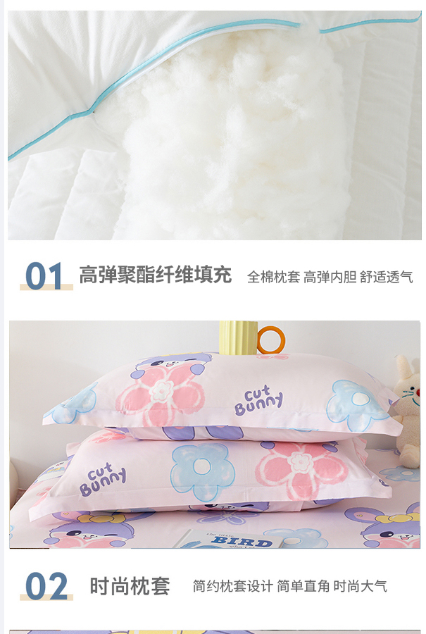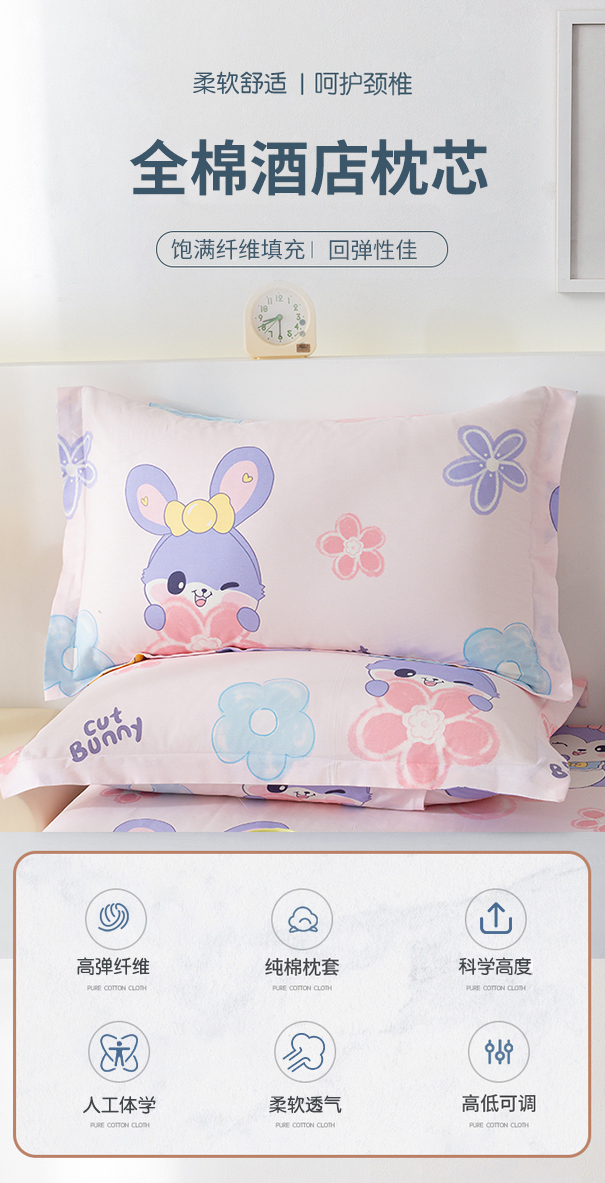 丽美人家纺 2024新款全棉印花单枕套枕芯 粉色兔宠