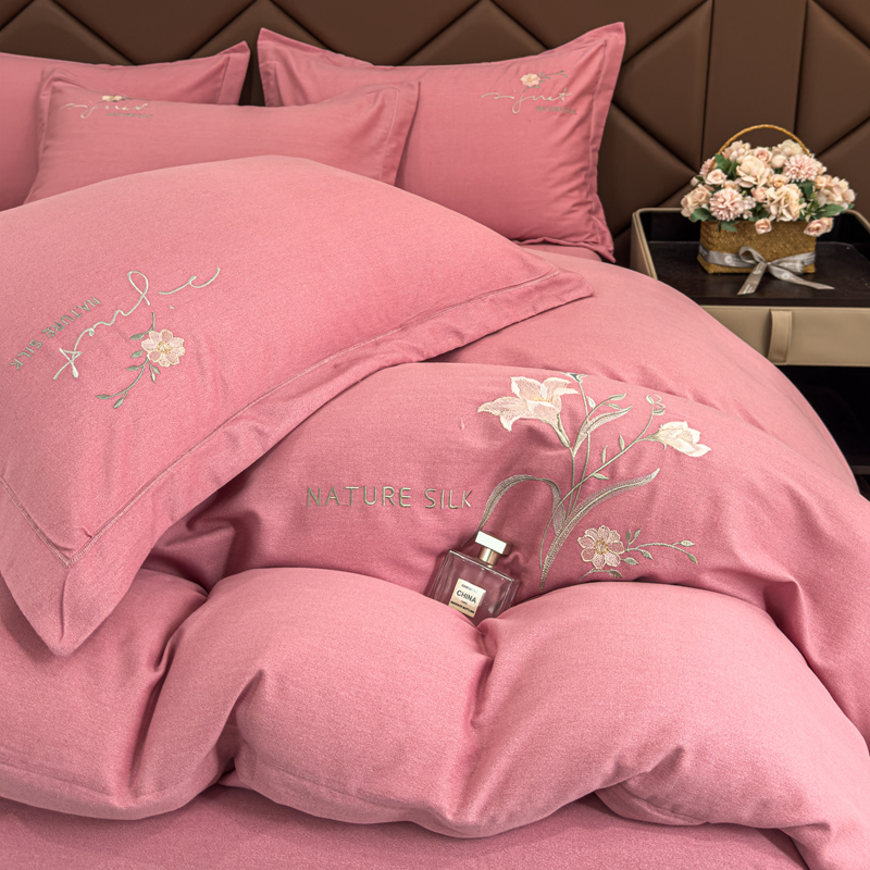 当前位置: 91家纺网 > 商品网购 > 床品套件 > 四件套 > 普通磨毛四件套 > U品汇 2024新品生态加厚长绒棉纯棉绣花全棉磨毛刺绣四件套直播 百合欢-香妃粉