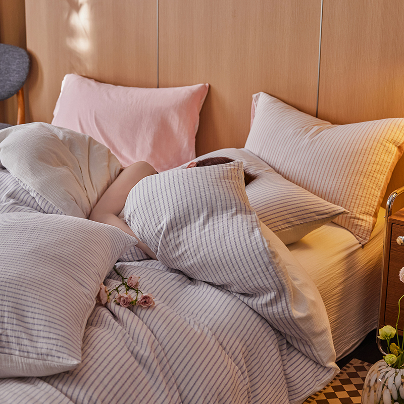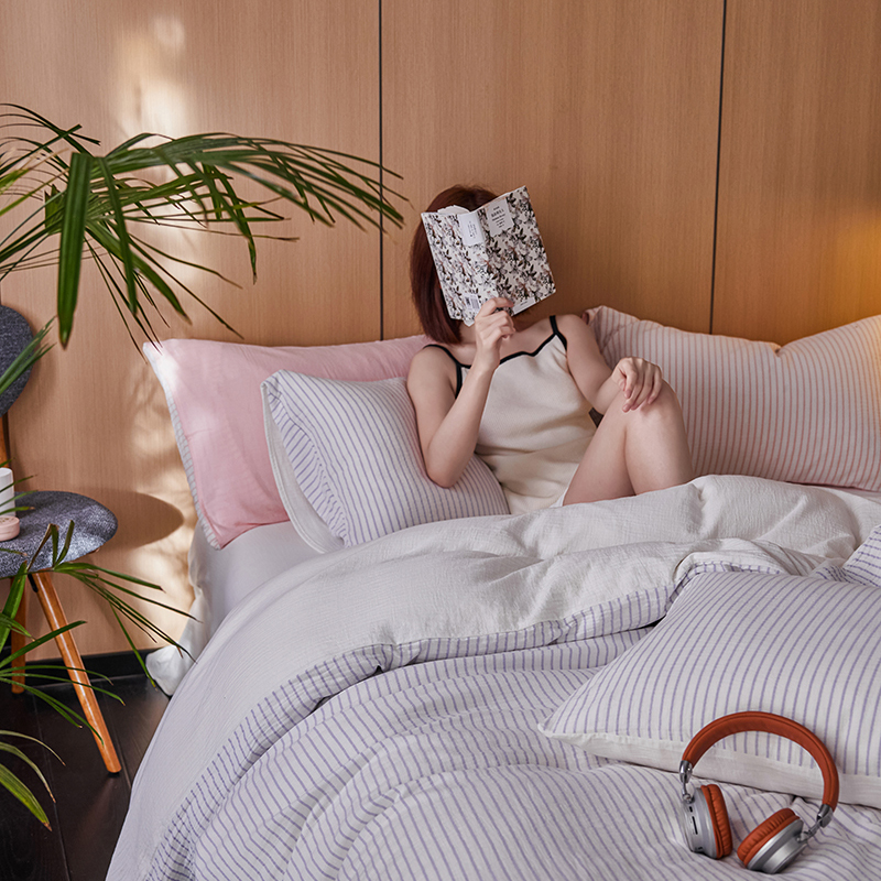当前位置: 91家纺网 > 商品网购 > 床品套件 > 四件套 > 全棉普通四件套 > 2025新品尚美色织条纹绉纱系列--尚美细条系列 尚美-紫玉细条