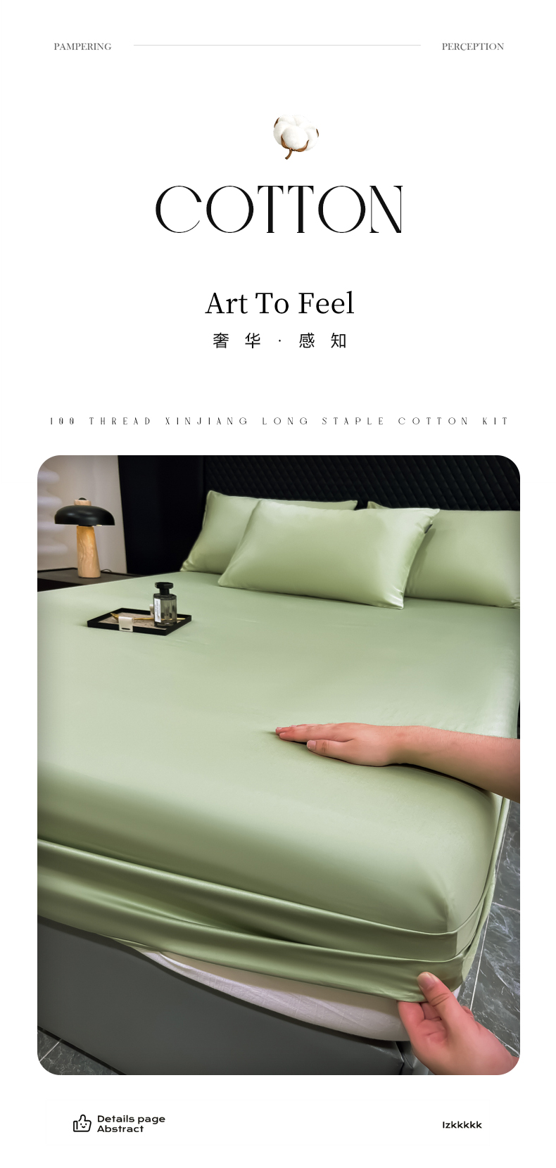 • 91家纺网 家纺一手货源 找家纺 家居1号家纺 2024新款50双股新疆长绒棉纯色四件套单品系列-单床笠 床笠-纯雅-苹果绿