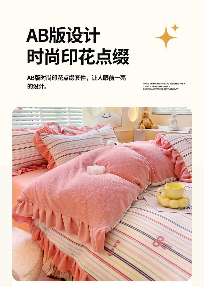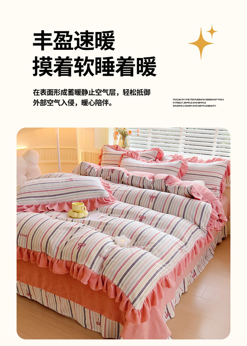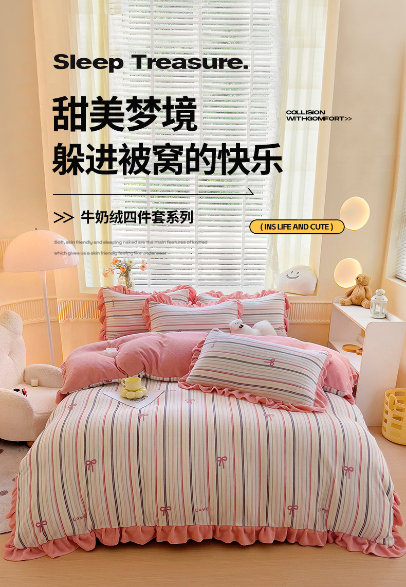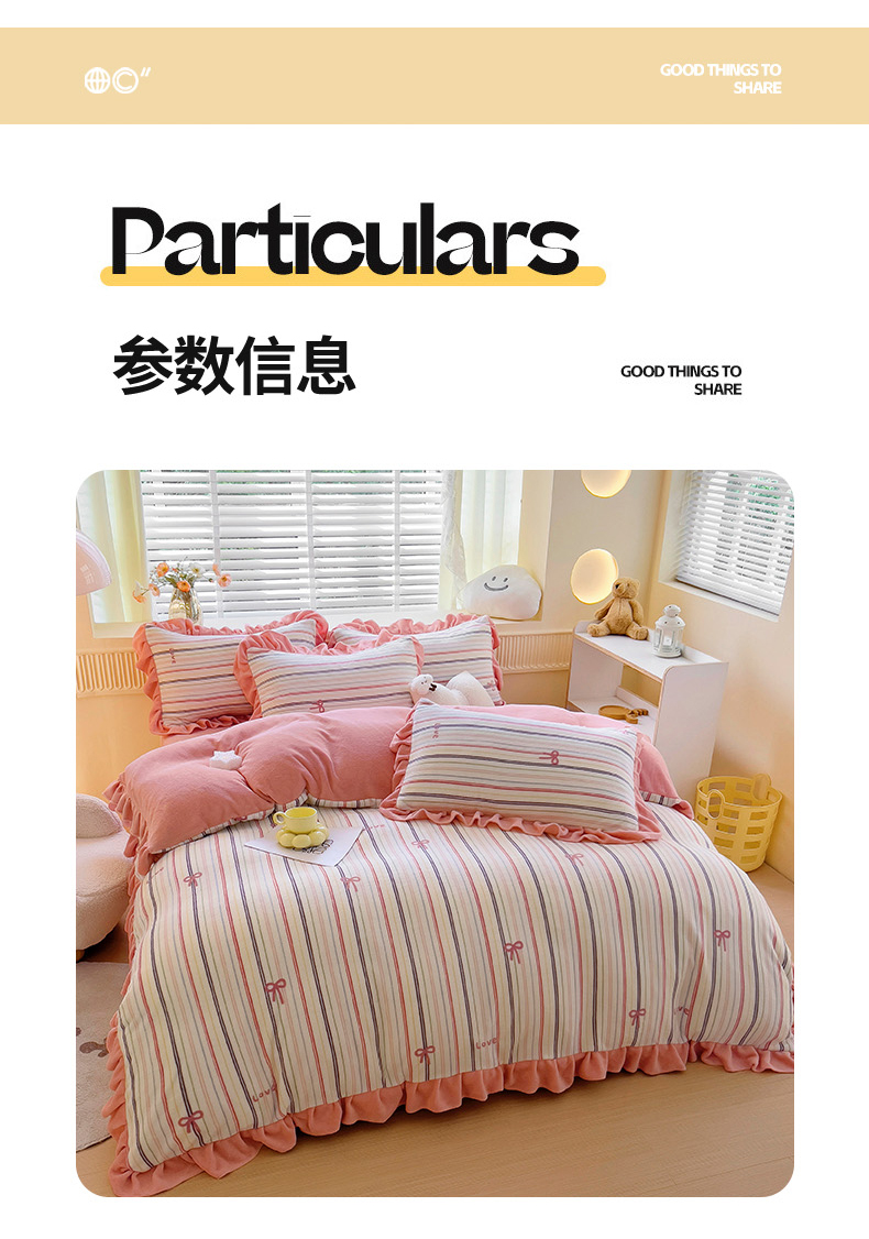 商品名称:找底底家纺 2024新款牛奶绒印花四件套 彩条蝴蝶结