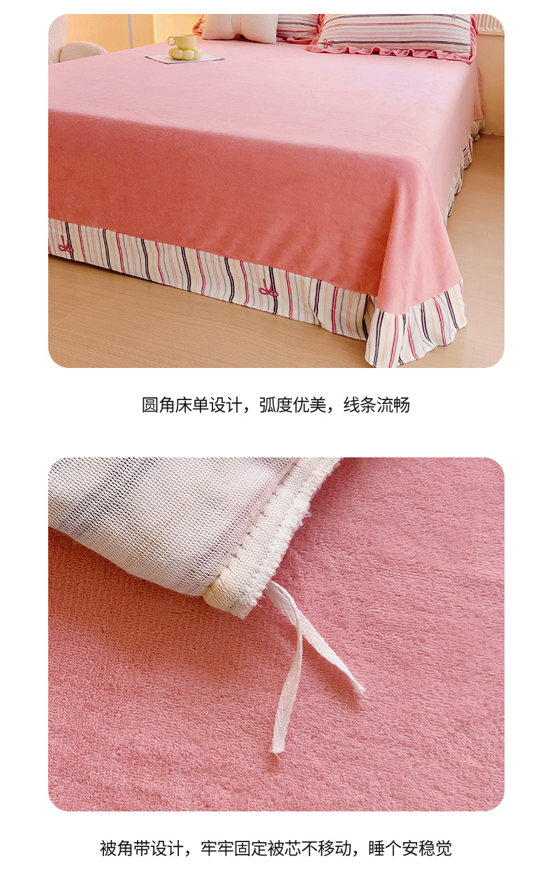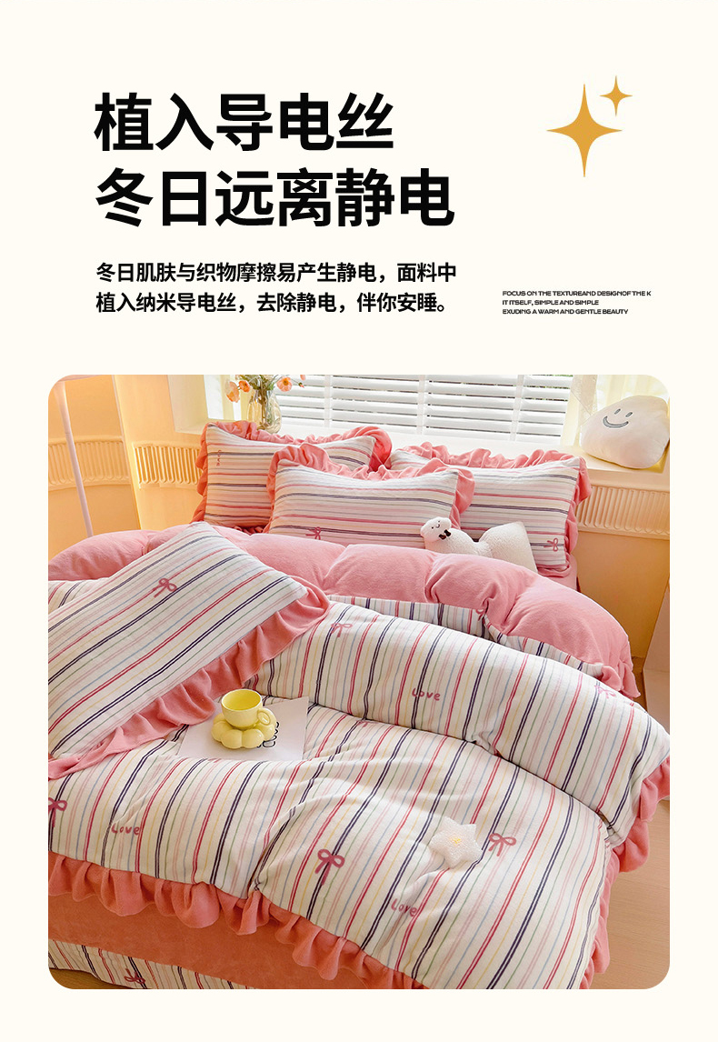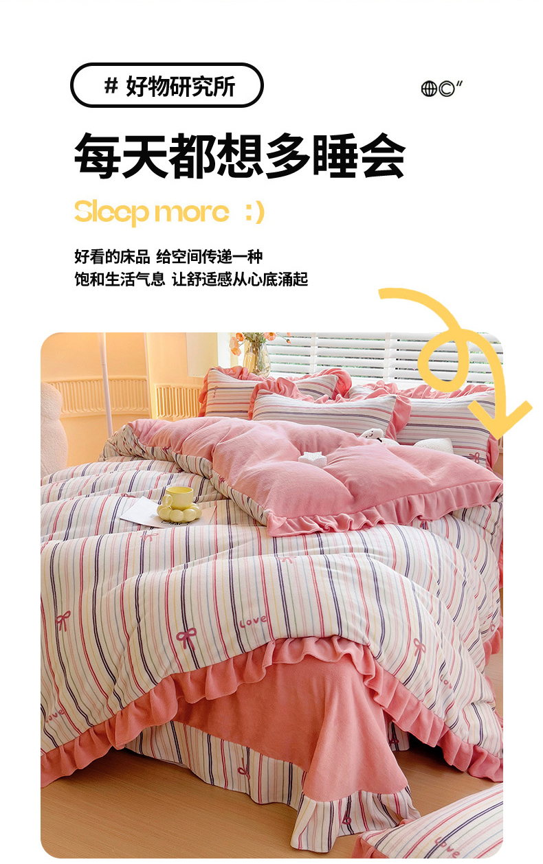 商品名称:找底底家纺 2024新款牛奶绒印花四件套 彩条蝴蝶结