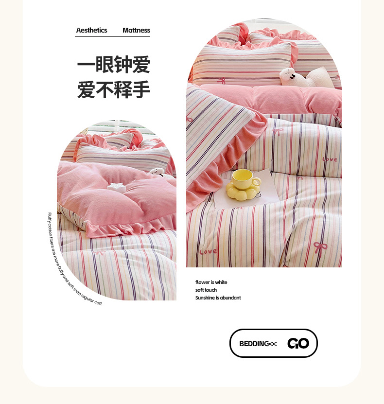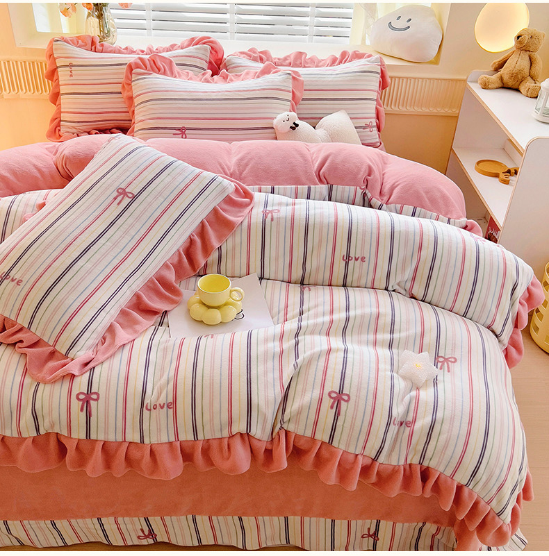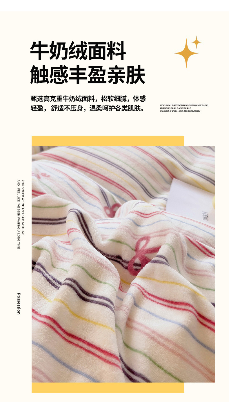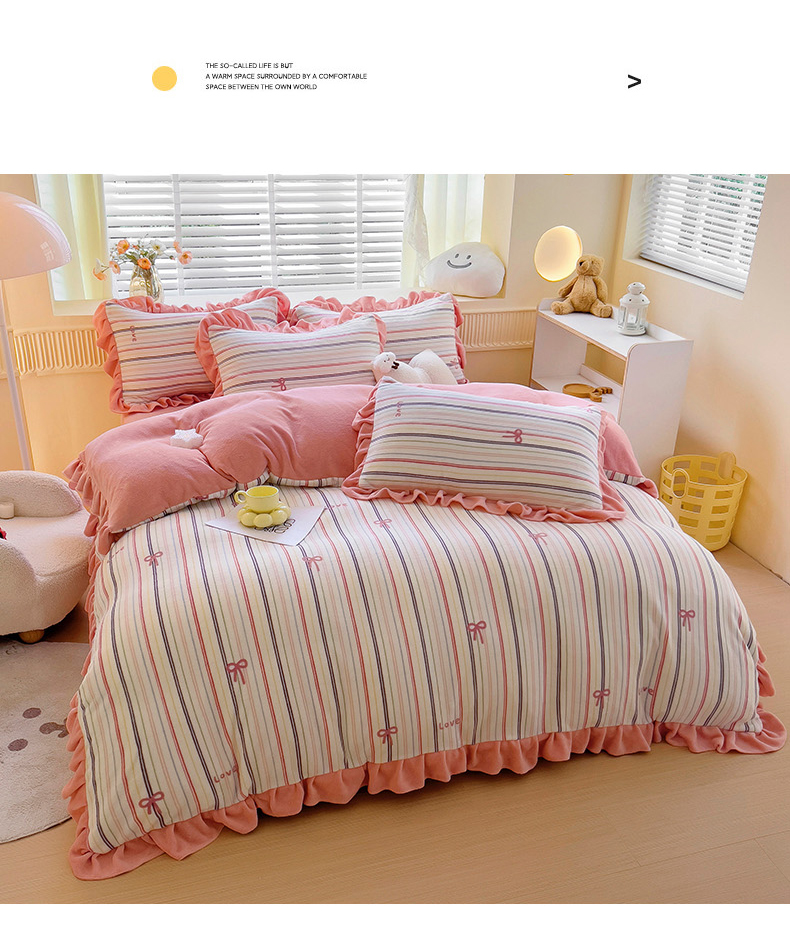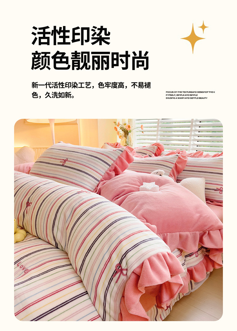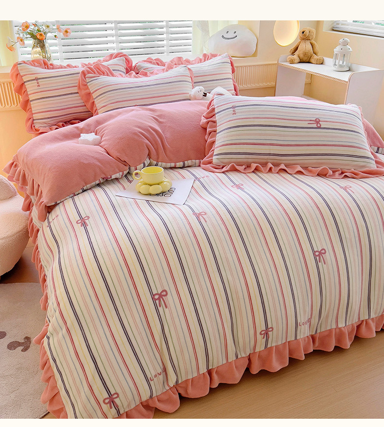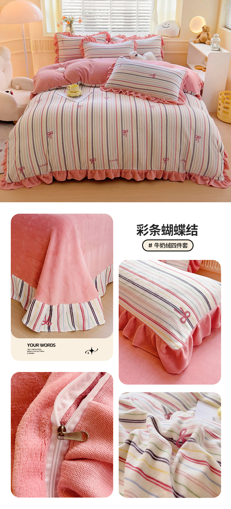 找底底家纺 2024新款牛奶绒印花四件套 彩条蝴蝶结