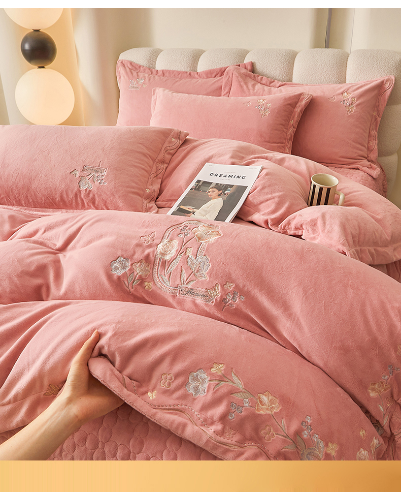 当前位置: 91家纺网 > 商品网购 > 床品套件 > 四件套 > 其它四件套 > 2024新款锦肤绒蝶恋花床盖款四件套 蝶恋花-浅豆沙
