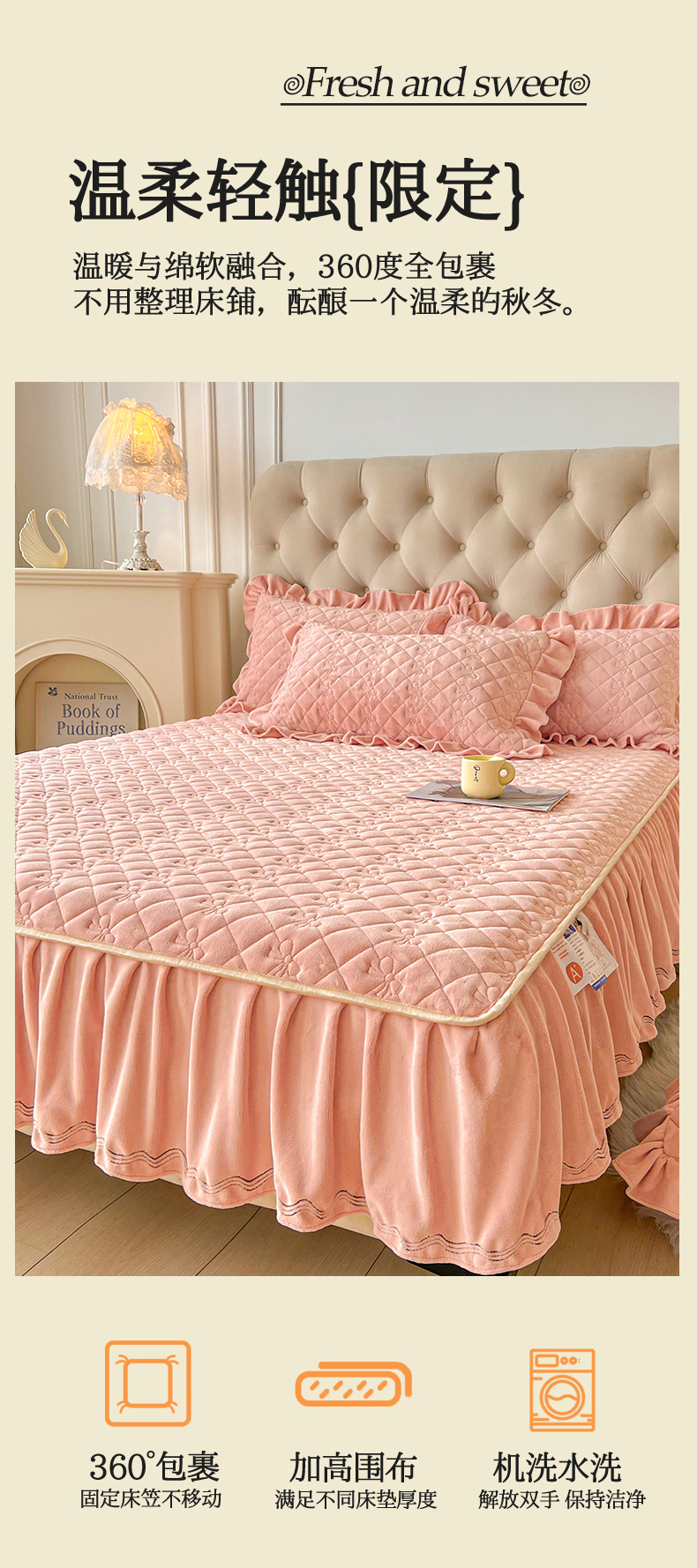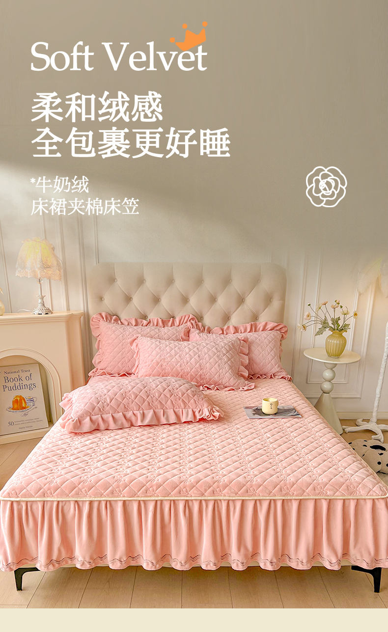 2024新款热款A类牛奶绒夹棉床笠 玉色-