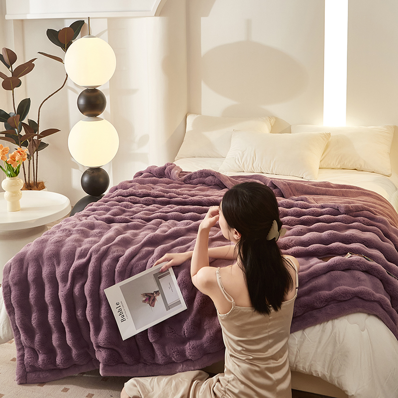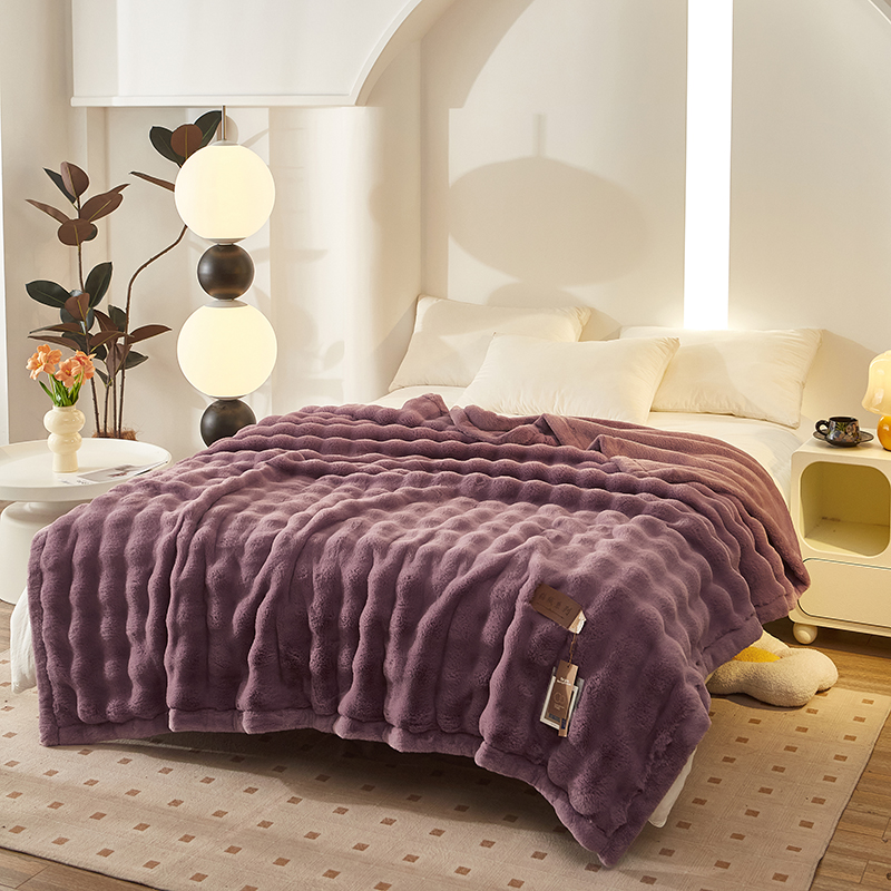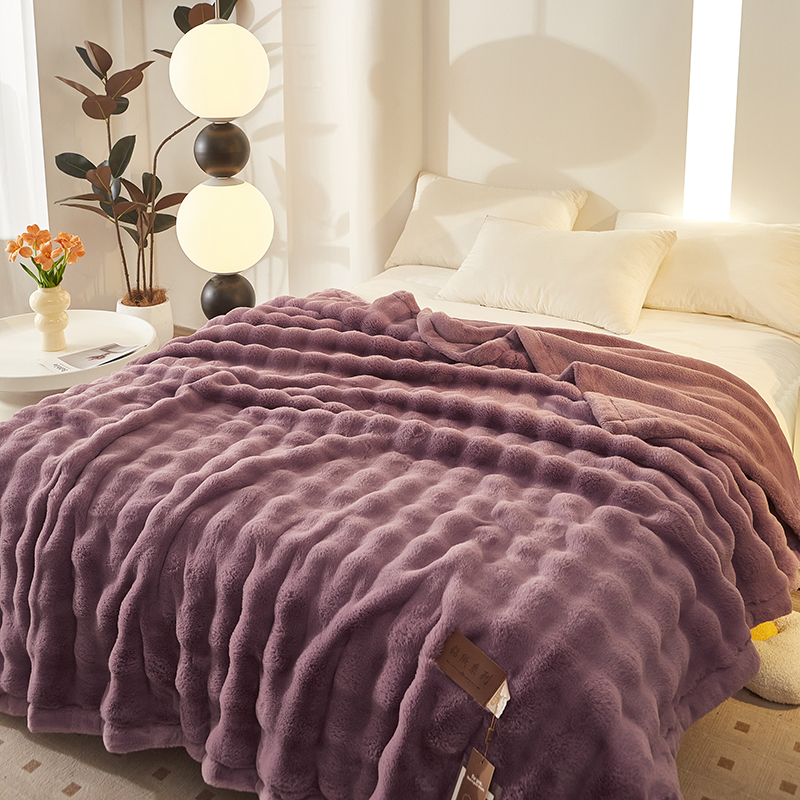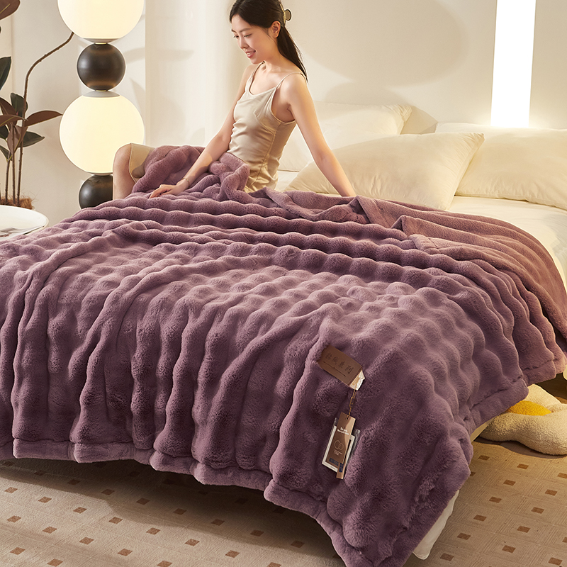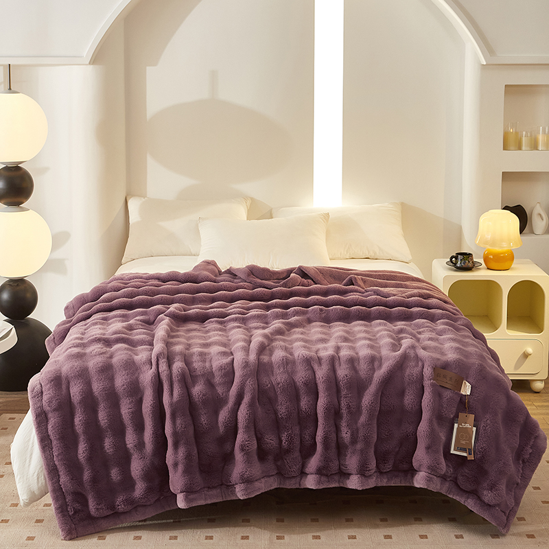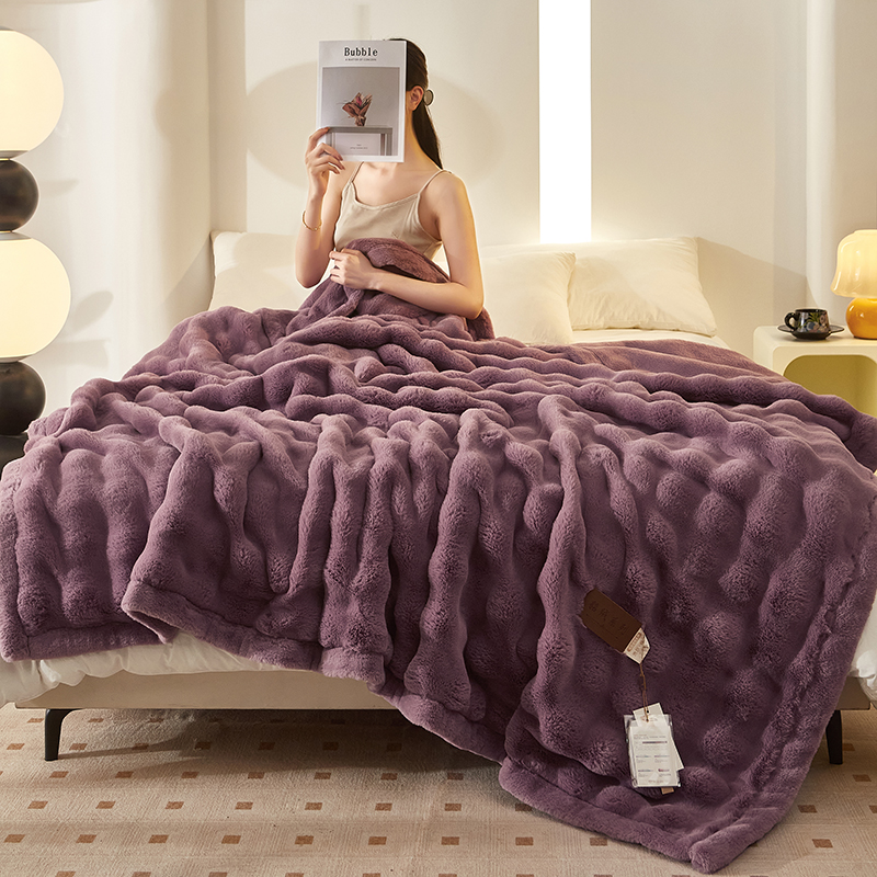 尚品凤凰 2025新款亲肤舒适加厚保暖貂绒兔毛泡泡毛毯 泡泡-紫