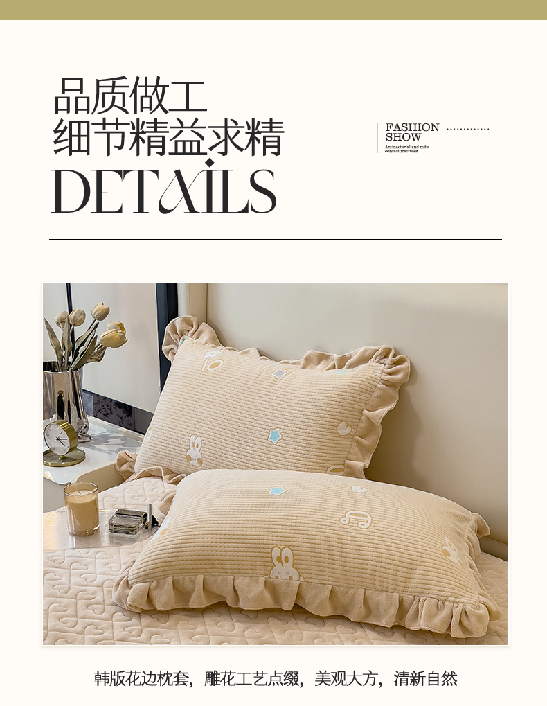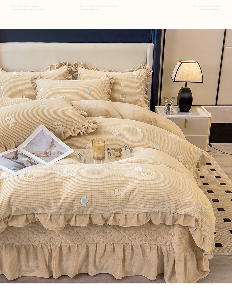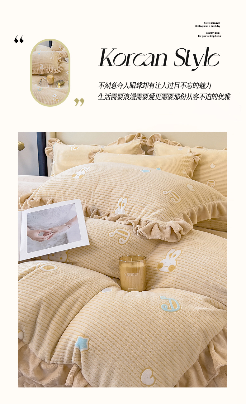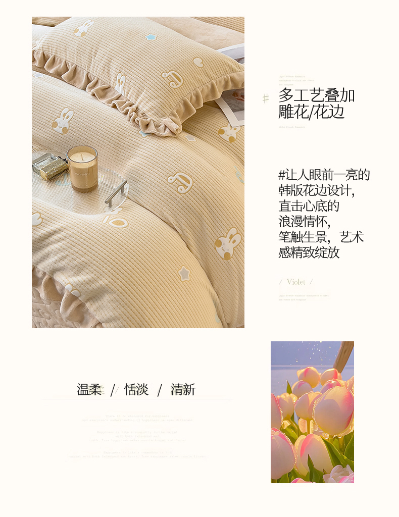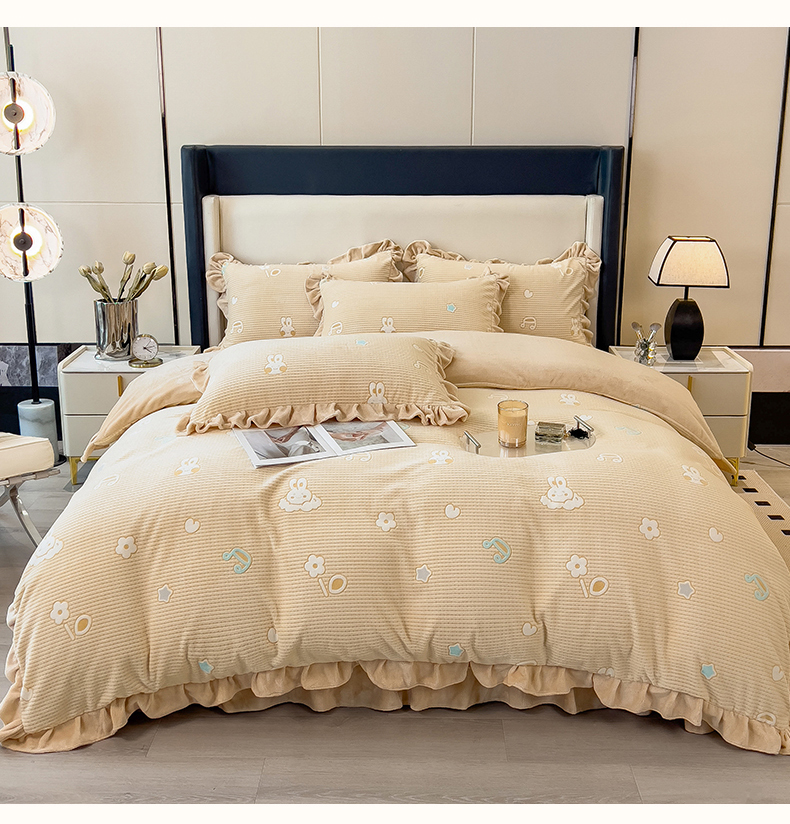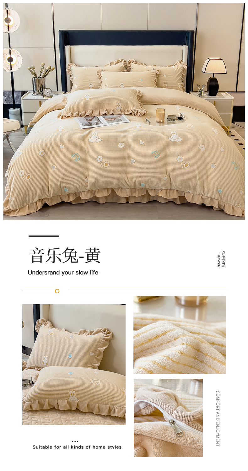 2024新品A类牛奶绒韩版雕花四件套 音乐兔-黄