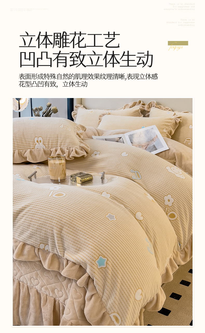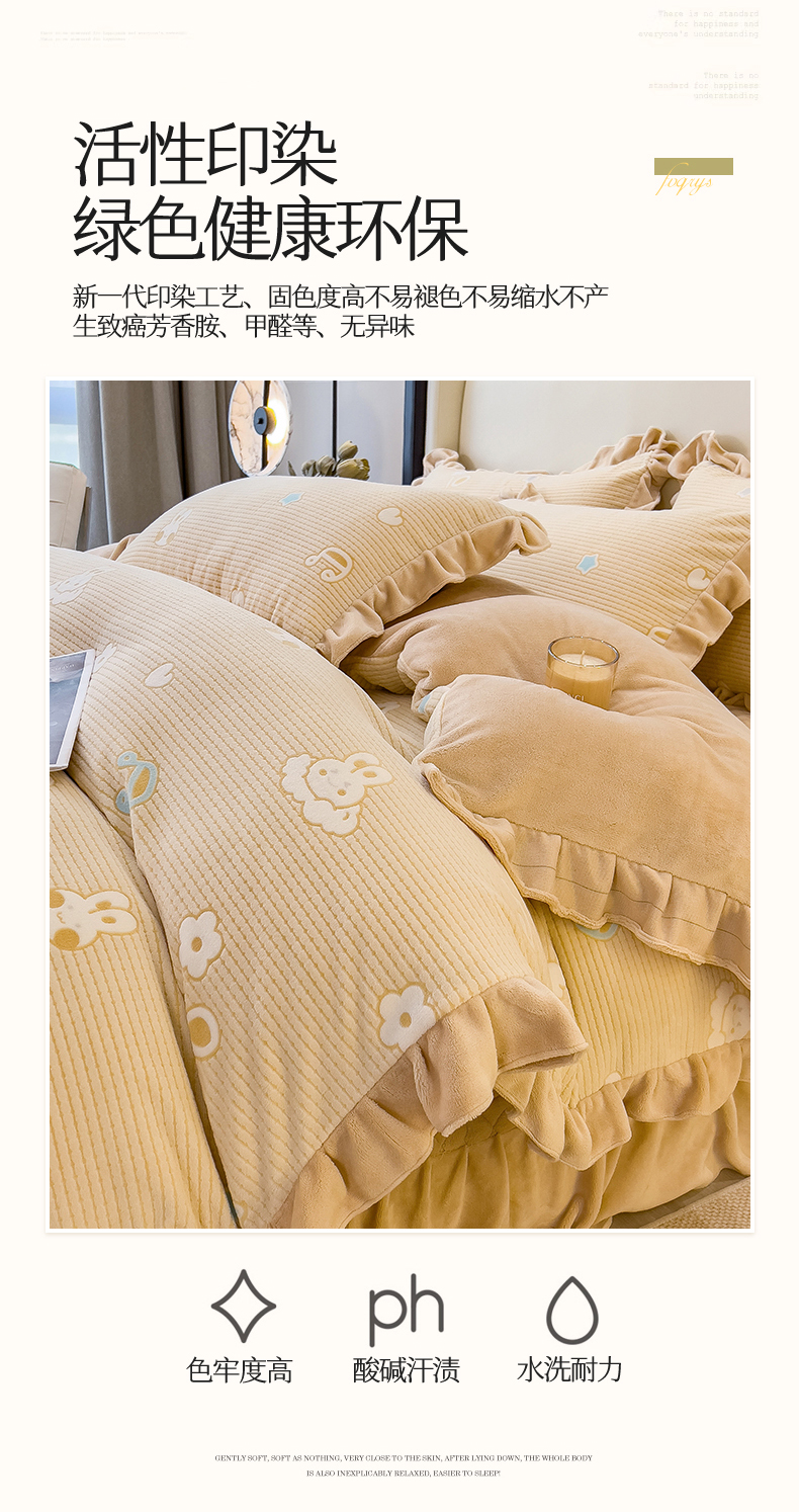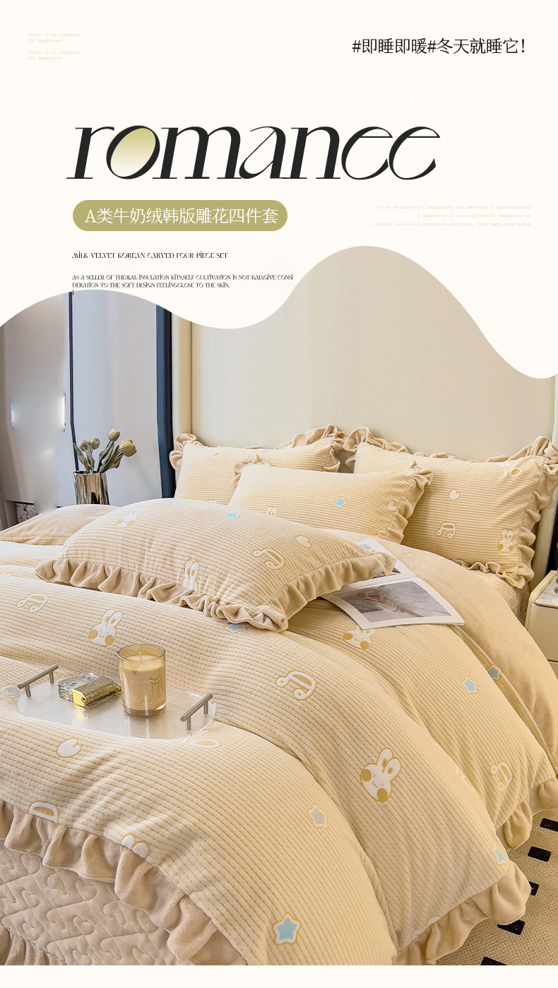 商品名称:2024新品A类牛奶绒韩版雕花四件套 音乐兔-黄