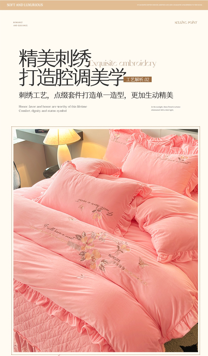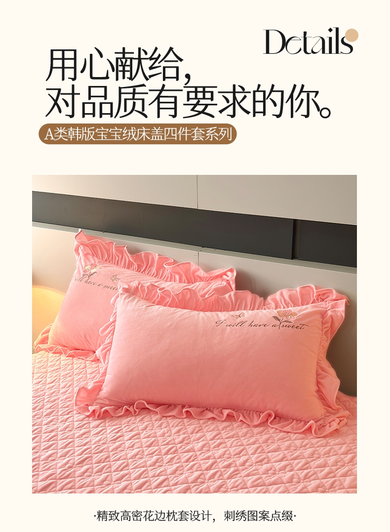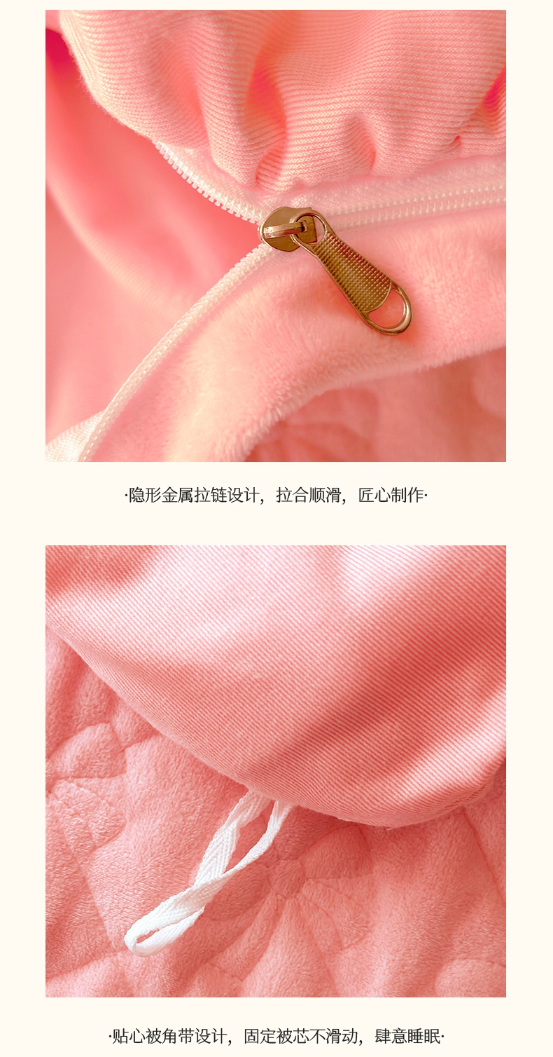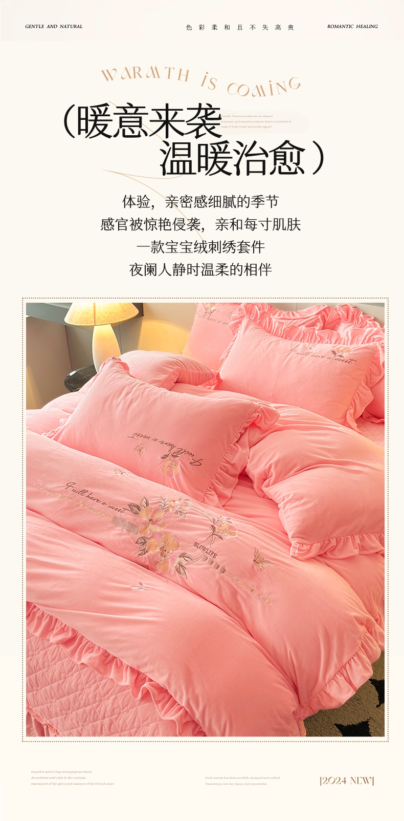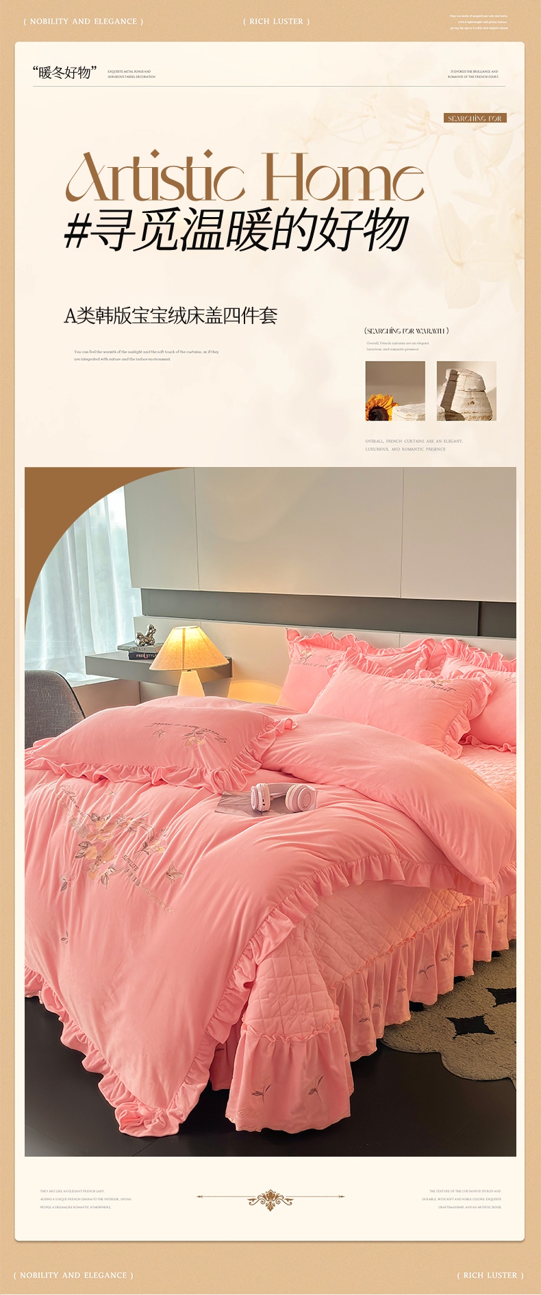 当前位置: 91家纺网 > 商品网购 > 床品套件 > 四件套 > 宝宝绒四件套 > 2024新品A类依恋宝宝绒韩版四件套 香妃粉